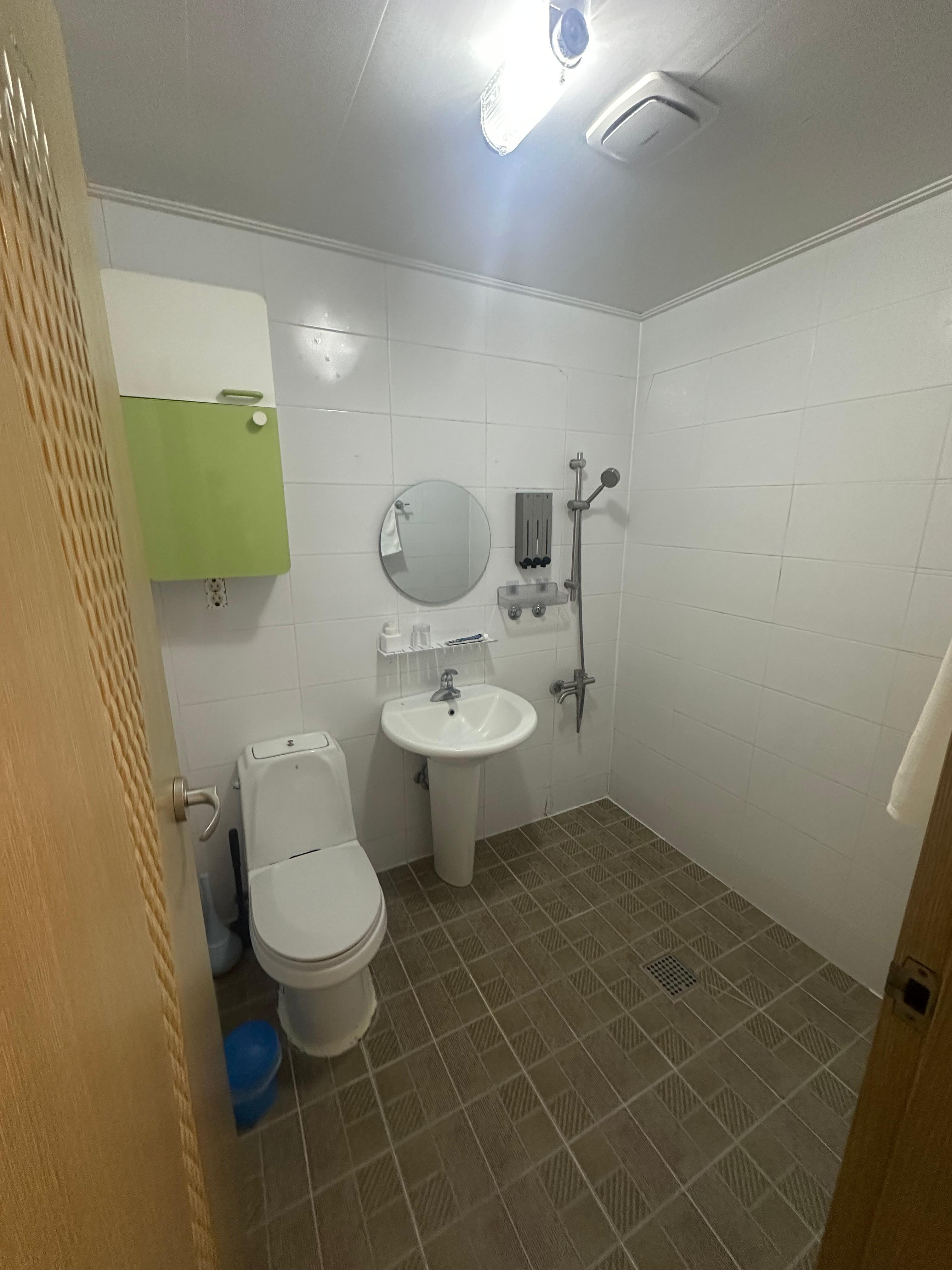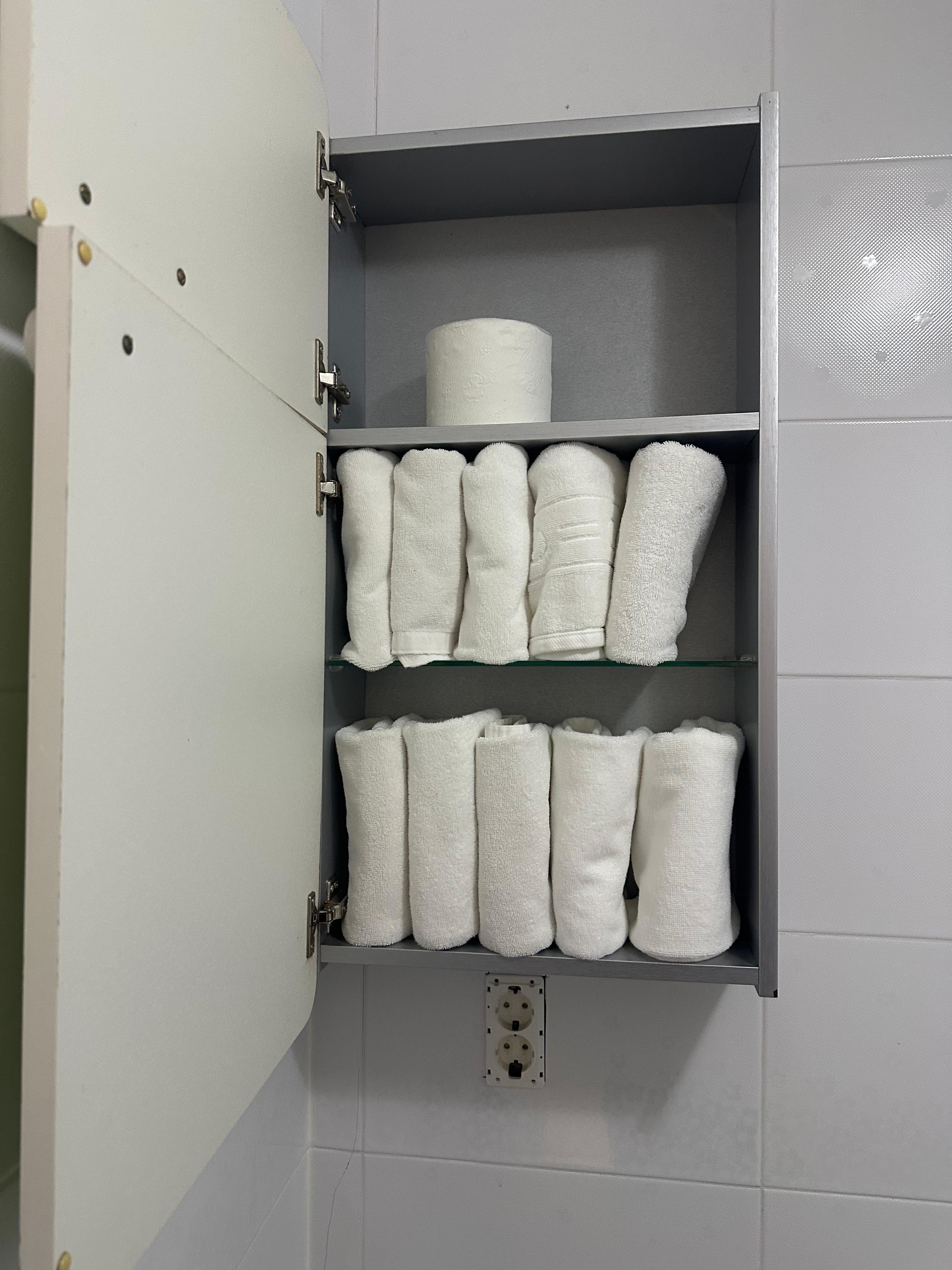 화장실은 좁지 않고 비교적 넓었습니다. 사용하는데 물도 정말 잘나왔구요. 일부 에어비앤비나 펜션의 경우 화장실 이용하는데 샤워물이 적게 나오거나 온수가 나올때까지는 시간이 걸렸었는데요. 에퀴녹스펜션의 경우 그런거 없이 온수도 빠르고 많이 콸콸 나왔습니다. 1-2인방이지만 수건도 충분하게 제공되었구요. 변기 위에 수건함에 무려 10개가 추가로 있었습니다. 그리고 세면대 뒤에도 2개가 이미 있었습니다.