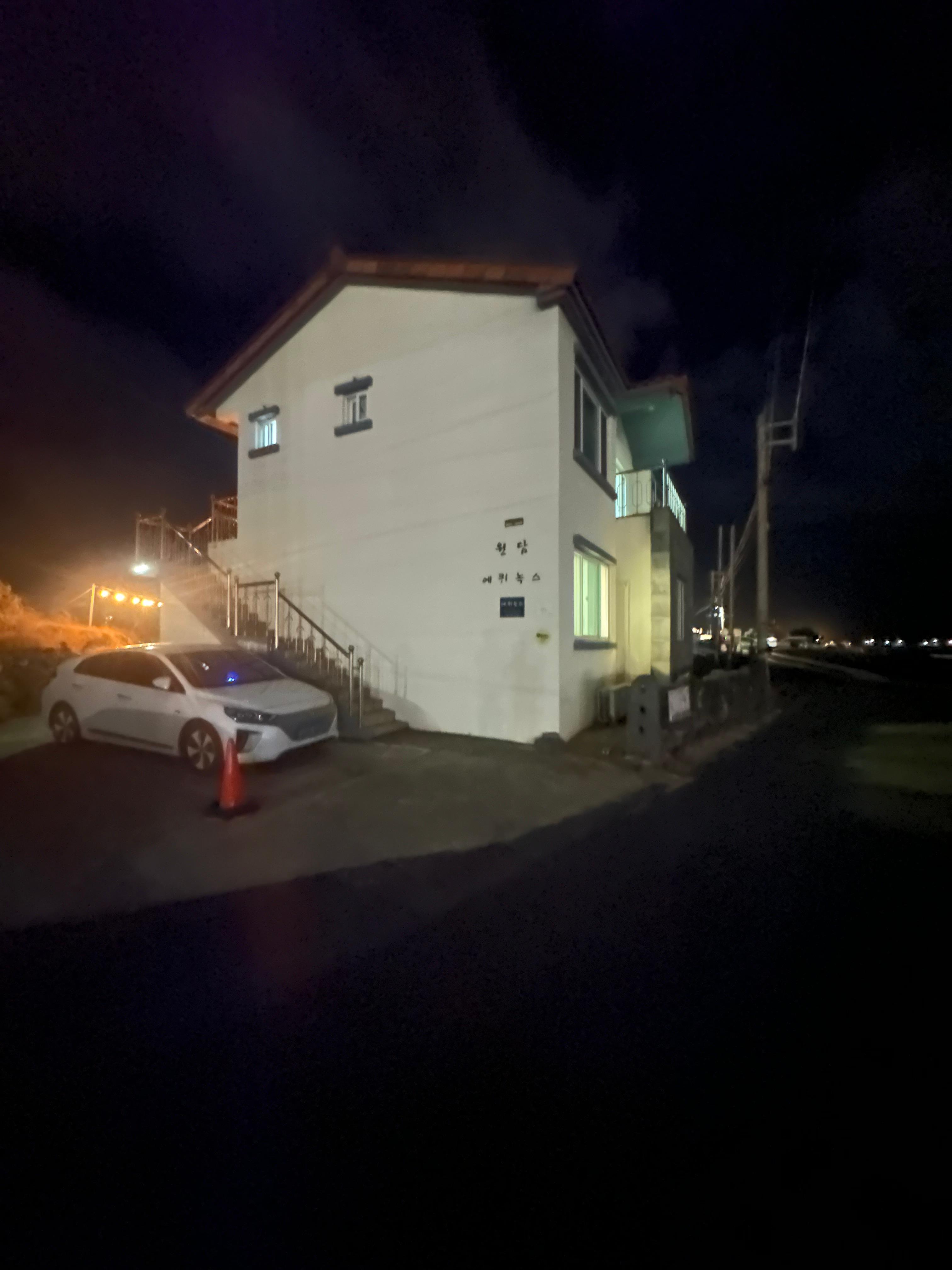 특히 저녁에는 어둡다보니까 펜션 뒤로는 조명등도 볼 수 있었습니다. 제가 머물게 되는 방은 당시 1층 파란색 방이었습니다. 왼쪽도 오른쪽도 아니라 가운데 방이라 오히려 가운데 방이라 더 좋았습니다.