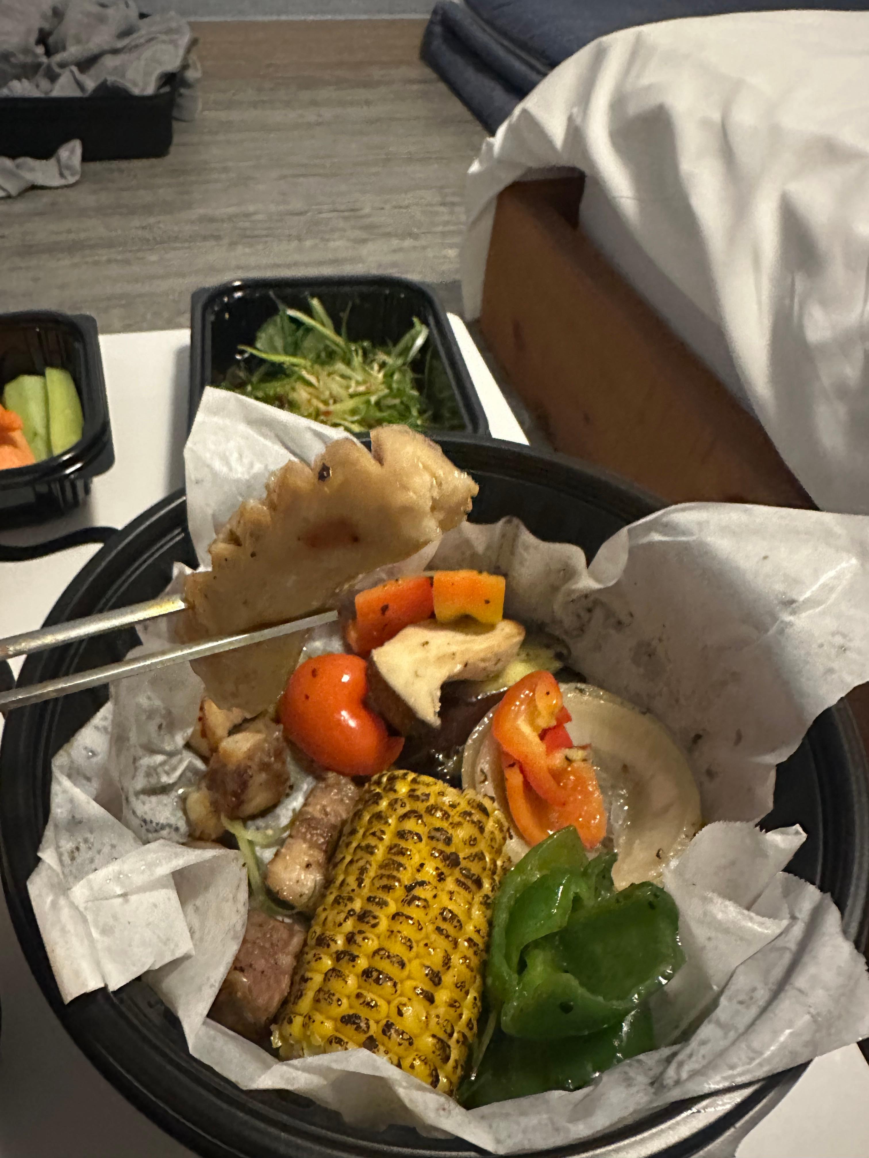 제주도에 왔으니 당연히 제주 흑돼지 먹어봐야겠죠. 흑돼지라고 해도 결국에는 우리가 평소 먹던 삼겹살 그대로 였는데요. 그래도 제주도에서 먹다보니까 더 맛있었습니다. 이큐테이블에서는 혼자서도 이용할 수 있도록 1인 혼고기 세트를 판매하고 있었습니다.