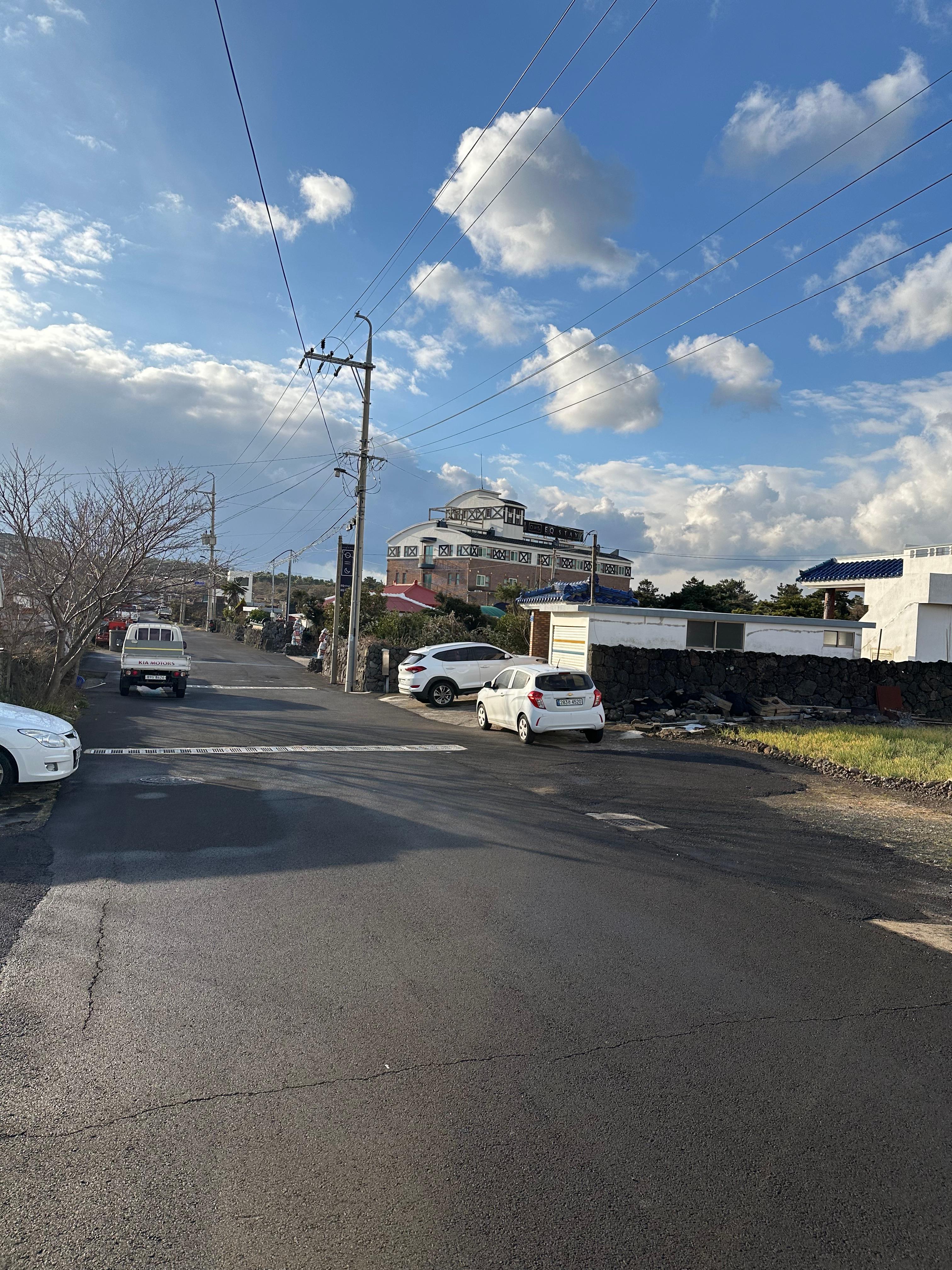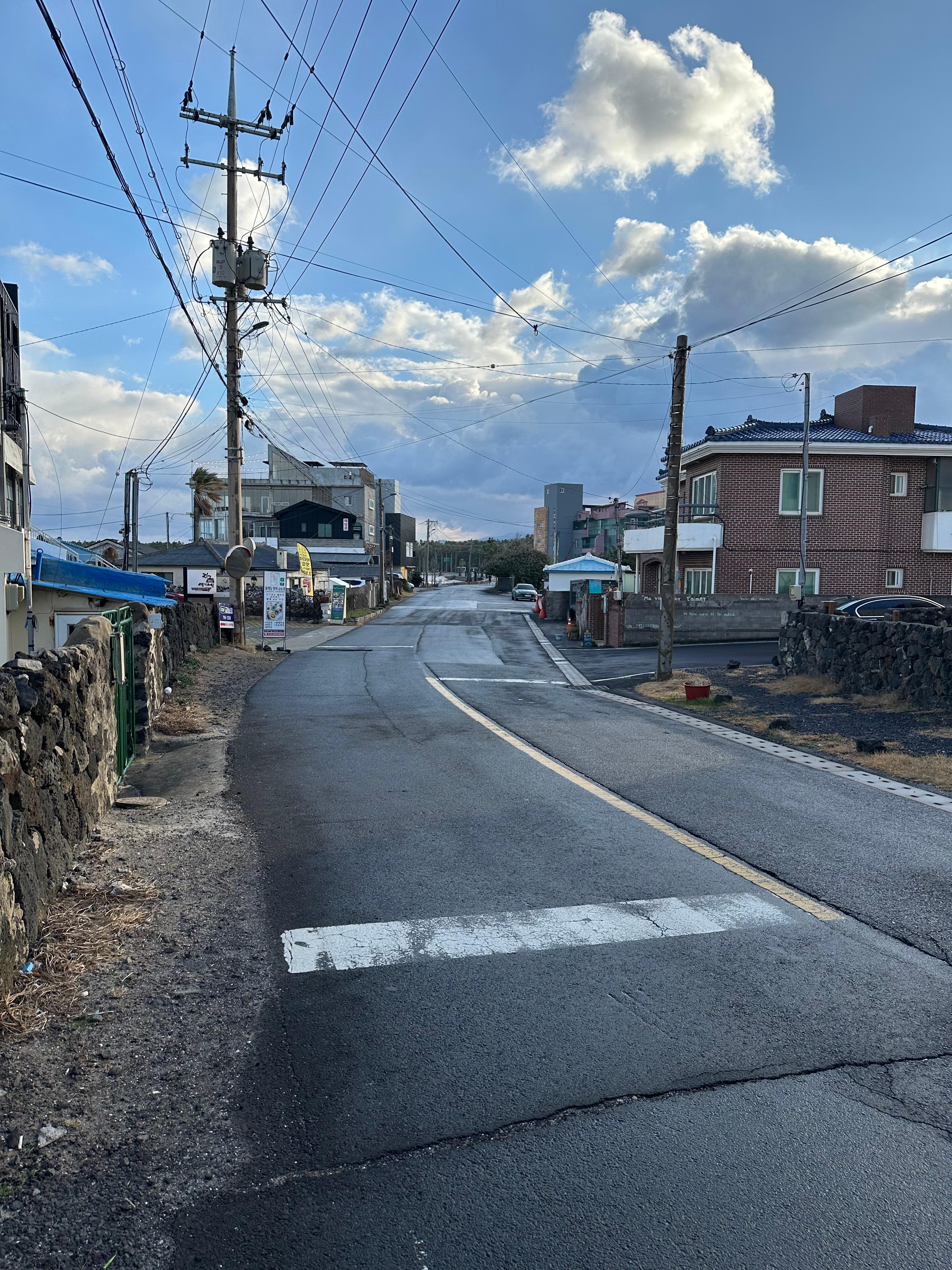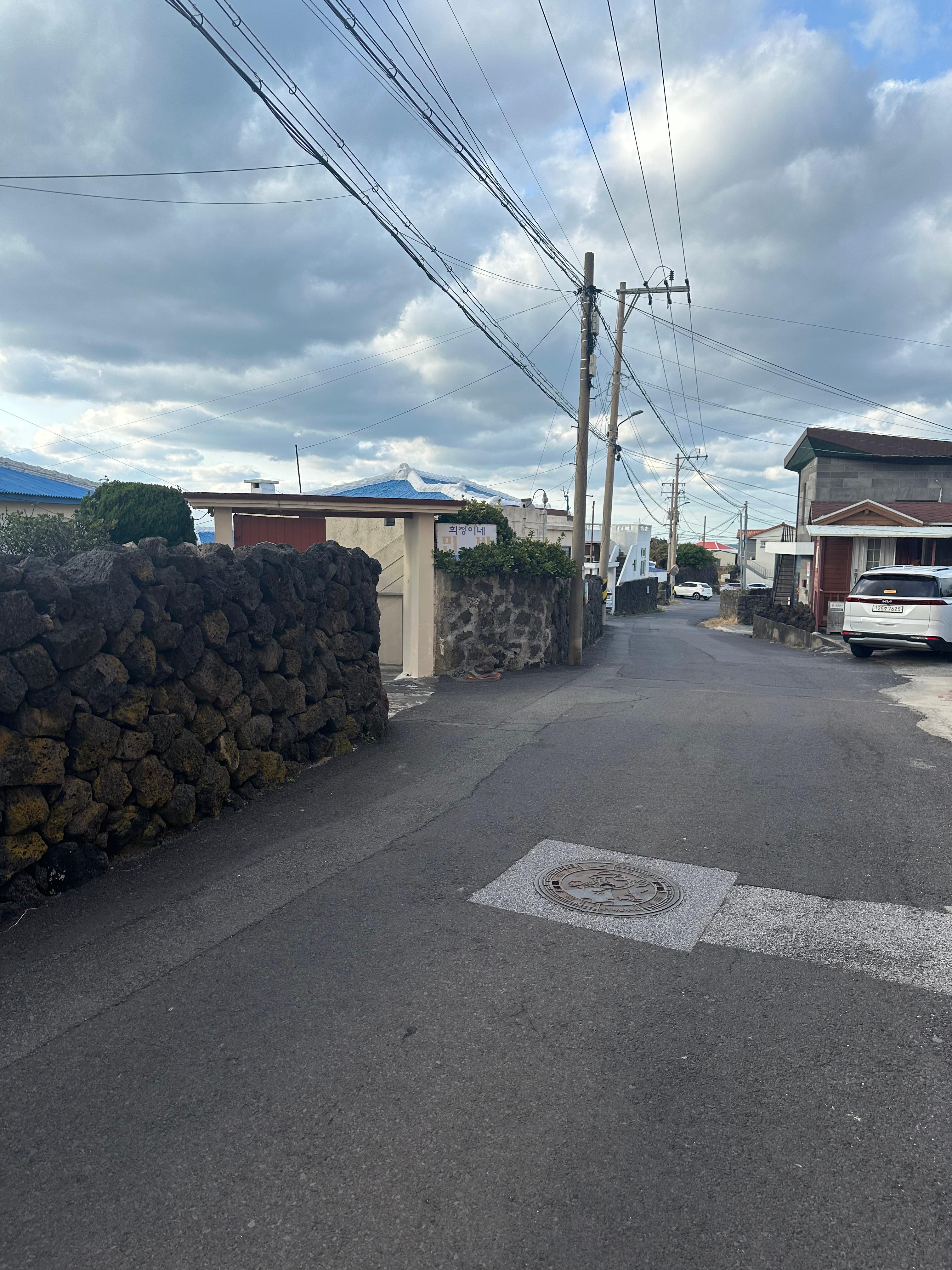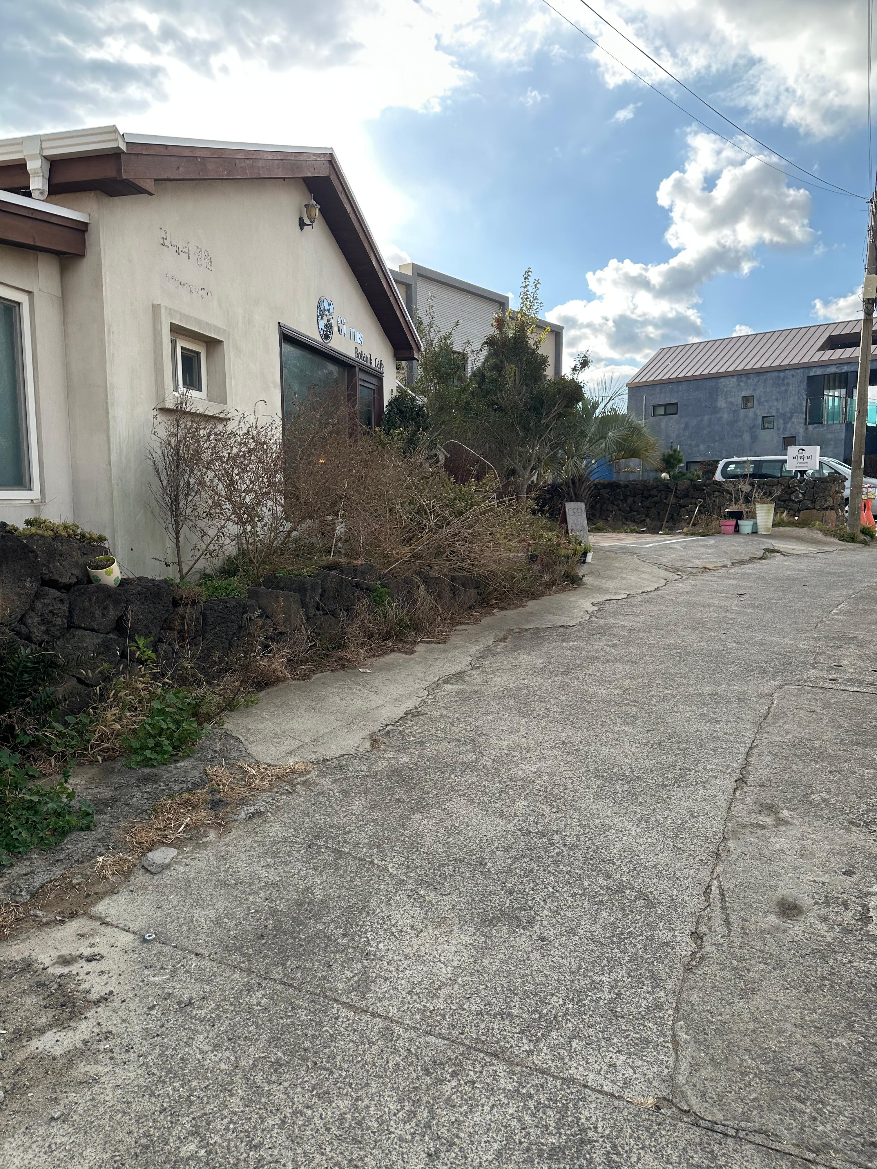 제주공항에서 102번 급행버스를 타고 한림 환승정류장에서 202번 서일주 시내버스 노선으로 환승을 했는데요. 한 15분정도 달려서 금능리에 도착했습니다. 그렇게 푸른바다와 거센 바람이 불고 있던 당시 제주 돌담길과 함께 금능리 마을을 걷다보니까 어느 새 제가 예약했던 에어비앤비가 저 멀리 보이고 있었습니다. 금능리 주변에도 다양한 펜션과 숙소가 여기저기서 보이고 있었습니다.
