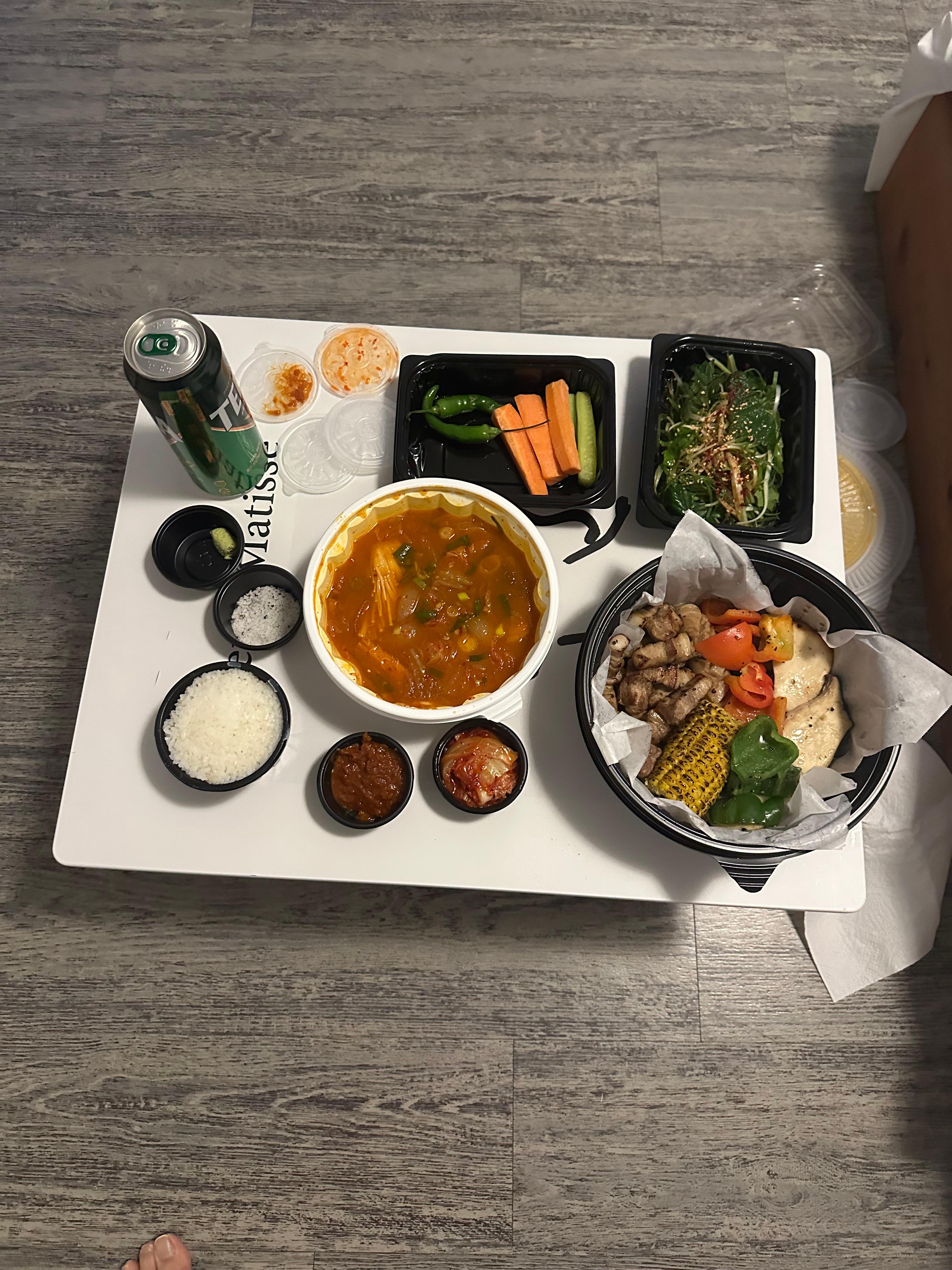 아무래도 배달이다보니 전부다 요리가 되어서 배달되었습니다. 1인 혼고기 세트라고하지만 양이 정말 많았습니다. 거기에 맥주까지 먹으니까 정말 배불렀는데요. 그렇게 맛있게 드라마 보면서 먹었고 다 먹고 나서는 가볍게 산책하면서 양치하면서 금능해변에서의 1일차를 마무리하게 되었습니다.