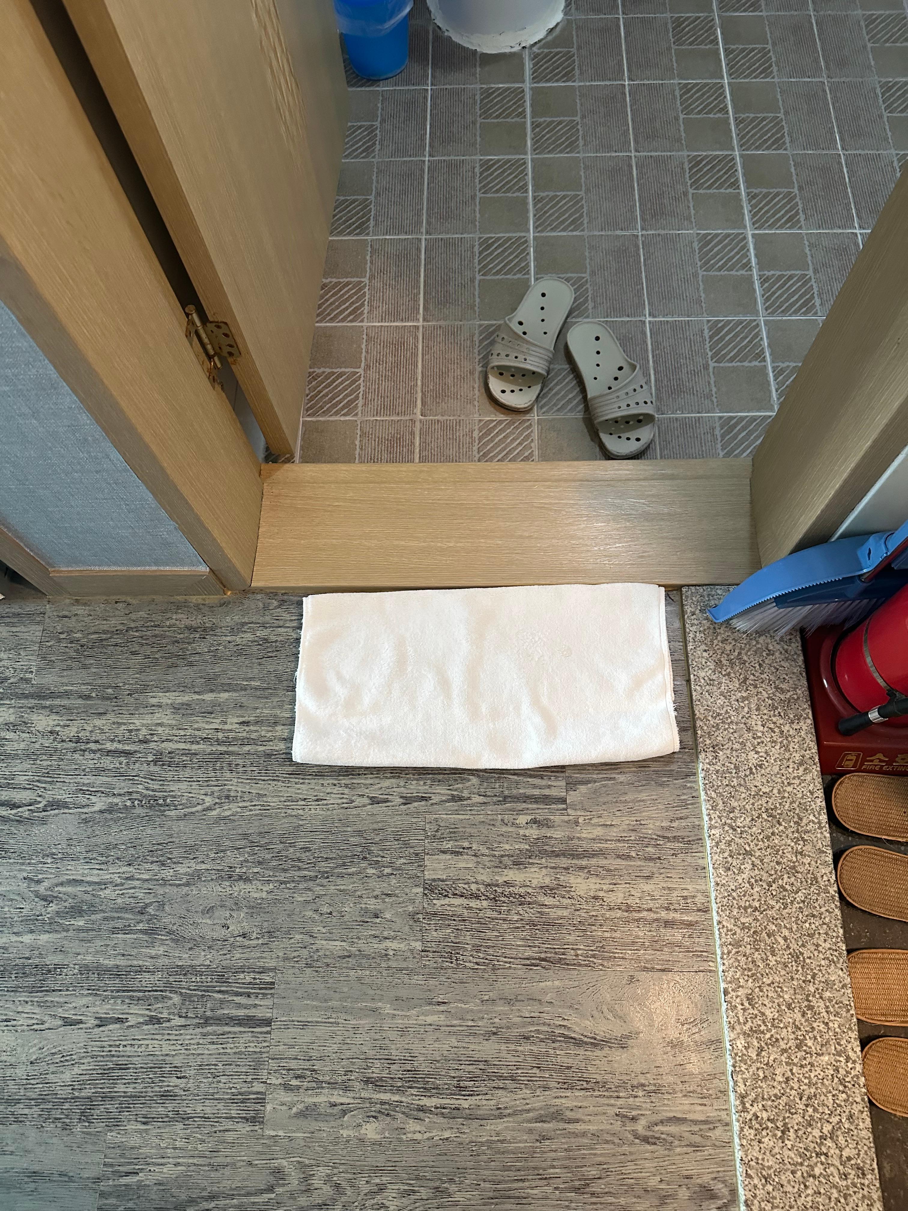 요즘은 숙소 이용하다보면 발수건도 제공되는데요. 대부분 에어비앤비의 경우 발수건 제공되지 않아서 한번 닦고난 수건으로 화장실 앞에 두기는 합니다. 하지만 일부 숙소에서는 발수건도 따로 준비해주시는 경우가 있었습니다. 제주도 갔다온지 6개월 넘어서 그런지 기억은 잘안나지만 에퀴녹스 원담점도 따로 발수건은 제공되지 않아서 당시에 그냥 수건으로 깔아놓은것 같습니다.