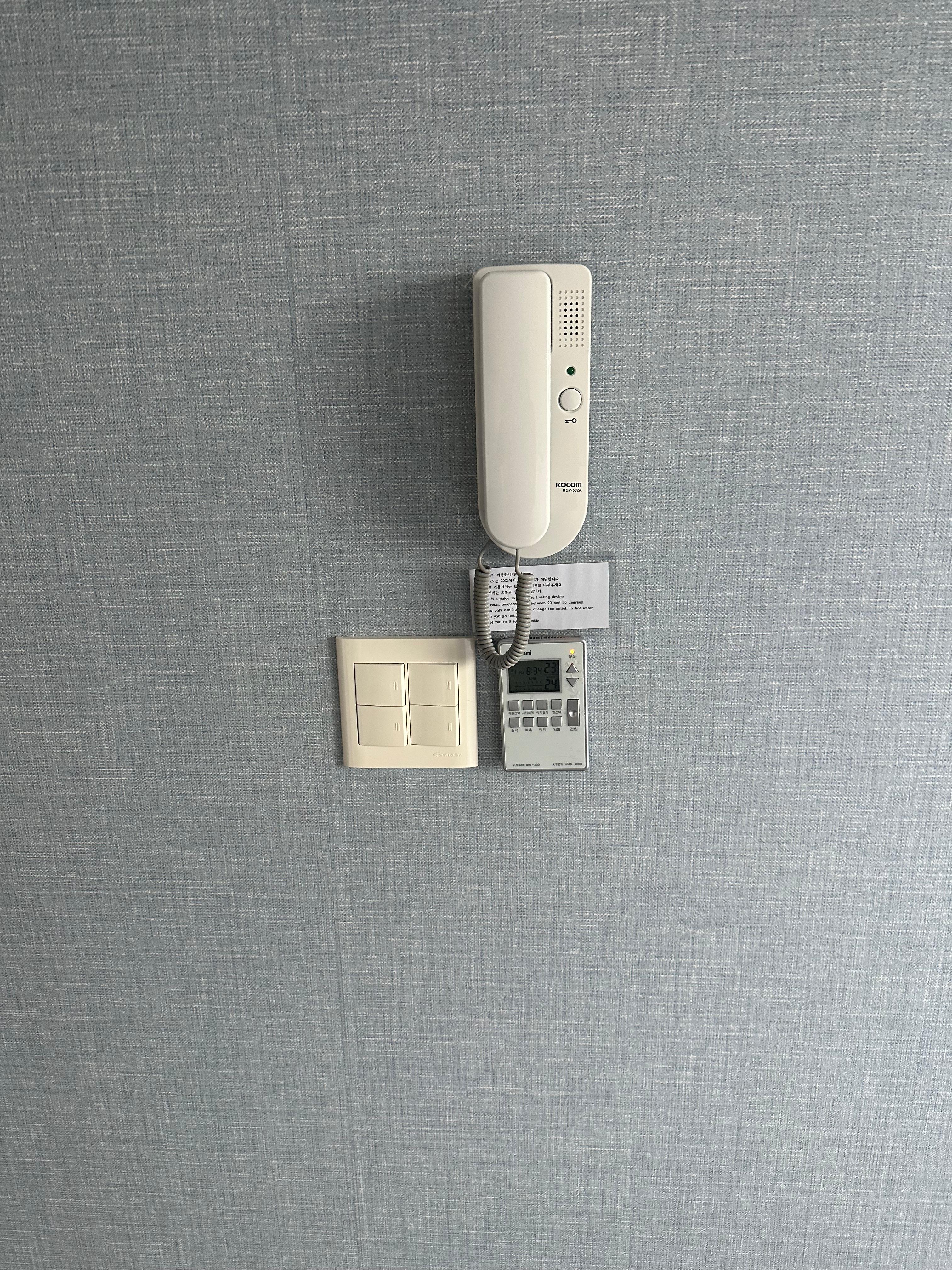 그 외에 인터폰이라고 할까요 방안에 있어서 아마 호스트와 연락할 수 있는 것 같습니다. 그런데 에어비앤비 앱으로 이용하는 경우 에어비앤비 채팅을 통해서 호스트와 실시간 연락할 수 있어서 크게 필요없을 것 같습니다. 에어비앤비가 아니더라도 네이버나 야놀자 같은 앱을 이용할 경우 호스트 번호 알 수 있기 때문에 인터폰은 딱히 의미가 없을 것 같습니다. 아무래도 조금은 지어진지 오래된 것 같습니다. 현관에는 가볍게 밖에 나갈 때 신을 수 있는 신발도 있어서 바베큐장이나 앞에 바다 잠시 갈때는 신을 수 있는 신발도 있었는데요.