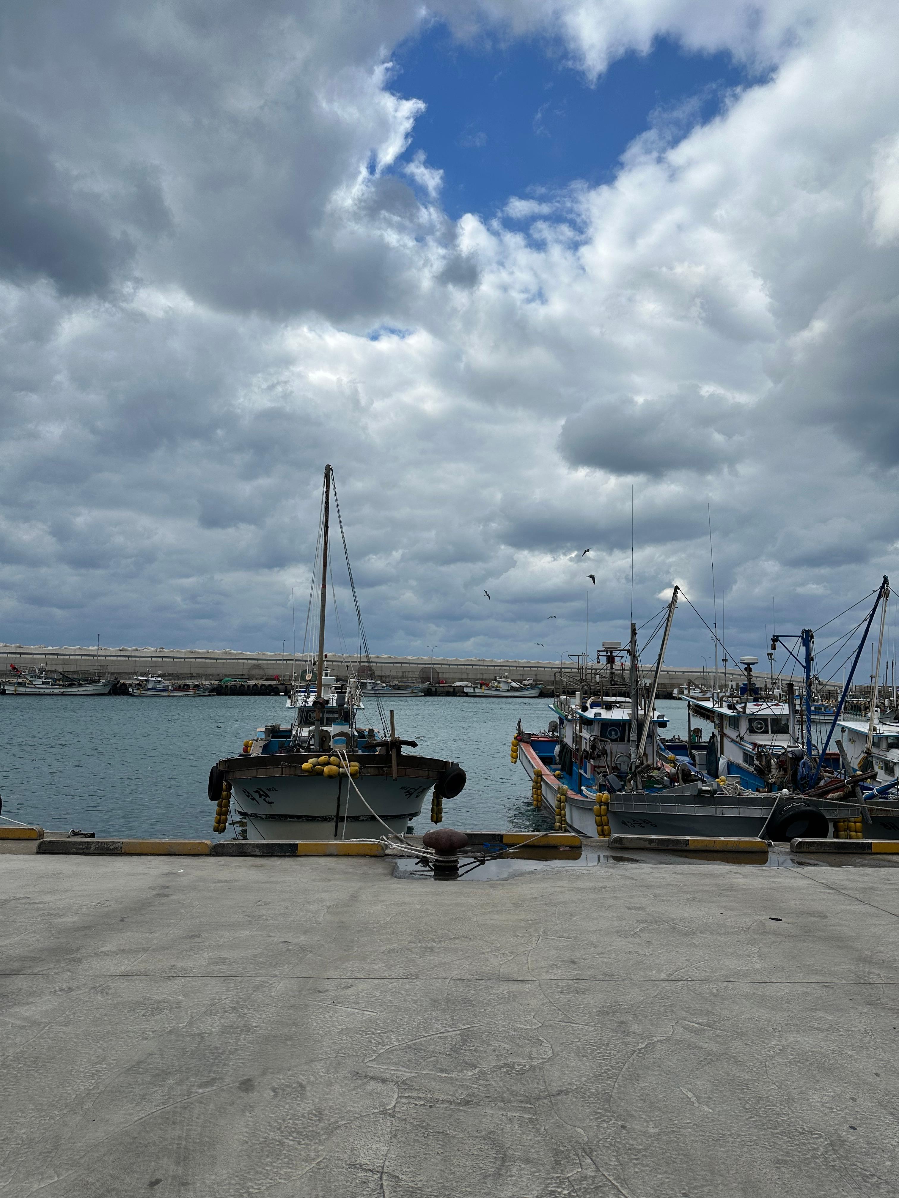 모슬포 미영이네 고등어회전문점에서 점심으로 회는 먹지 못하고 다시 나왔는데요. 그리고 모슬포 바다 앞에서 조금씩 내리는 비를 맞으며 바다를 보며 힐링을 했습니다. 제주 신촌리나 제주 김녕처럼 모슬포 미영이네 고등어회전문점 앞으로도 선착장이 있었고 이 배를 통해서 우리가 고등어회와 다양한 생선을 먹을 수 있는 것 같습니다.
