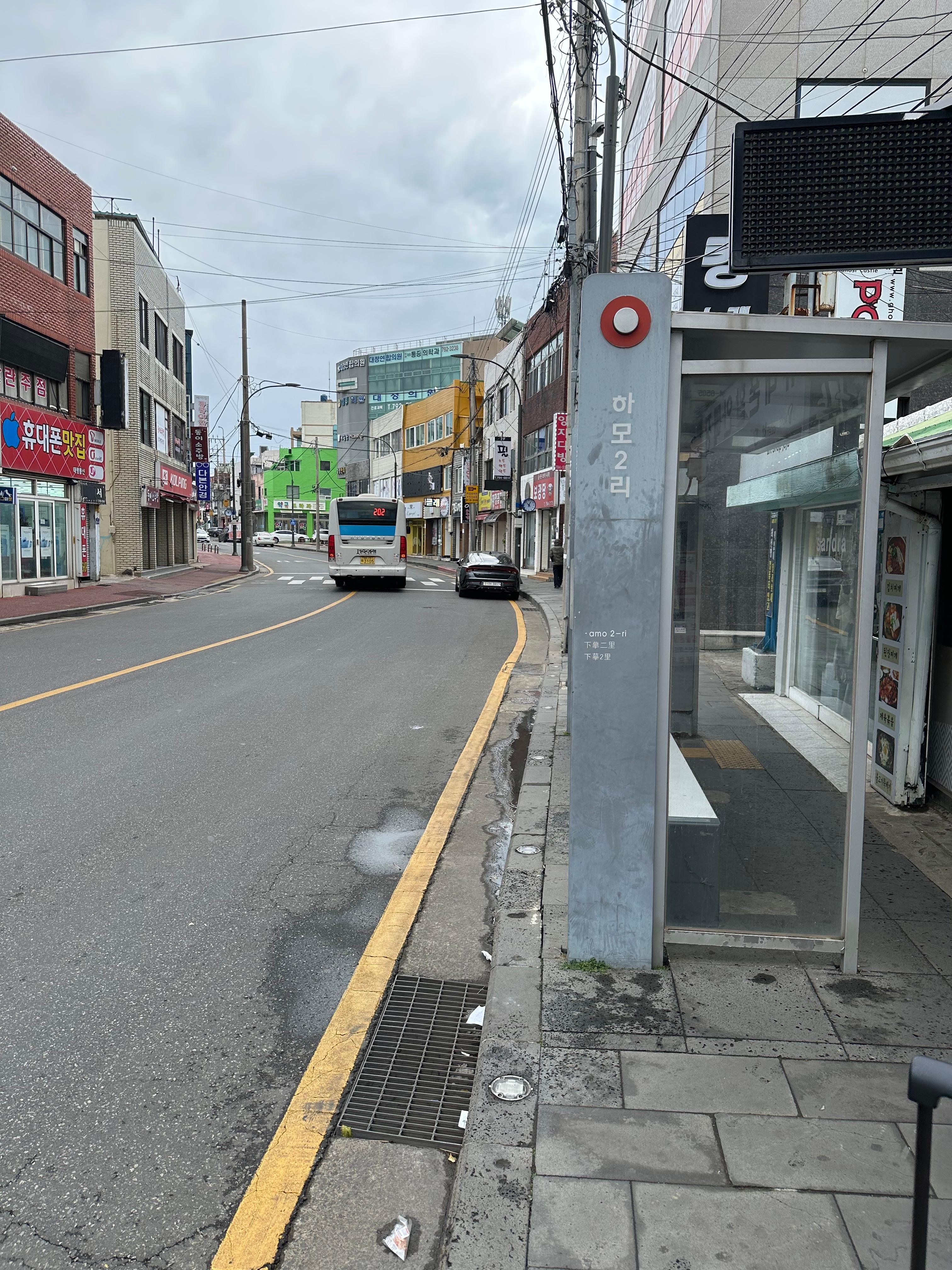 금능해변에서 모슬포까지는 1시간 조금 안걸려서 57분정도 달려서 하모2리 정류장에서 하차 했습니다. 모슬포 가는 방향에 따라 하차지를 정하시면 됩니다. 저는 점심으로 미영이네 고등어회전문점에서 먹을려고 가장 가까운 하모2리에서 하차했습니다. 제주도에서 가장 많이 왔던 지역은 성산, 서귀포인데요. 이 두지역은 관광지이고 가장 버스가 많이 다닌다는 점입니다. 그 외에도 남원읍, 애월, 김녕, 신촌리, 금능, 협재도 왔었는데요. 관광지가 아니고 작은 시골 분위기가 있다보니 편의점과 배달 모두 개인 차량이 없으면 이용하기 힘든 점도 있습니다. 특히나 오늘 소개해드리는 모슬포는 제두공항에서도 서쪽을 지나 거의 끝에 있는 지역인데요. 버스도 많지 않고 시간도 많이 걸린다는 점이 있습니다.