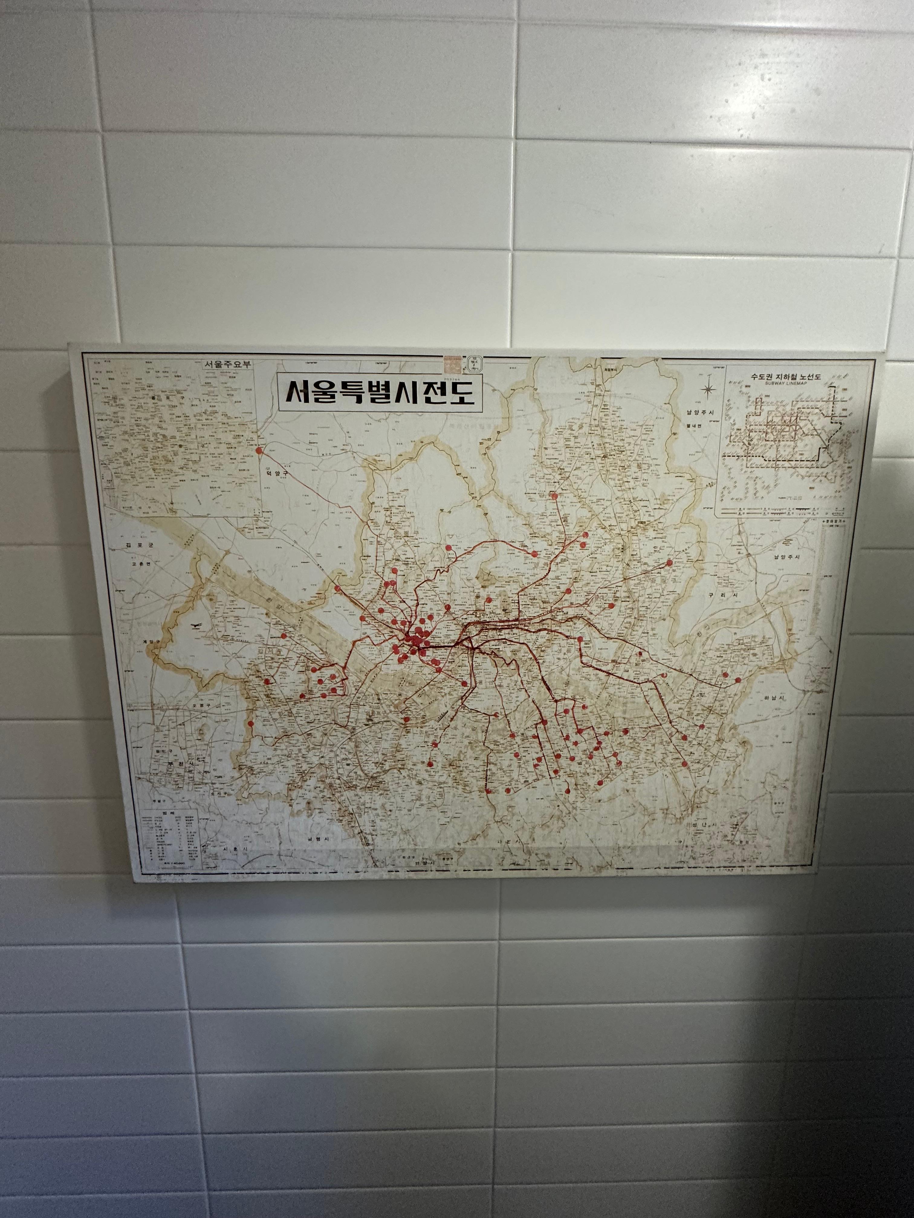 당시 건축학개론은 대학생 시절 승민과 서연의 사랑이야기를 나누었고 둘은 건축학개론이라는 수업을 통해서 알게 되었습니다. 영화 첫장면에서 교수님 역할을 맡은 배우 김의성이 서울지도를 칠판에 펼치고 학생들에게 서울에서 가고싶은 곳들을 조사내주는 레포트를 내줬는데요. 그렇게 서연과 승민은 과제를 통해서 서로 친하게 지내면서 영화가 시작되었습니다. 그때 그 지도였던 것 같습니다. 아무튼 카페서연의집은 당시 건축학개론 영화의 소품과 흔적을 모두 볼 수 있었습니다.