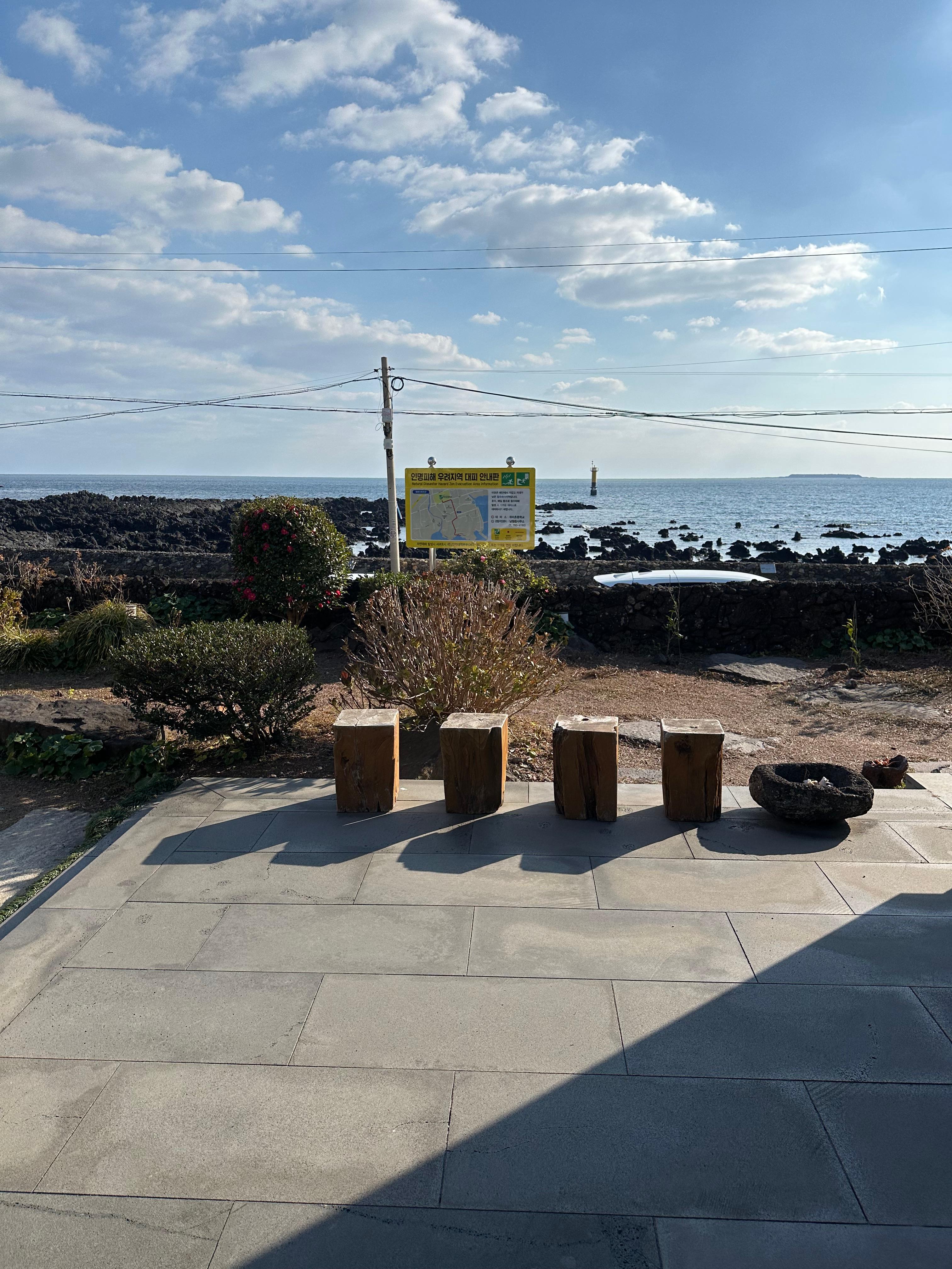 카페서연의집 매장으로 들어가는 바로 입구에는 마당이라고 할까요. 매장 밖에 입구에서 이렇게 남원읍 바다를 볼 수 있었습니다. 제주도는 섬지역으로 해안가 주변은 바다가 보이는 카페가 정말 많습니다. 남원읍 위미리에 위치한 카페 서연의집도 입구와 서연의집을 오는 과정에서 바다를 보며 따라 올 수 있는데 짝사랑이라는 첫사랑과 짝사랑이라는 영화 이미지와 카페까지 오는 과정도 설레이는 감정과 함께 기분 좋은 카페라고 생각합니다.