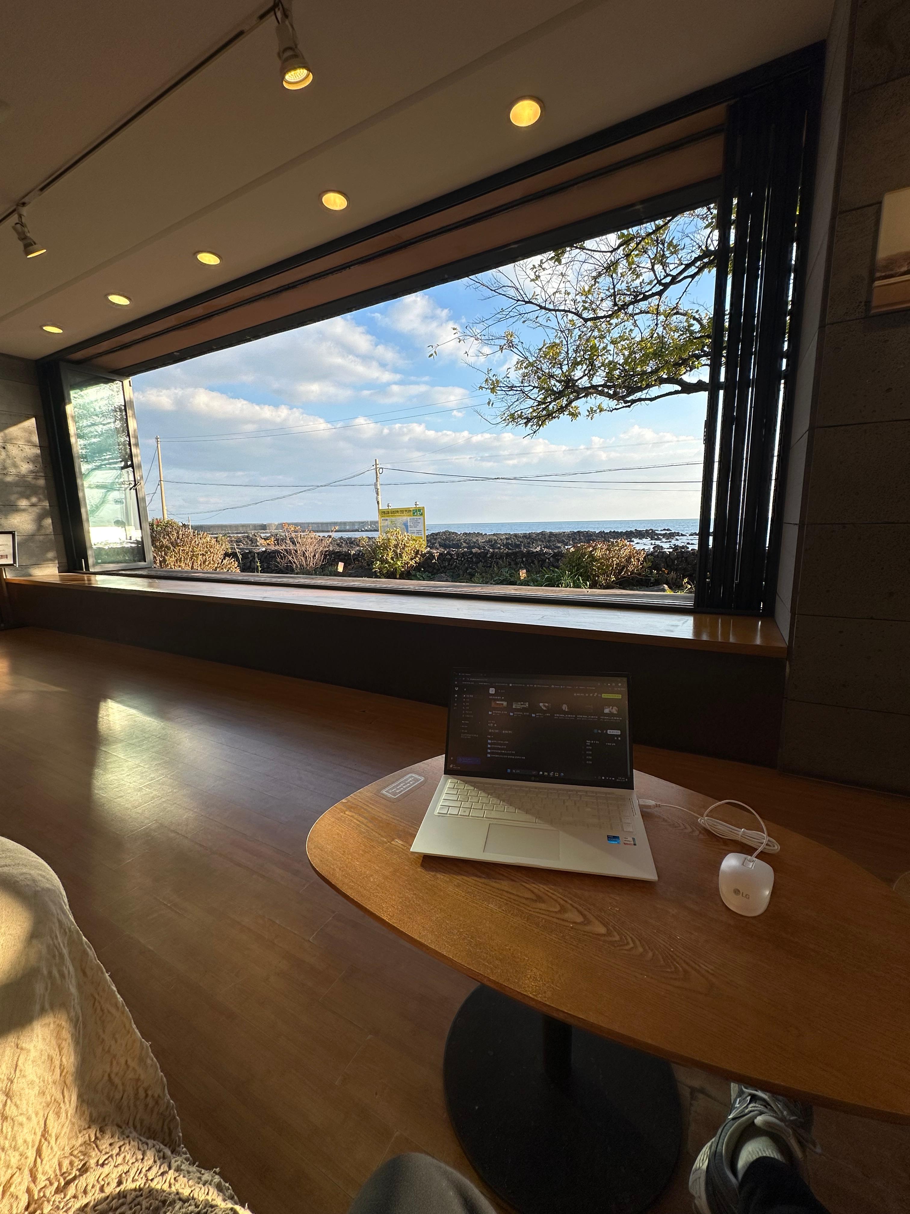 조금 시간이 지나서 작성하는 포스팅이라 잘 기억이 나지 않는데요. 당시 크리스마스가 지난지 얼마 되지 않아서 그런가 카페서연의집도 크리스마스 느낌이 남아있는 상태였습니다. 저는 자리가 당시 없어서 프론트 옆에 승민의 작업실이 보이는 테이블에서 블로그 포스팅을 하다가 창가쪽에 비어서 자리를 옮겼는데 바로 창가쪽 옆쪽에도 출입문이 있었습니다. 물론 나갈수는 없었습니다. 카페서연의집은 코로나이후부터는 정말 자주 찾았는데요. 블로그를 본격적으로 하기전까지만 하더라도 저의 전공인 개발 업무를 이곳 카페서연의집에서 즐기기도 했습니다. 직장보다는 뭔가 자유롭게 여행을 다니면서 혹은 이렇게 바다가 보이는곳에서 살면서 지내는것도 인생 버킷리스트 중 하나로 삼고있는데요. 그런 그 꿈을 언제 이룰지는 아직은 모르겠습니다. 우리나라는 아직까지 재택근무가 활성화된곳이 없어서 재택근무가 활성화된다면 굳이 수도권이 아니더라도 제주도나 속초, 묵호처럼 바다가 보이고 일하고싶은곳에서 자유롭게 일하는날이 오면 좋을 것 같습니다.