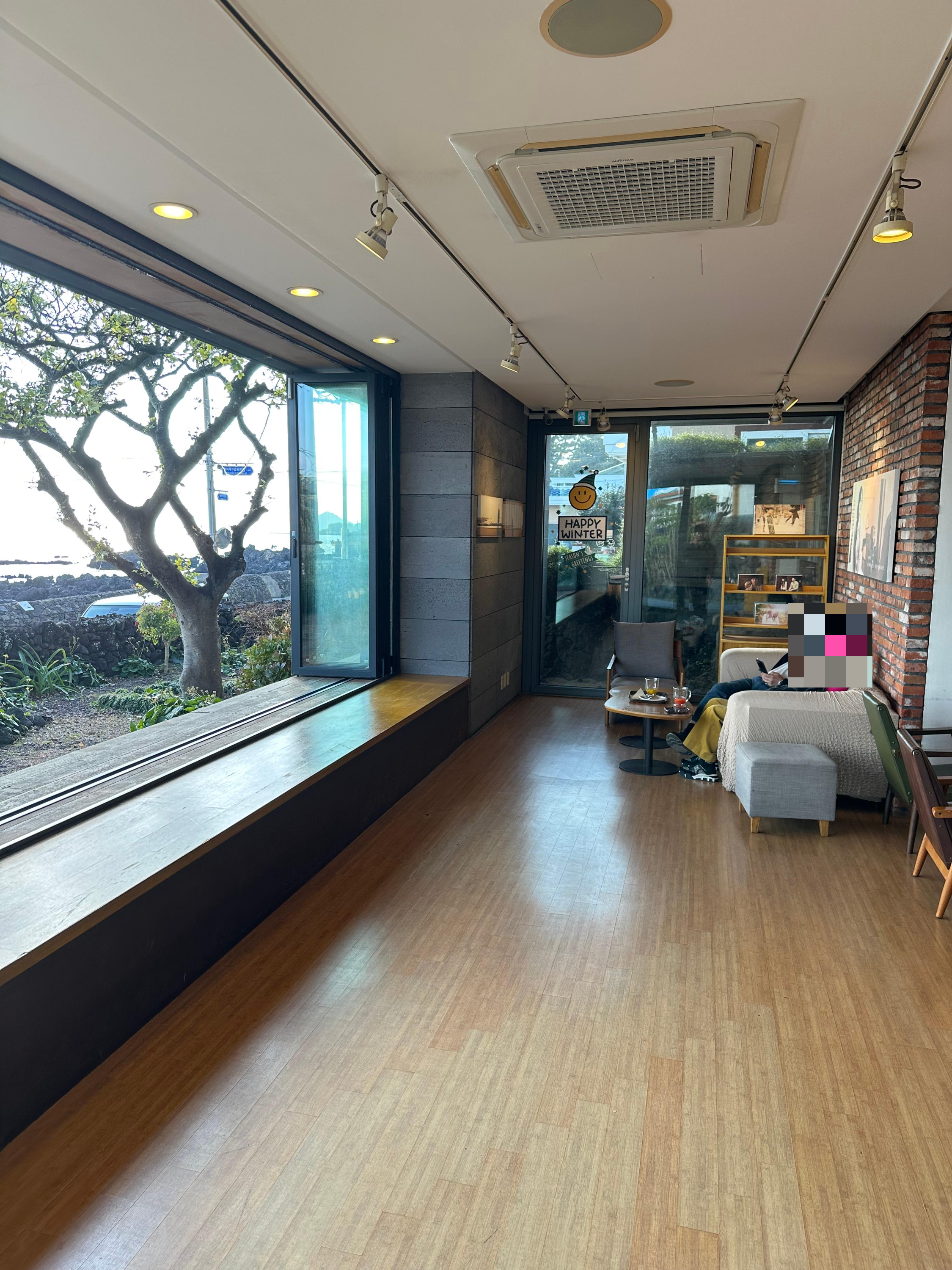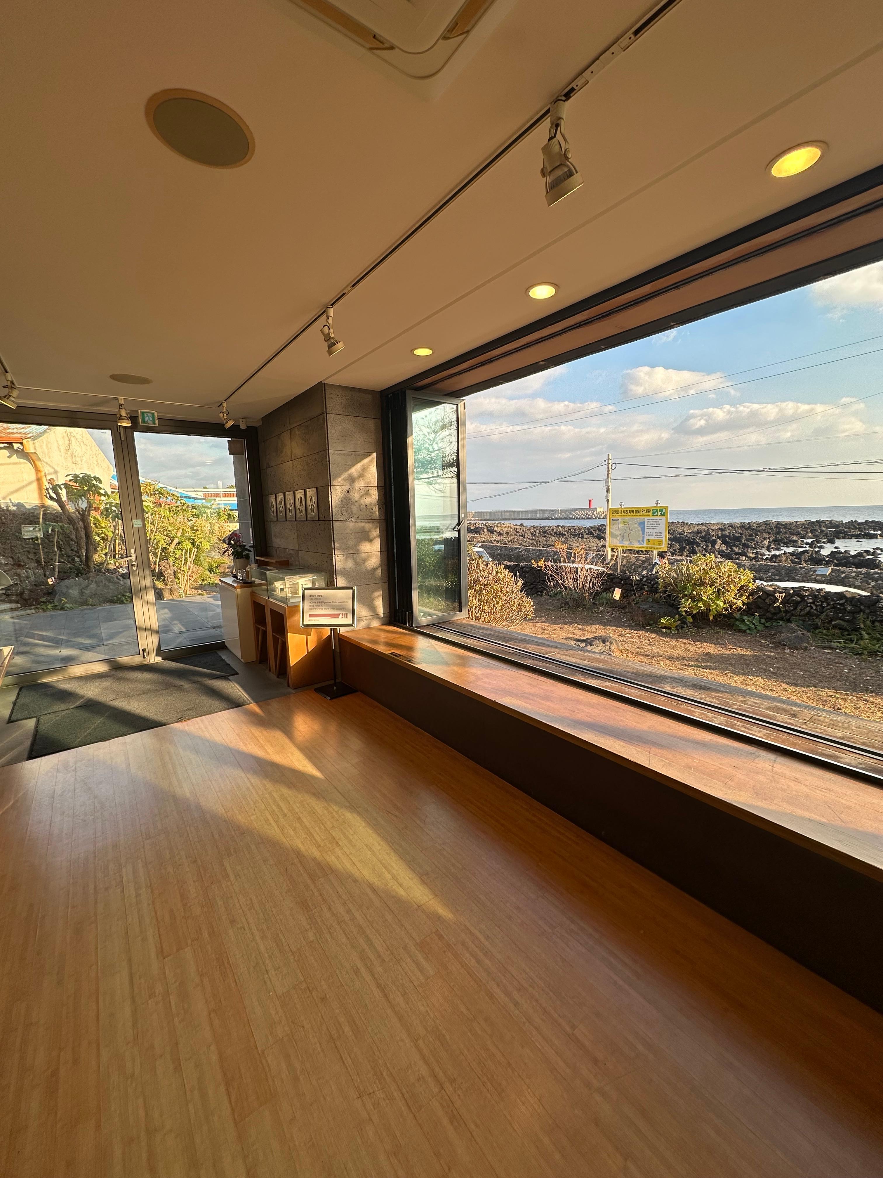 카페서연의집에서 가장 핵심이라고 불릴 수 있는 포톤은 매장 프론트 앞으로 창문 앞입니다. 창문앞으로는 제주도 남원읍 위미리의 바다를 그대로 볼 수 있었는데요. 2층에서도 볼 수 있지만 1층 매장 프론트 앞에 좌석이 바다가 바로 보이면서 정말 좋은 것 같습니다. 그래서 인기도 많은데요. 특히 창문앞은 포토존이라 사람이 많을 때는 빨리빨리 찍고 나오는것이 배려인것 같습니다. 제가 왔을 때도 창문앞에 쇼파에도 이미 손님들이 있어서 바로 이용은 못했습니다. 우선 음료를 주문해야했습니다. 지난 2023년에 왔을 때 이용했던 한라봉꿀을 주문했습니다. 2023년말고 2024년에도 왔었는데요. 그때는 별도로 포스팅은 하지 않았지만 제주도 여행을 오면 카페 서연의집은 꼭 오게 되는 것 같습니다.