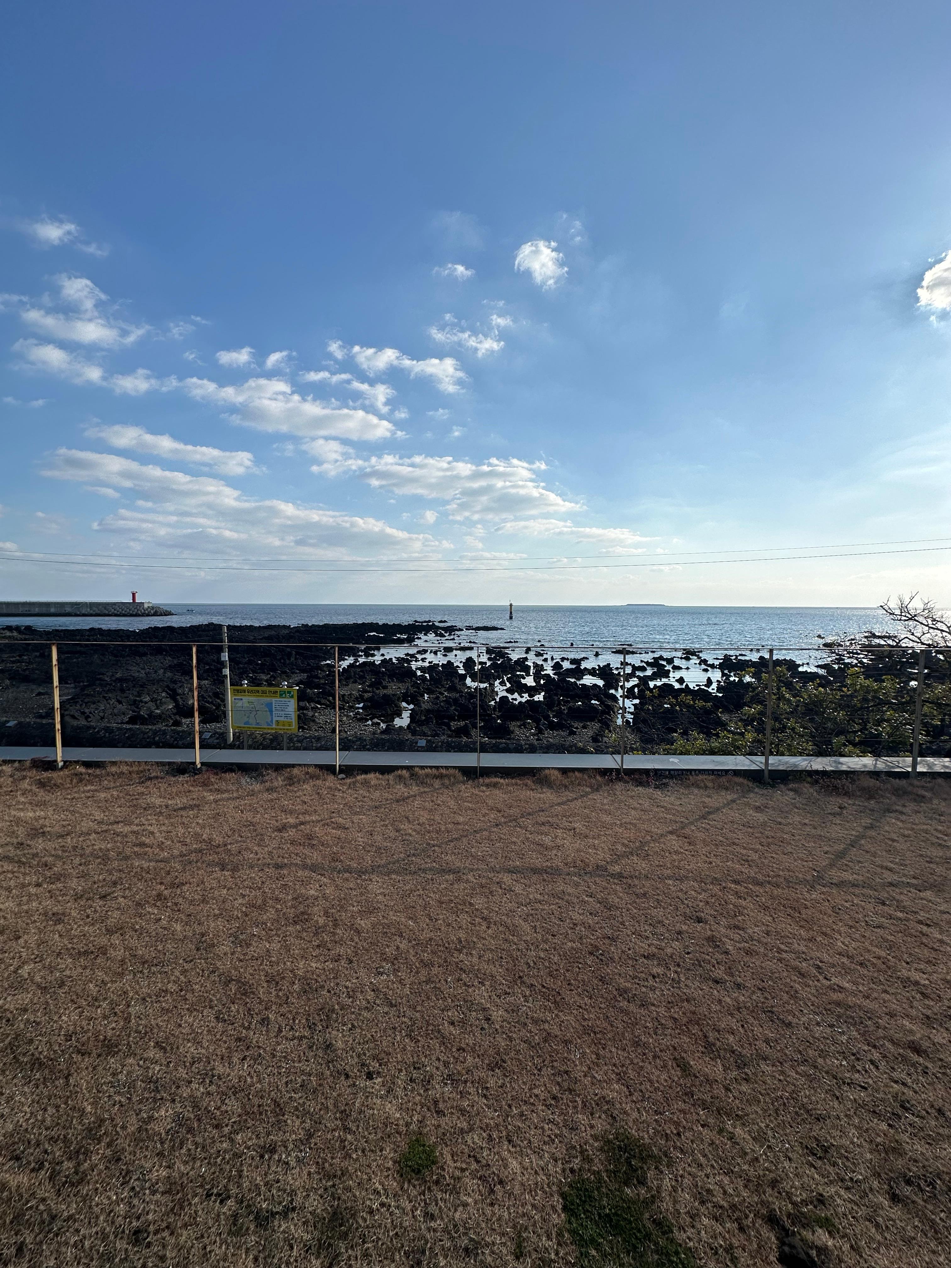 그리고 2층으로 올라오면 테라스로 나갈 수 있는데요. 테라스에서는 1층보다 더 높기 때문에 위미리 고요한 바다를 그대로 느낄 수 있었습니다. 특히 겨울마다 더 아름다웠습니다. 남해안의 바다는 동해안보다는 춥지 않고 따뜻함이 그대로 전해졌습니다.