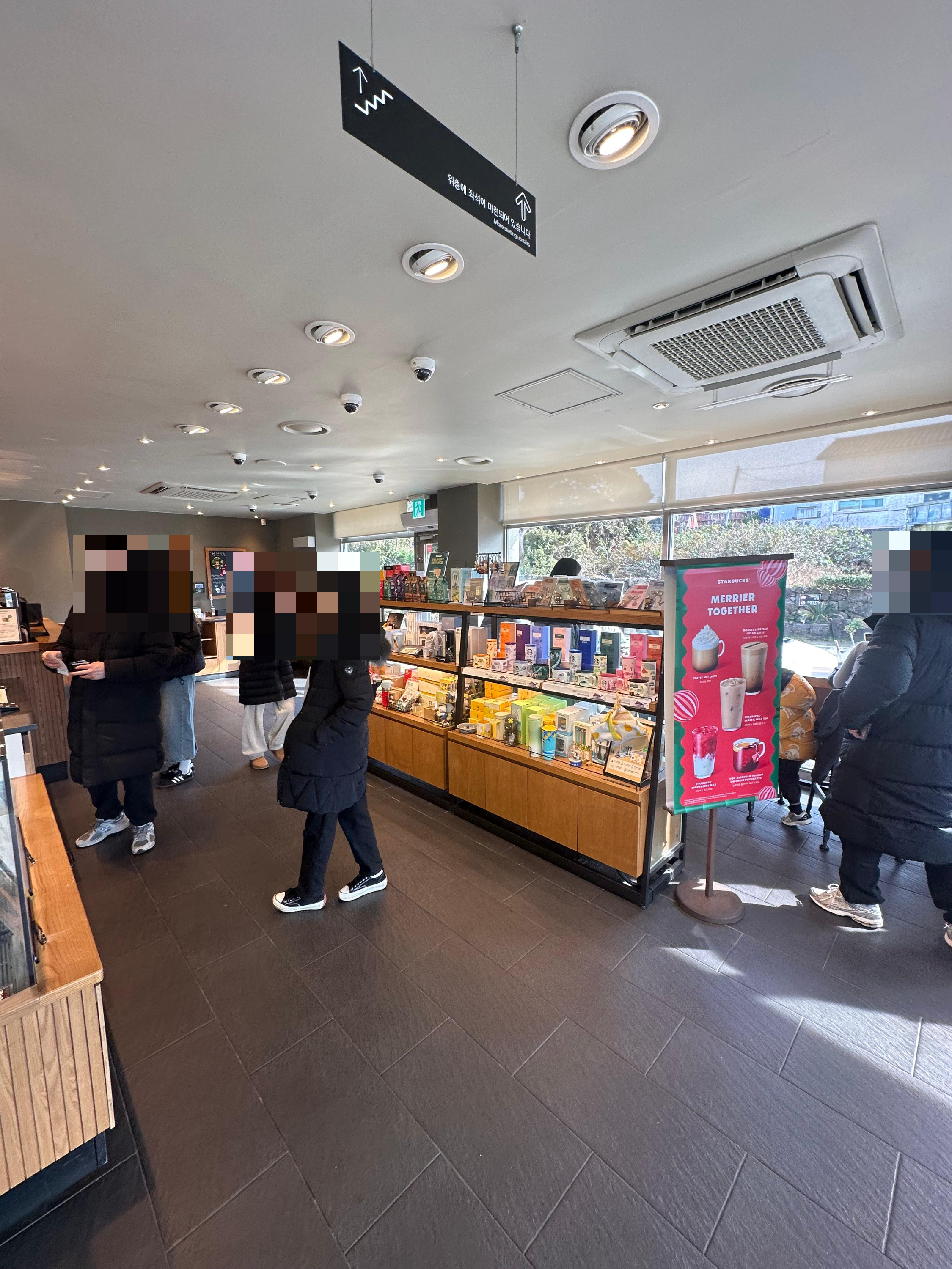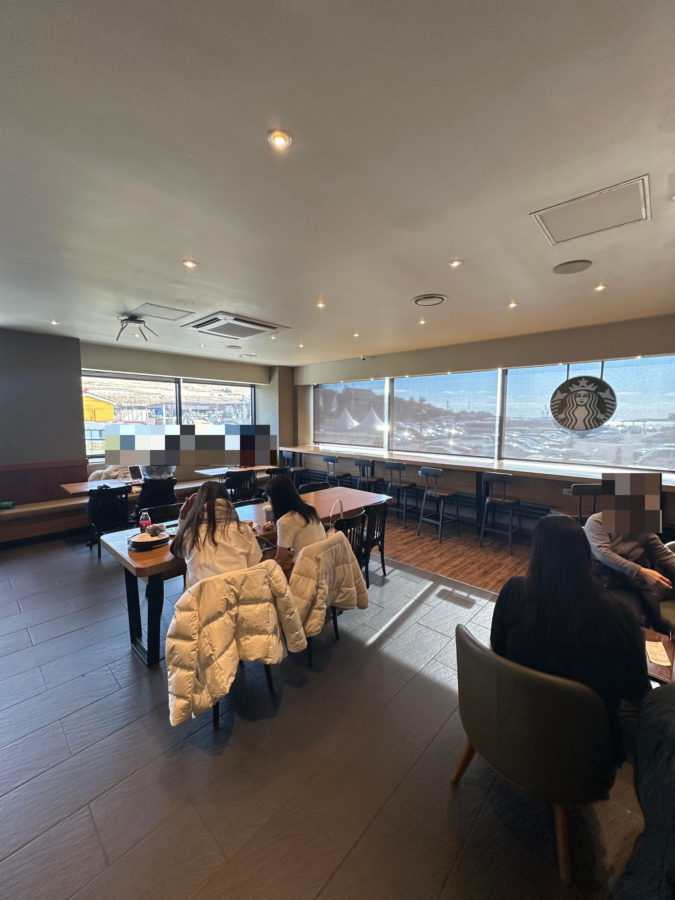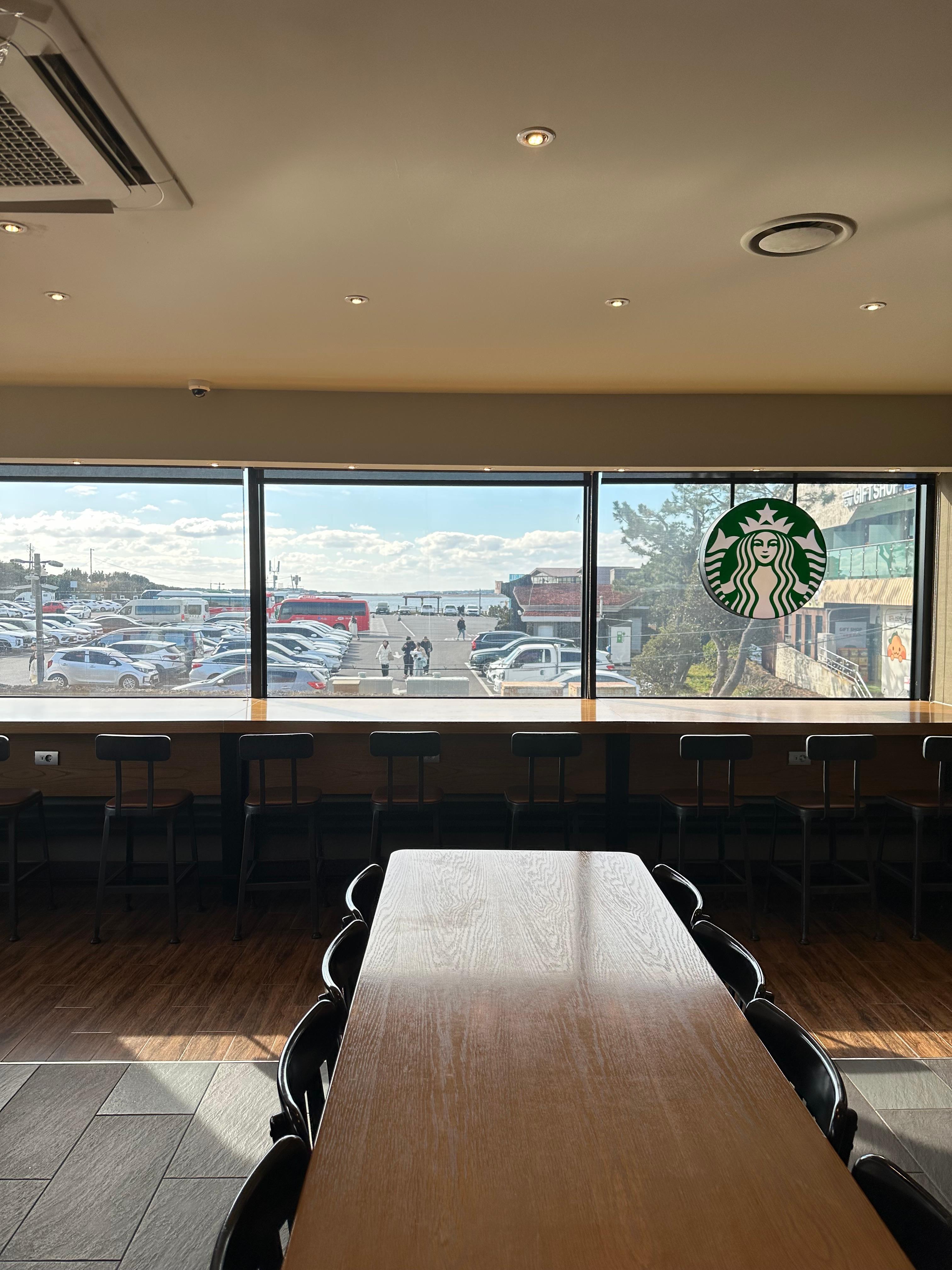 저는 스타벅스 성산일출봉점 매장안으로 들어왔습니다. 넓지는 않아보이지만 그래도 많은 사람들을 수용할 수 있는 크기였습니다. 2년전 2023년 1월에는 늦은 겨울 초저녁에 와서 어두워질때까지 이곳에서 코딩 했었는데요.