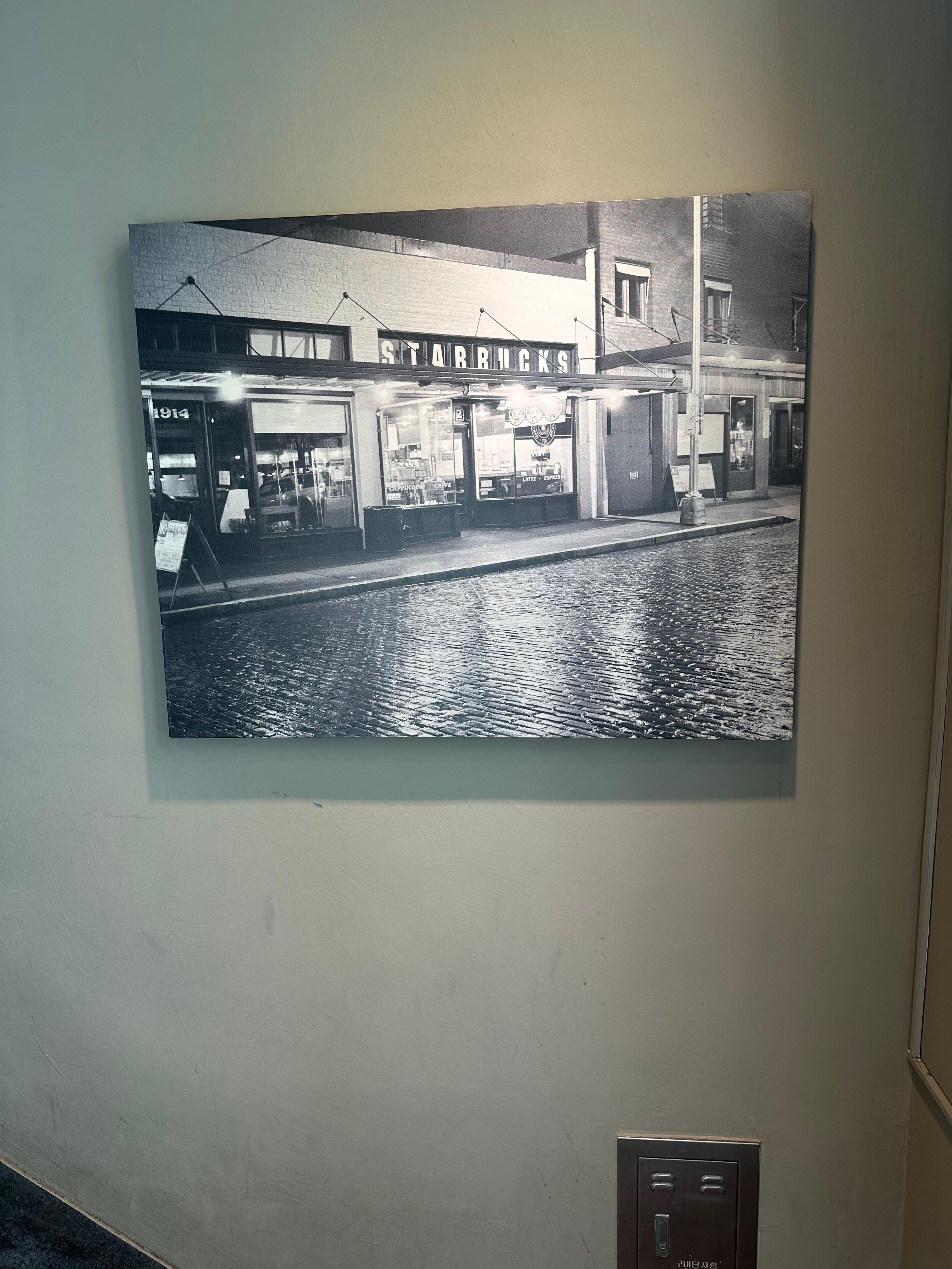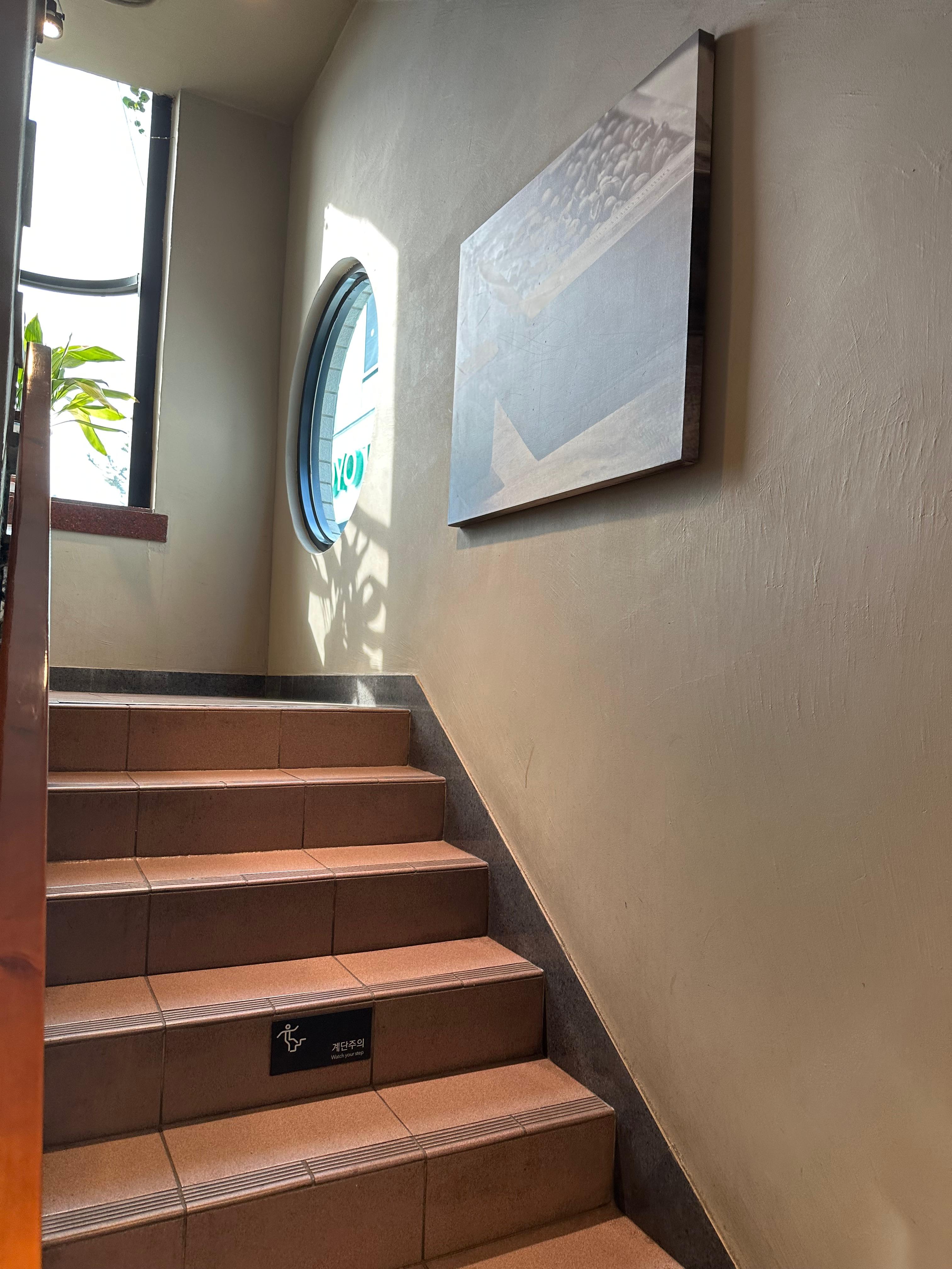 스타벅스 성산일출봉점은 1층과 2층으로 이루어진 건물인데요. 건물외관은 다소 낡아보입니다. 건물외관이 낡아보여서 그런지 내부 올라가는 계단도 오래된 건물의 흔적이 그대로 느껴집니다. 오래된 건물인데 2층으로 올라가는 계단에는 오래된 국내인지 외국인지 모르는 스타벅스 오래된 매장 사진도 볼 수 있었습니다.