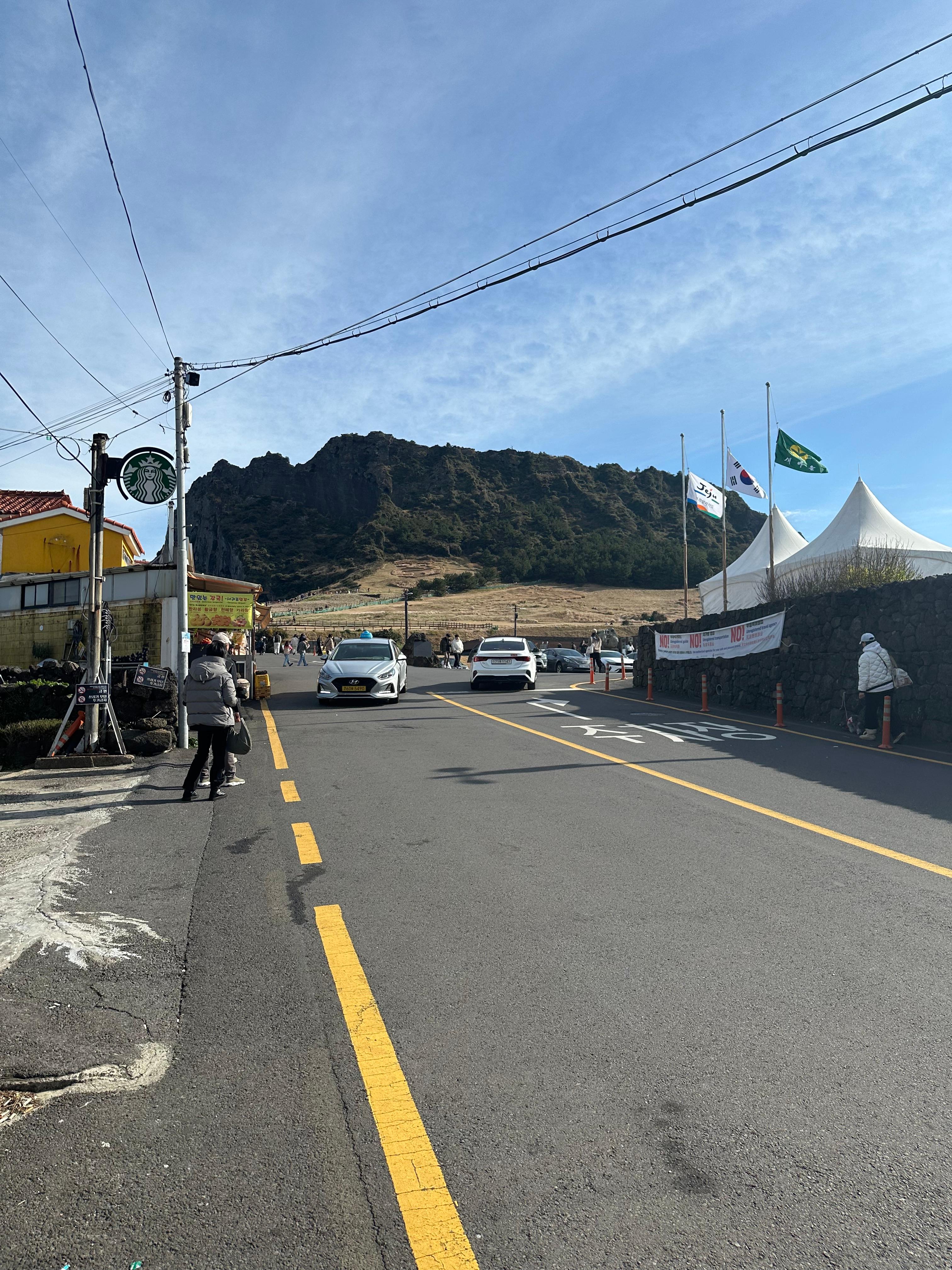 저는 2024년 제주도여행의 마지막 일정을 보내기 위해 목적지로 이동하기 위해 성산일출봉 방향으로 이동했습니다. 사람들이 제법 성산일출봉쪽으로 가고 있었습니다. 그래도 겨울이 그런지 따뜻한 제주도에서도 패딩을 입고 성산일출봉으로 올라가느 관광객들이 몇몇 보이고 있었습니다.