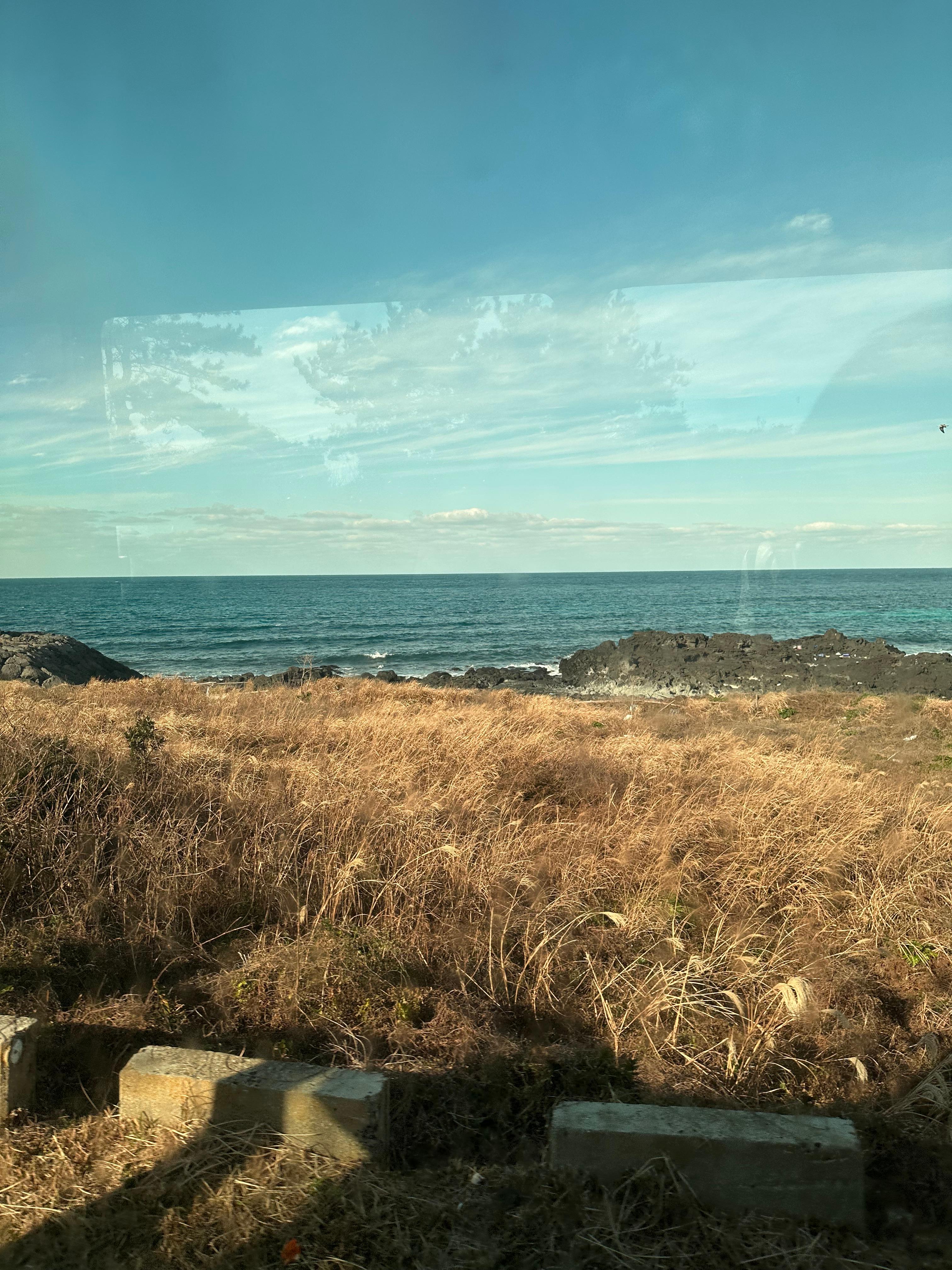 하도리를 지나 세화, 김녕 방향으로 201번 동일주 버스가 달리고 있습니다. 서일주 버스 노선을 타고 여행 했을 때도 버스를 타고 다니는데 계속 바다만 보이는 풍경이었는데요. 제주도는 섬이다보니 속초, 포항처럼 동해안 구간보다 더 많이 바다를 볼 수 있습니다. 특히 해안가 위주로 달리는 201번과 202번의 경우 이렇게 계속해서 바다를 보며 달릴 수 있다는 점인데요.
