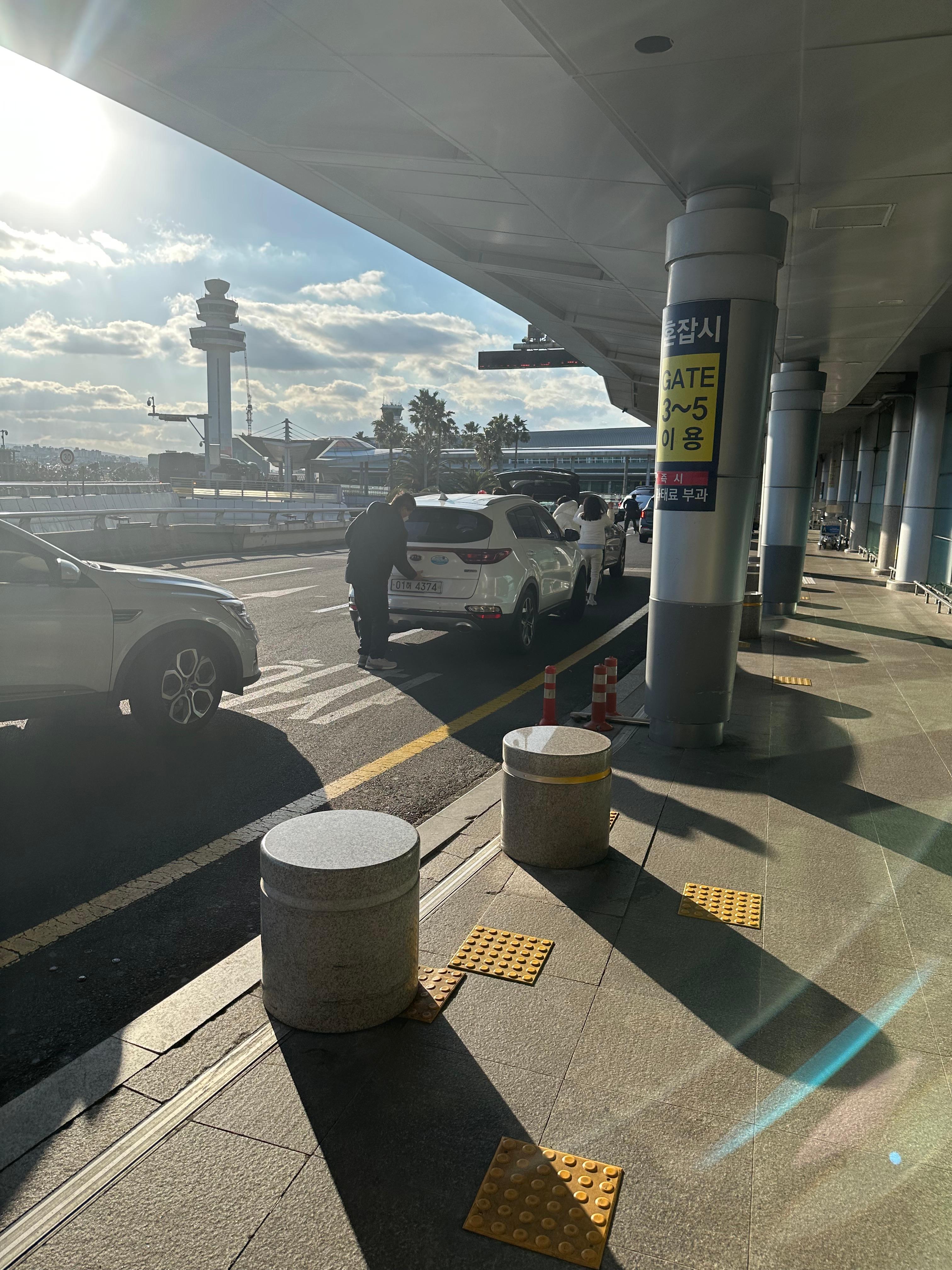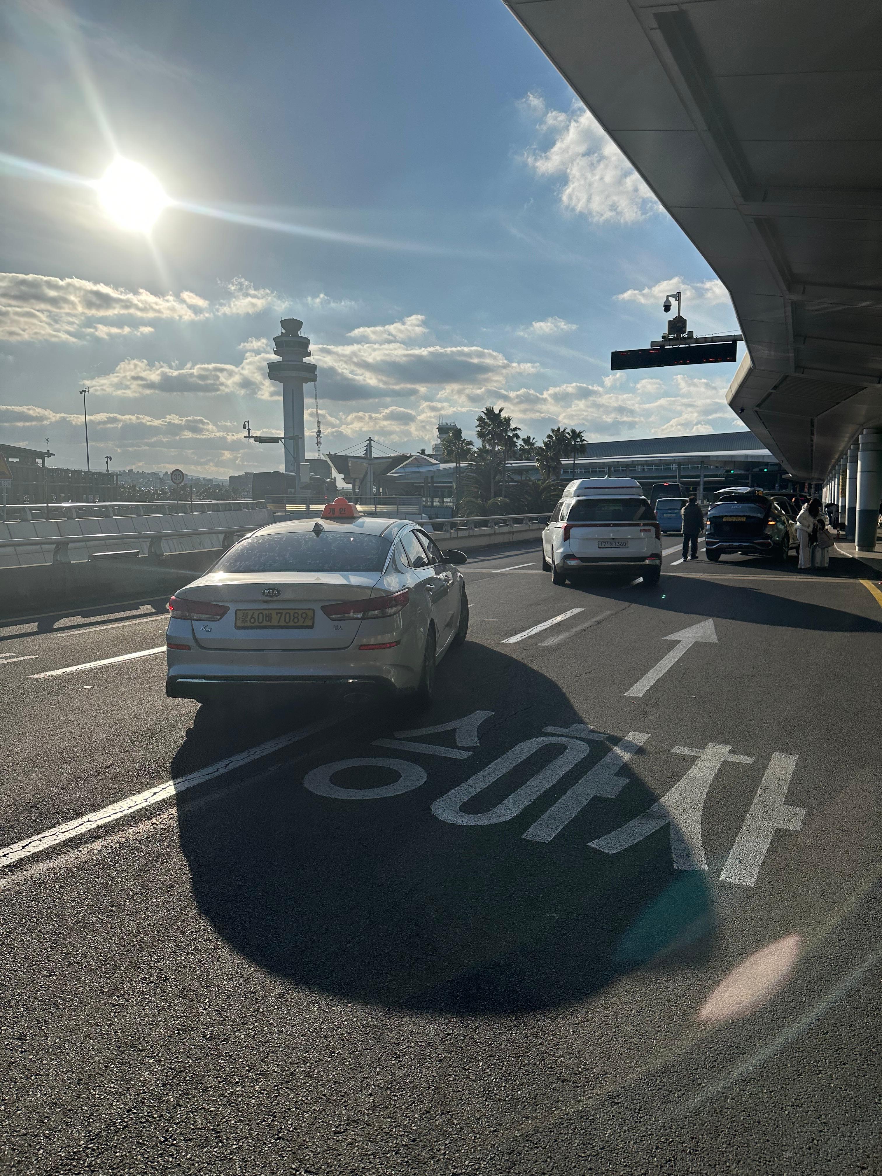 제주터미널에서 제주공항으로 가기 위해서 제주터미널 정문에서 신호 건너서 버스를 타려고하는데요. 제주터미널에서 공항까지는 10분이면 가는 거리이지만 시내버스가 한번에 가는게 없습니다. 오히려 111번,112번, 101번 급행버스를 타야 했는데요. 공항 가는 노선이 있더라도 돌아서 가거나 환승을 해야 했습니다. 그래서 늦을 것 같구 당시 2024년 12월 기준으로 계속해서 공항 검문이 강화되면서 빨리 와달라는 문자가 들어오는점에서 저는 택시를 타기로 했습니다.