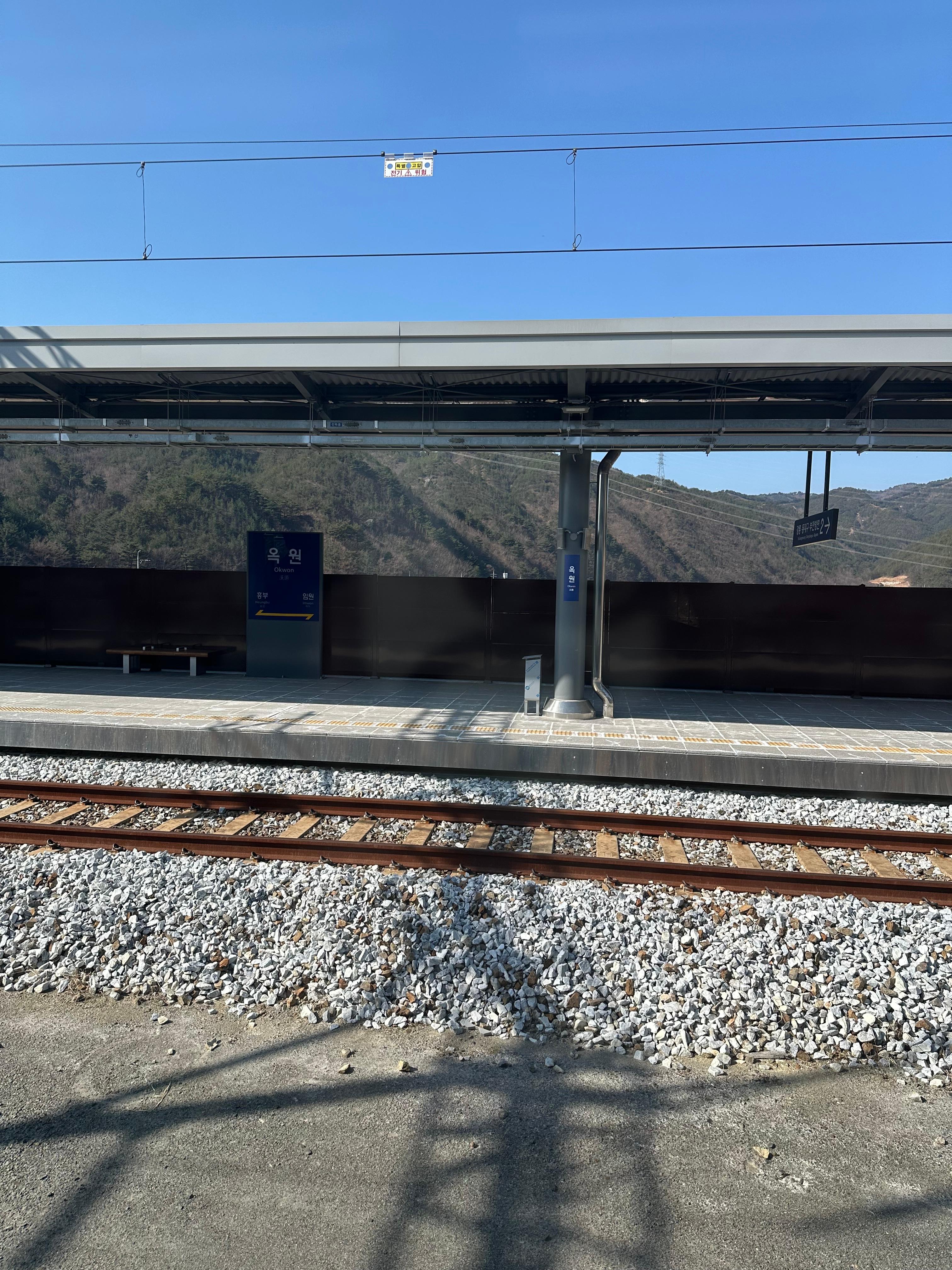 동해역에서 죽변역까지는 1시간이 조금 걸리지 않았는데요. 그렇게 열차를 타고 가다보니까 옥원역이라는 신생 역사에 도착했습니다. 옥원역은 죽변까지 2정거장 남은 상태였습니다. 동해선 역사의 특징은 건설비를 줄이기 위해 일부 역사는 단선으로만 운영된다는 특징이 있는데요. 단선으로 운영되는 역사의 경우 바로 이전 정류장에서 정차 시간이 생길 수 있다는 것입니다.