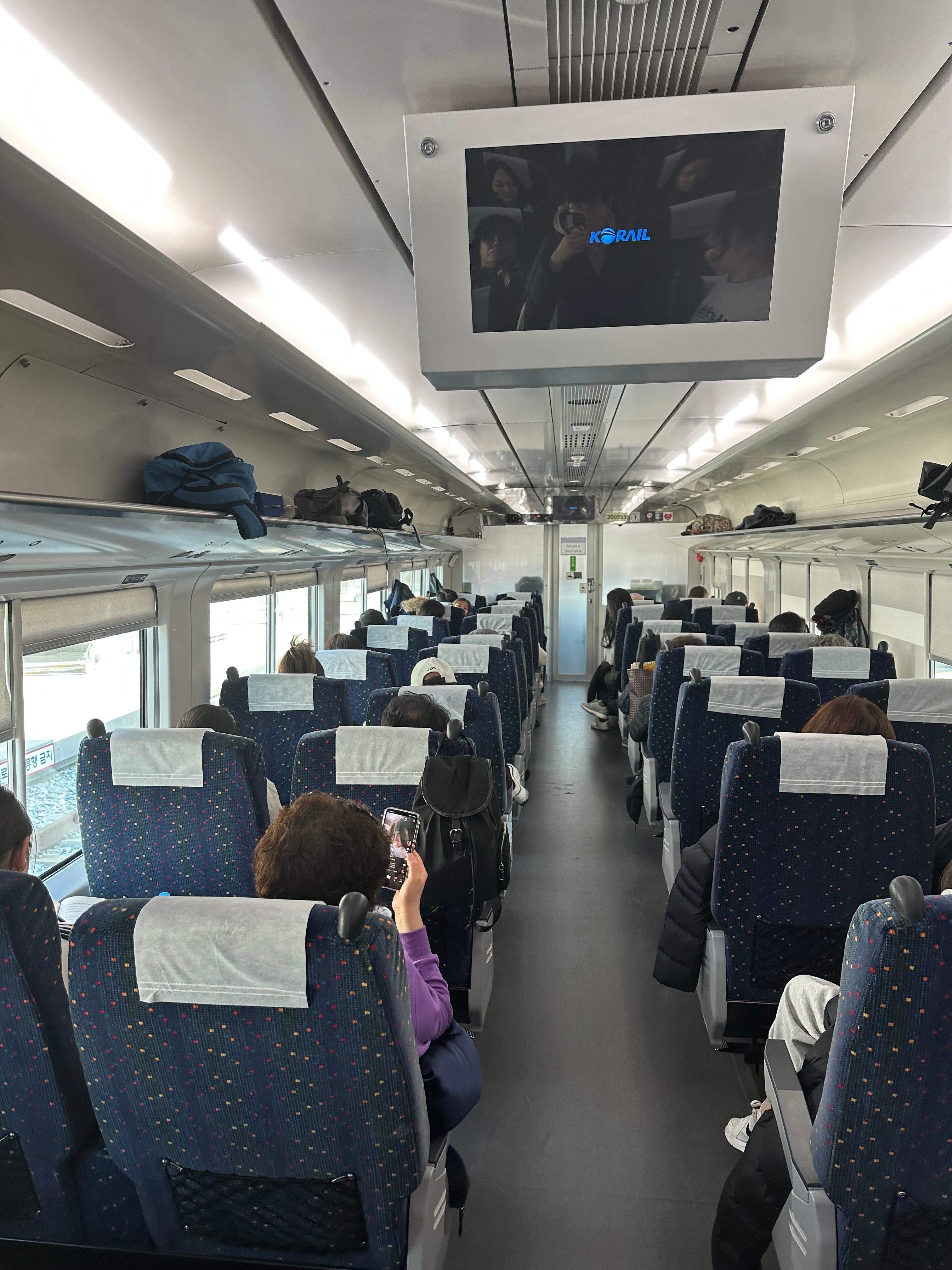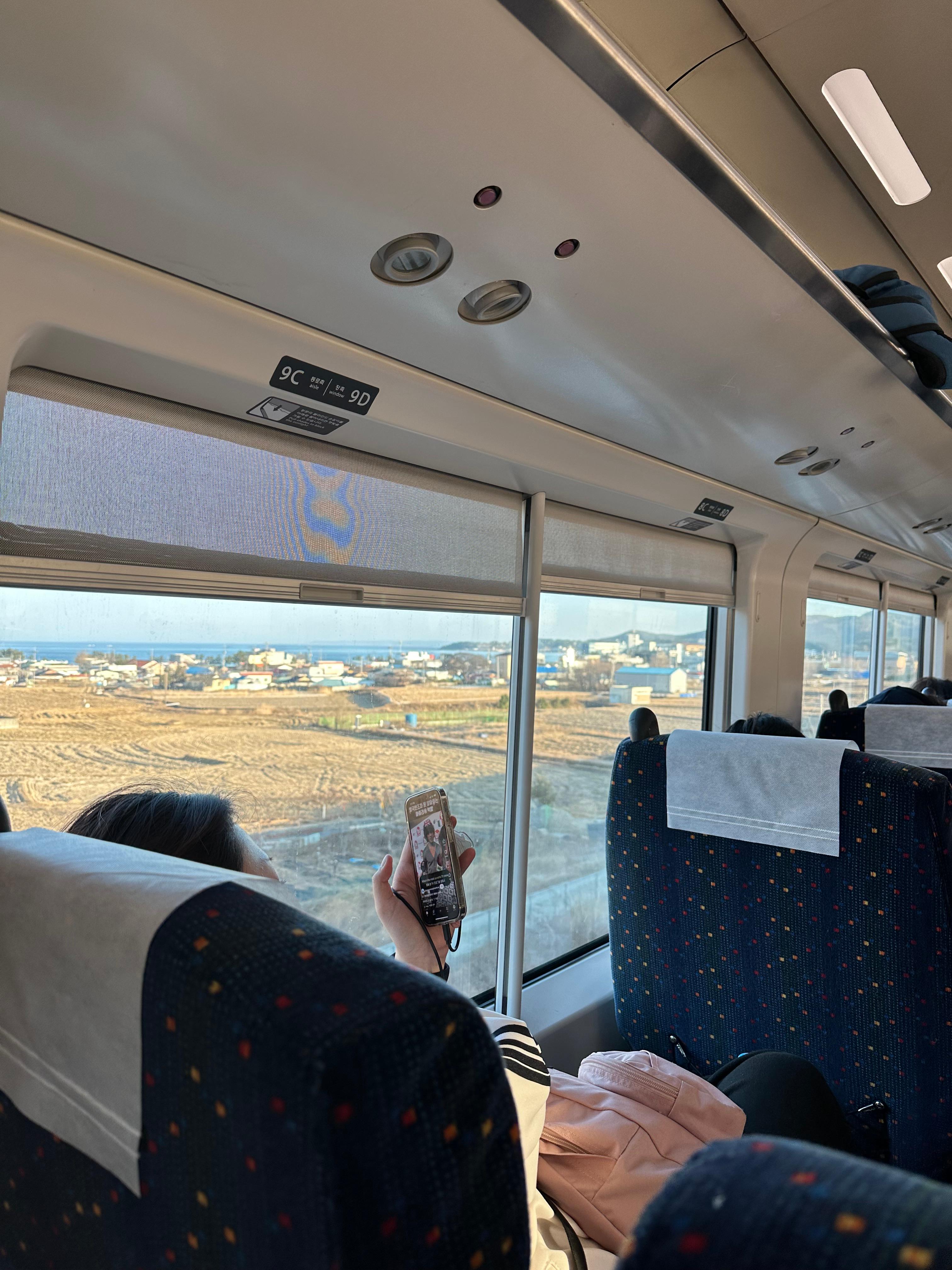 창가쪽에 앉아서 동해선의 바다 구간을 보고 싶었는데요. 기차 예매도 늦게 했고 하루에 왕복 4회밖에 죽변역에서 다니지 않은 누리로 열차라 그런가 예매가 쉽지 않았습니다. 통로측 좌석도 정말 간신히 구했는데요.