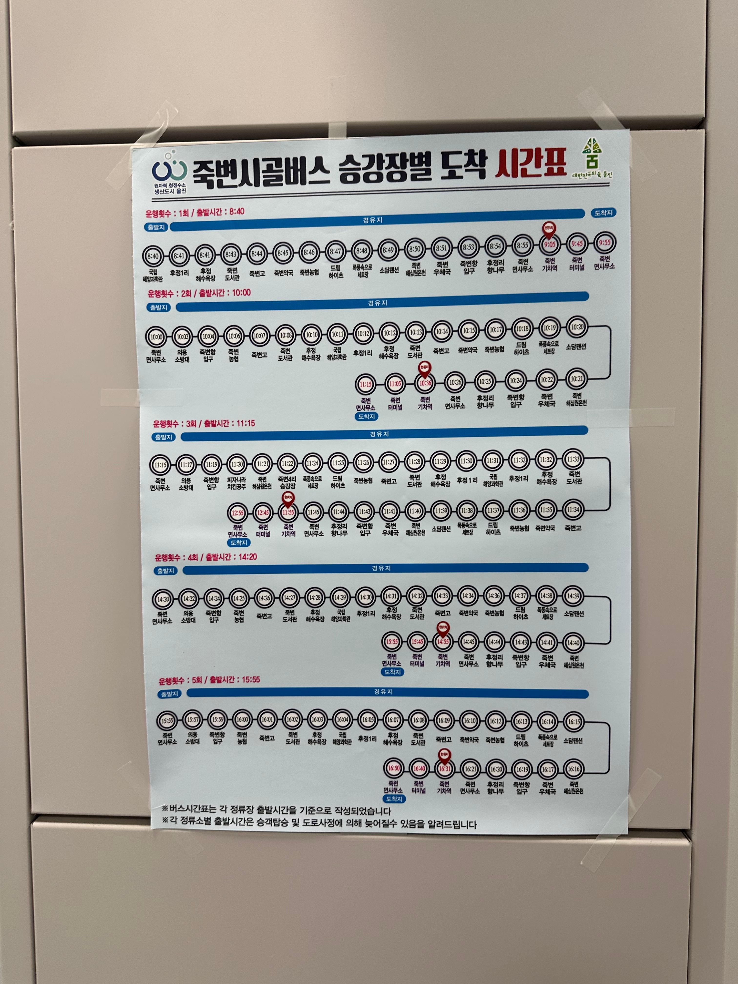 죽변역 한쪽에는 죽변시골버스 승강장별 도착 시간표가 있는데요. 사람이 많지 않다보니 기차 시간에 맞춰서 시골버스가 운행하고 있었습니다. 시내버스도 마을버스도 아닌 시골버스라는 이름을 들으니까 죽변역 주위는 정말 작은 시골 느낌인 것 같습니다. 하지만 스카이레일도 있고 해수욕장도, 폭풍속으로 드라마 촬영지까지 있는 것을 보면 유명한 지역처럼 느껴지는데요. 그와 함께 우리나라가 서울을 제외한 다른 지자체는 시골 느낌과 함께 작다는 것을 다시 한번 느끼게됩니다.