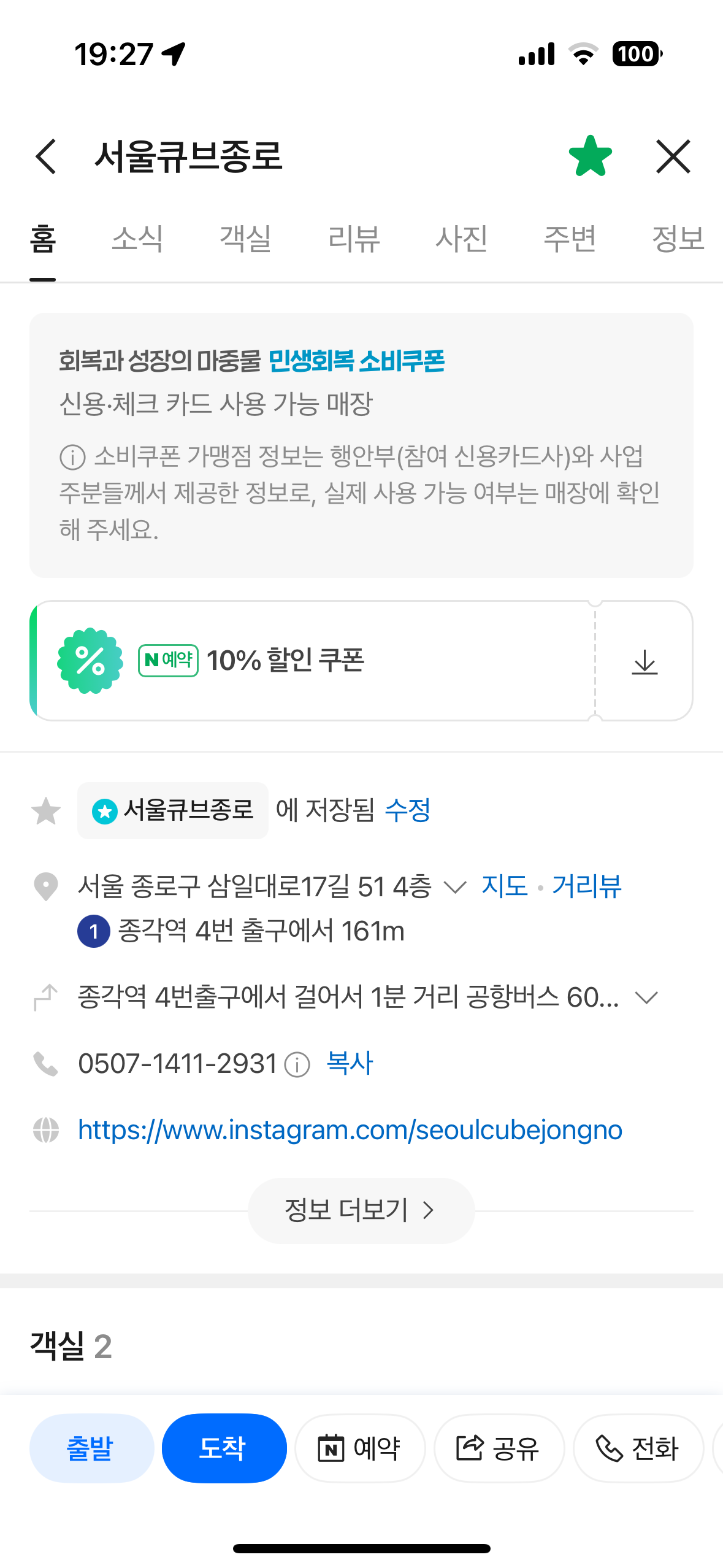 - 네이버 예약 시 10% 할인 쿠폰을 적용받아 예약할 수 있습니다.