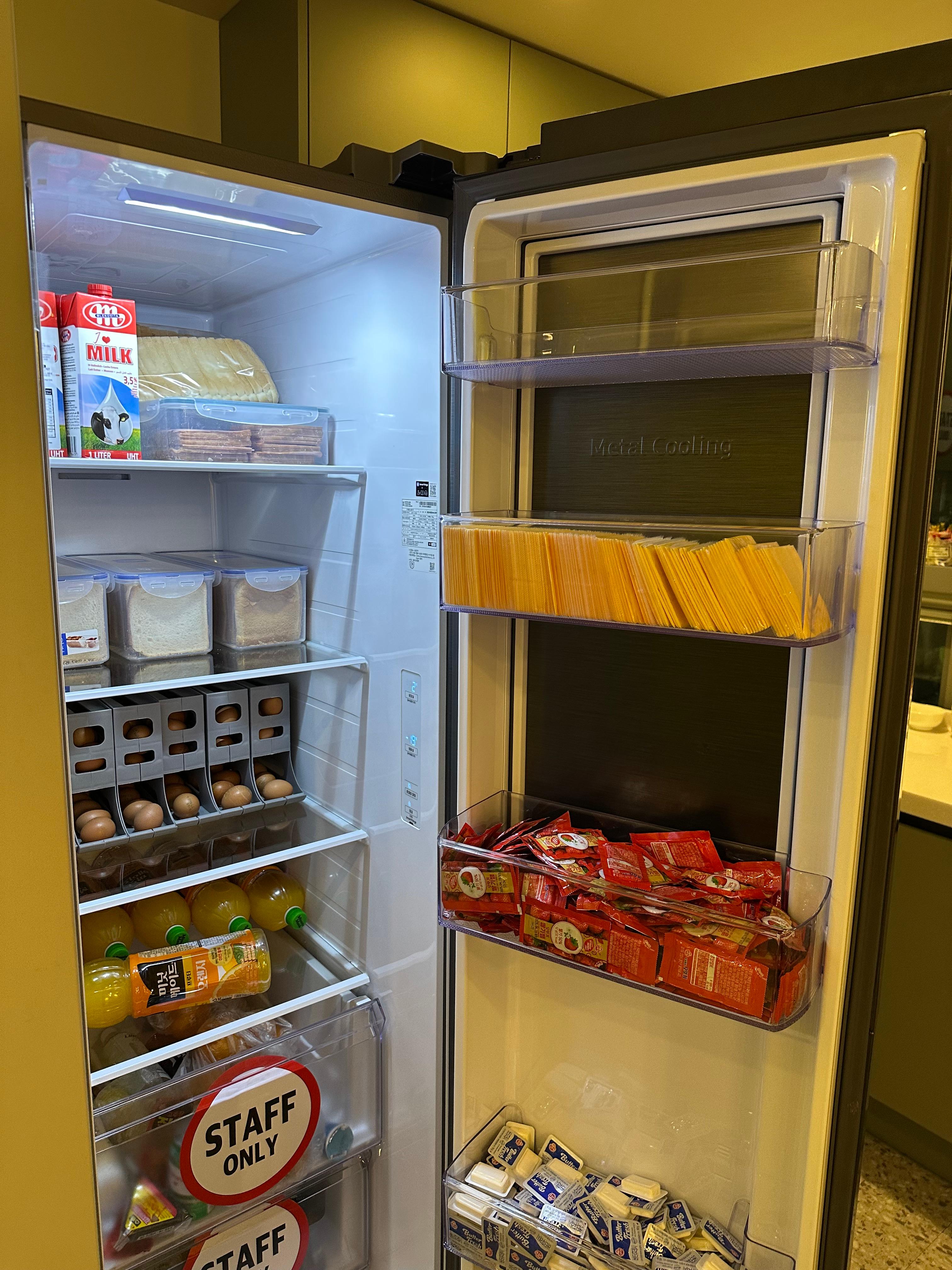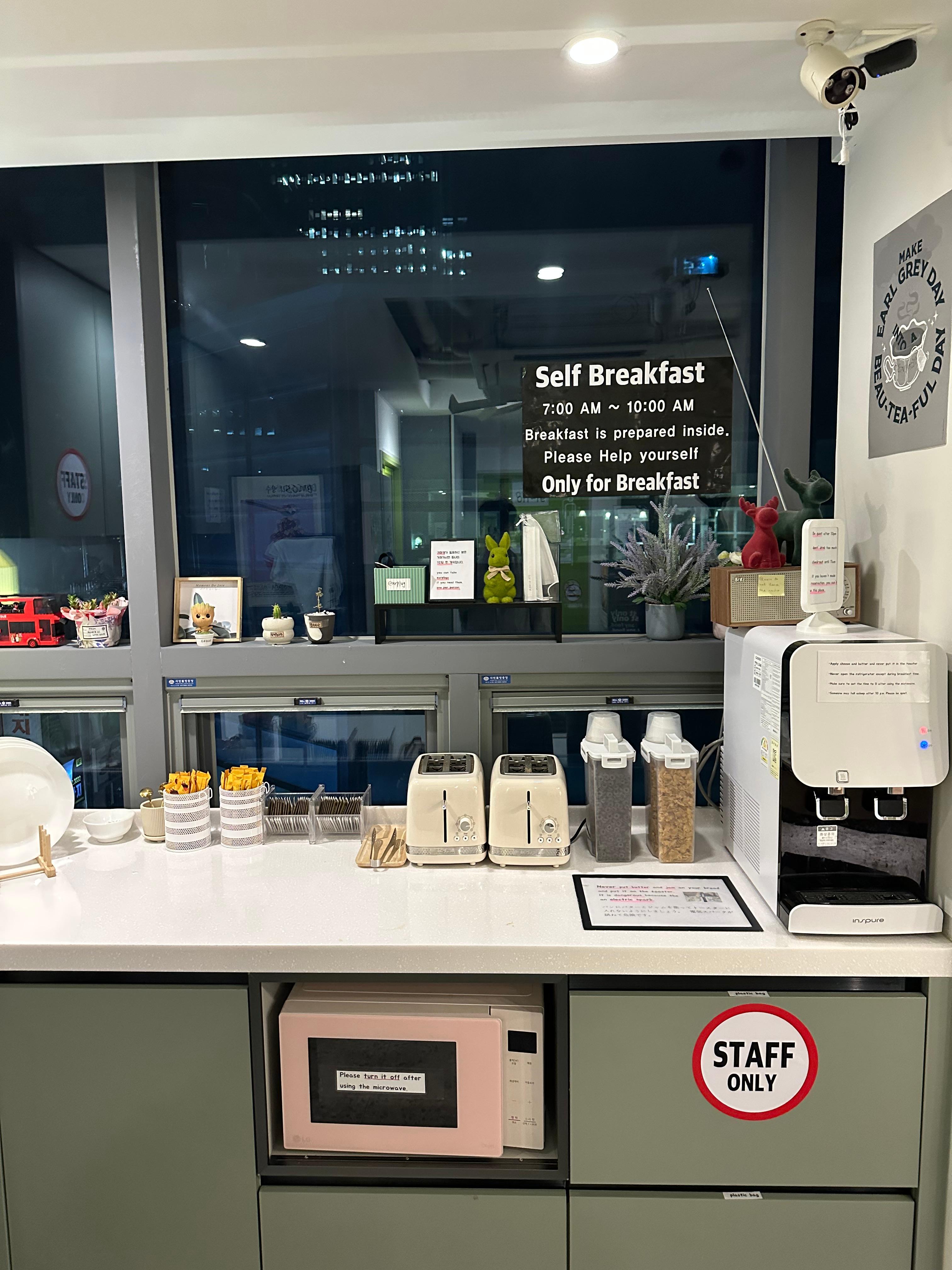 종각역에서 청량리역까지는 10분정도 걸리는 거리였는데요. 씻고 나서 체크아웃 하려는데 시간이 조금 남아서 가볍게 조식을 먹었습니다. 서울종로큐브에서는 간단하게 우유에 시리얼을 먹을 수 있었습니다. 그 외에 토스트, 식빵, 계란, 오렌지쥬스를 먹을 수 있었는데요. 냉장고 열여보니 토스트 하나를 먹더라도 정말 푸짐하게 먹을 수 있었습니다. 딸기잼과 치즈, 계란까지 정말 푸짐하게 먹을 수 있었는데요. 저는 시간이 그렇게 많지 않아 가볍게 시리얼에 우유를 먹었습니다. 종각역에서 청량리역까지는 멀지는 않지만 그래도 늦지 않게 가야했기에 얼릉 시리얼을 먹고 체크아웃을 했습니다.