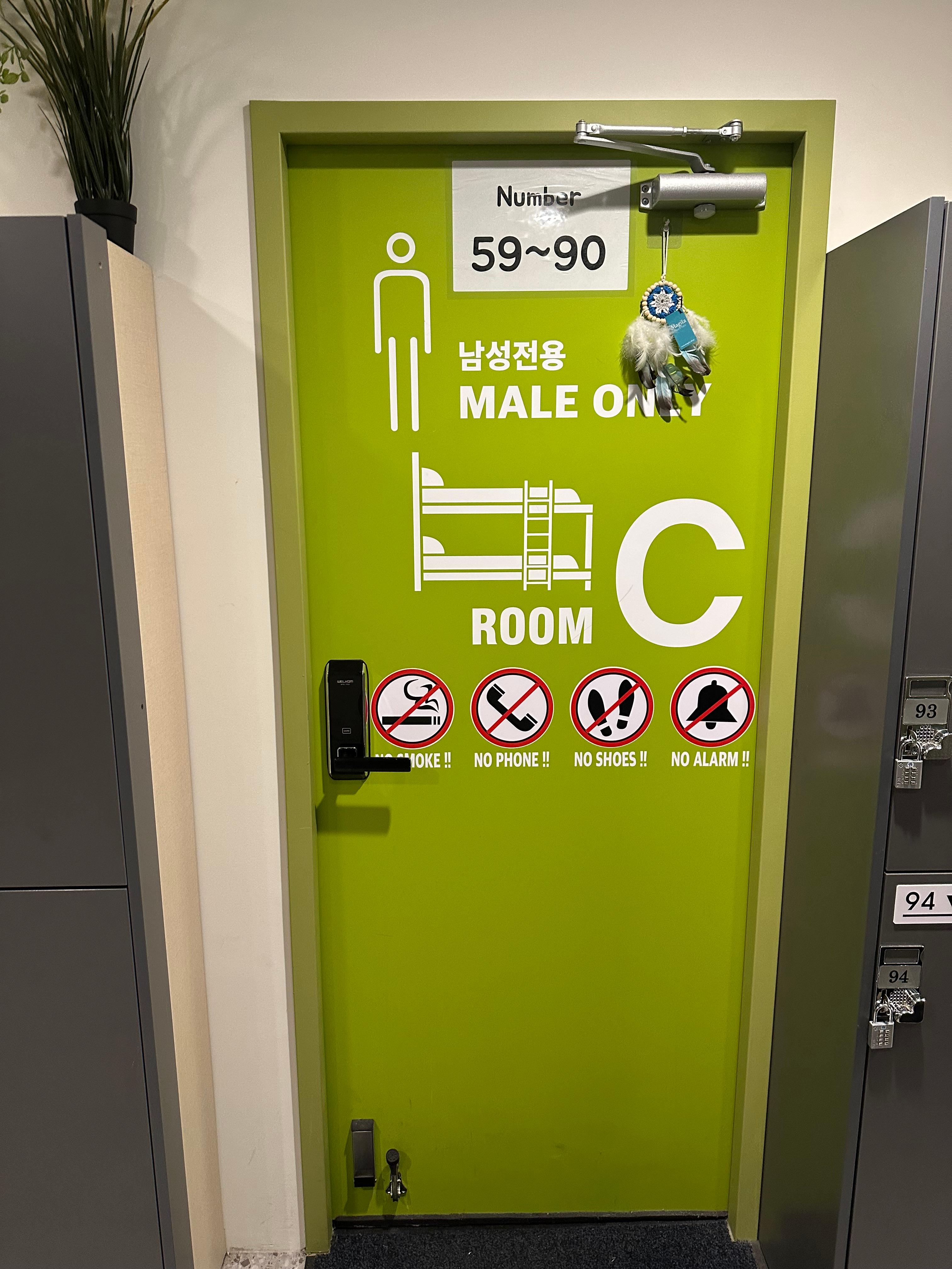 제가 배정받은 캡슐은 68번이었는데요. 한 방에 머무르는 여러명의 게스트들이 머무르는 것을 볼 수 있습니다. 59번부터 90번이니까 대략 30명 가까이 머무르는 것을 예측할 수 있었습니다. 아무튼 제가 배정받은 캡슐번호를 비교해보니까 저는 C룸에서 머무르게 되었습니다. 저번과는 다른 방이었는데요. 방옆에는 자물쇠 형태의 락커도 있어서 짐 보관을 안전하게 할 수 있었습니다. 서울종로큐브 게스트하우스의 장점이자 단점으로 볼 수 있는 것은 외국인이 정말 많이 이용한다는것인데요. 서울이 아니더라도 부산만 보더라도 외국인이 많이 오기 때문에 더 그런것 같습니다. 서울과 부산 모두 외국인들이 관광하기에 너무 좋은 지역입니다.