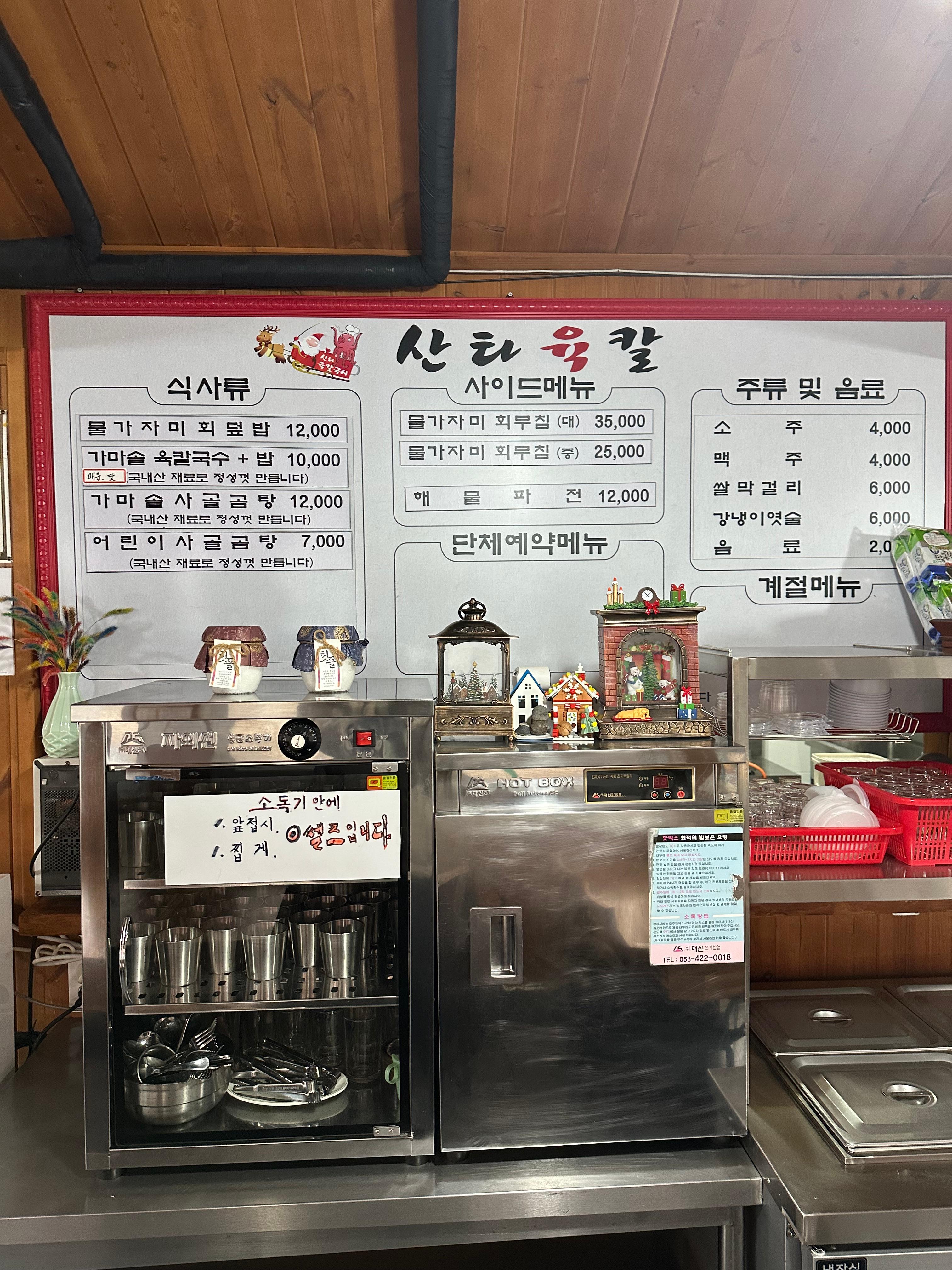 ft. 산타육칼, 산타육칼 대표메뉴, 산타육칼 육칼국수, 분천산타마을 맛집, 분천산타마을 산타육칼 맛집 후기, 산타육칼 메뉴, 분천산타마을 산타육칼 영업시간, 분천역에서 산타육칼 도보 이동시간, 분천산타마을 겨울 맛집, 분천산타마을 어린이 사골곰탕, 분천산타마을 산타육칼 가마솥 사골곰탕, 산타육칼 물가자미 회무침, 분천산타마을 산타육칼 주차