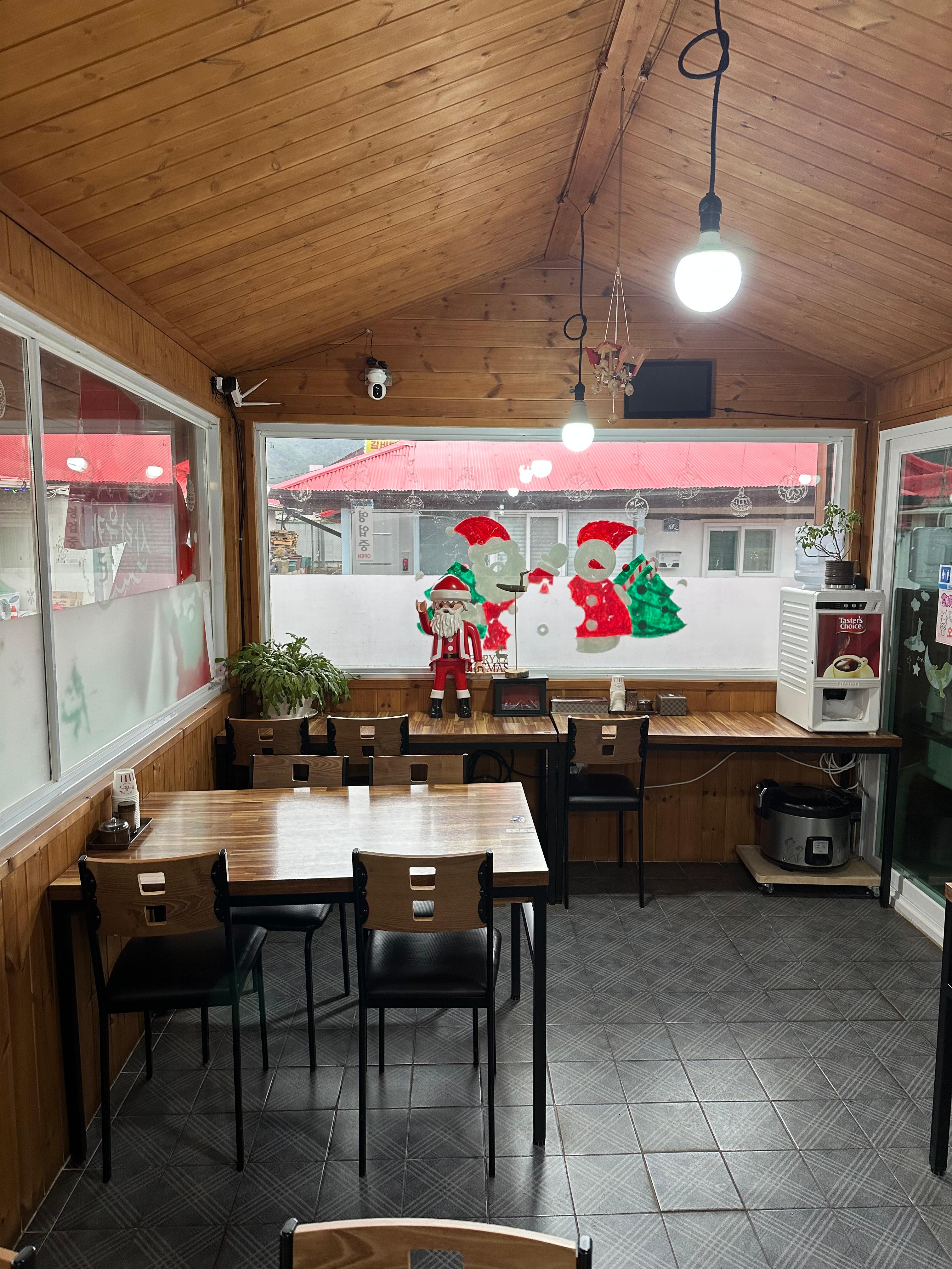 저는 산타육칼에서 식사를 마치고 이곳에서 차 한잔을 마셨습니다. 이후 포스팅에서 하이디의 다락방 카페도 전해드리도록 하겠습니다. 편의점은 없는 분천산타마을이지만 카페는 하이디의 다락방 말고도 1-2개가 있었고 맛집도 많이는 없지만 분천역 주위로 3-4여곳 볼 수 있었습니다. 봉덕시장, 산타맛집, 분이네, 봉덕식당, 감자식당이 있었습니다. 카페는 하이디의 다락방 외에 분천커피방앗간과 산타마을 카페 사랑채, 산타빌리지 황장군이라고 해서 스타벅스, 할리스, 투썸플레이스가 무인으로 운영되고 있었습니다.