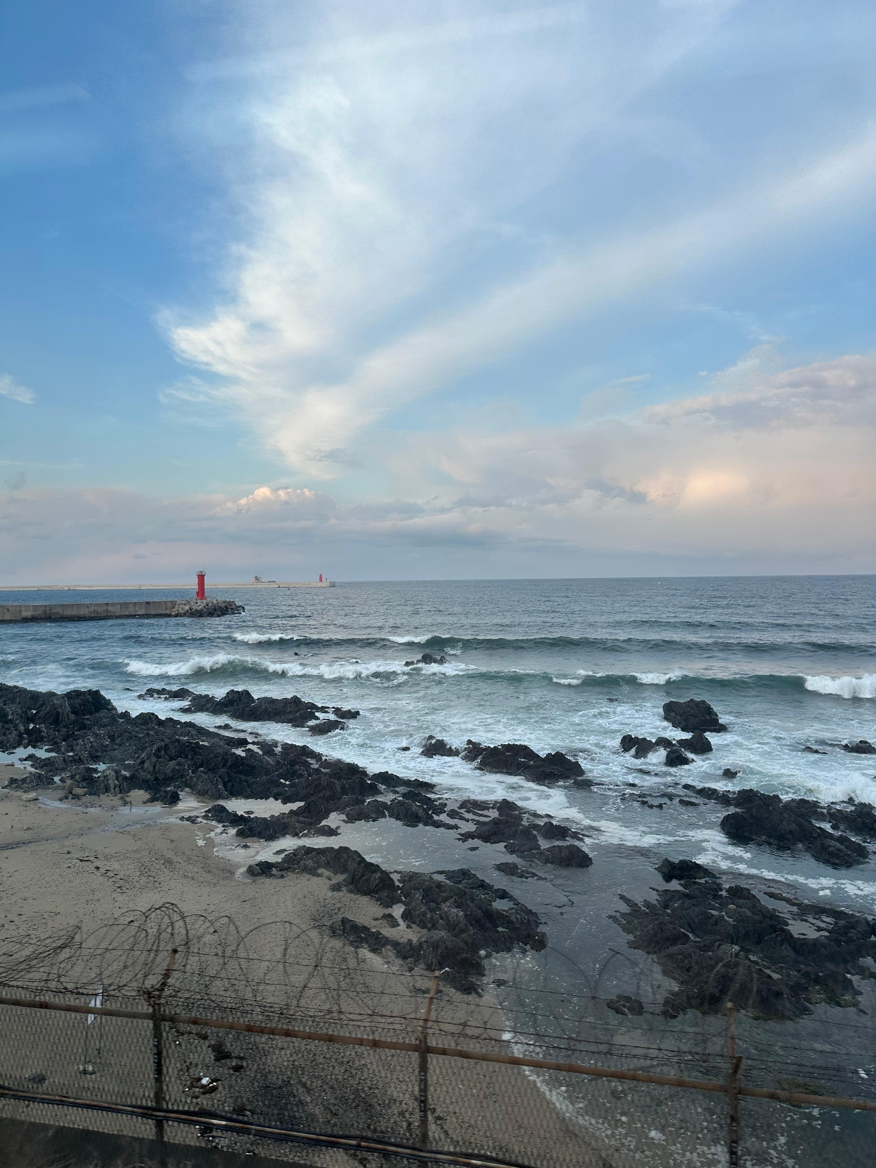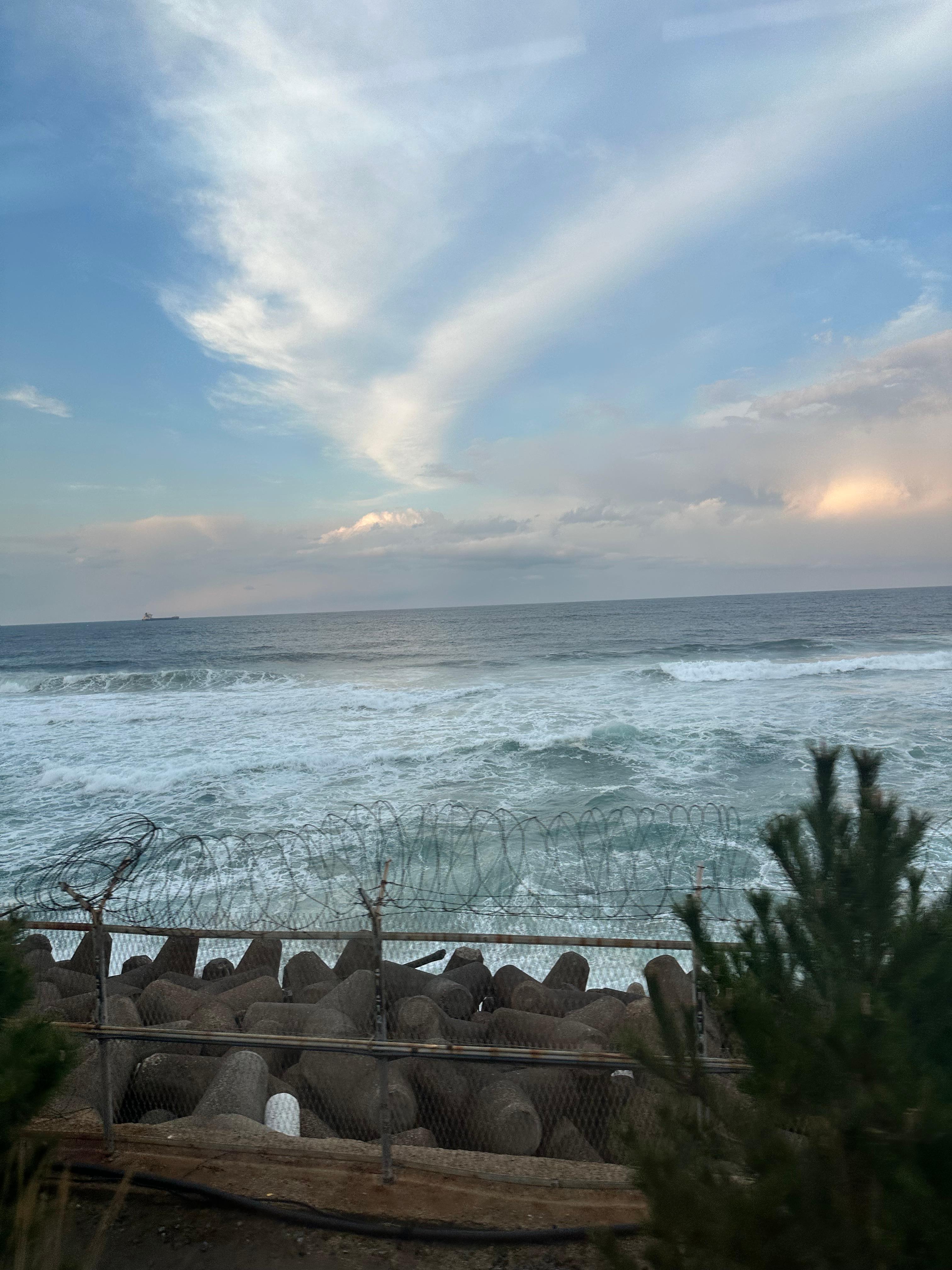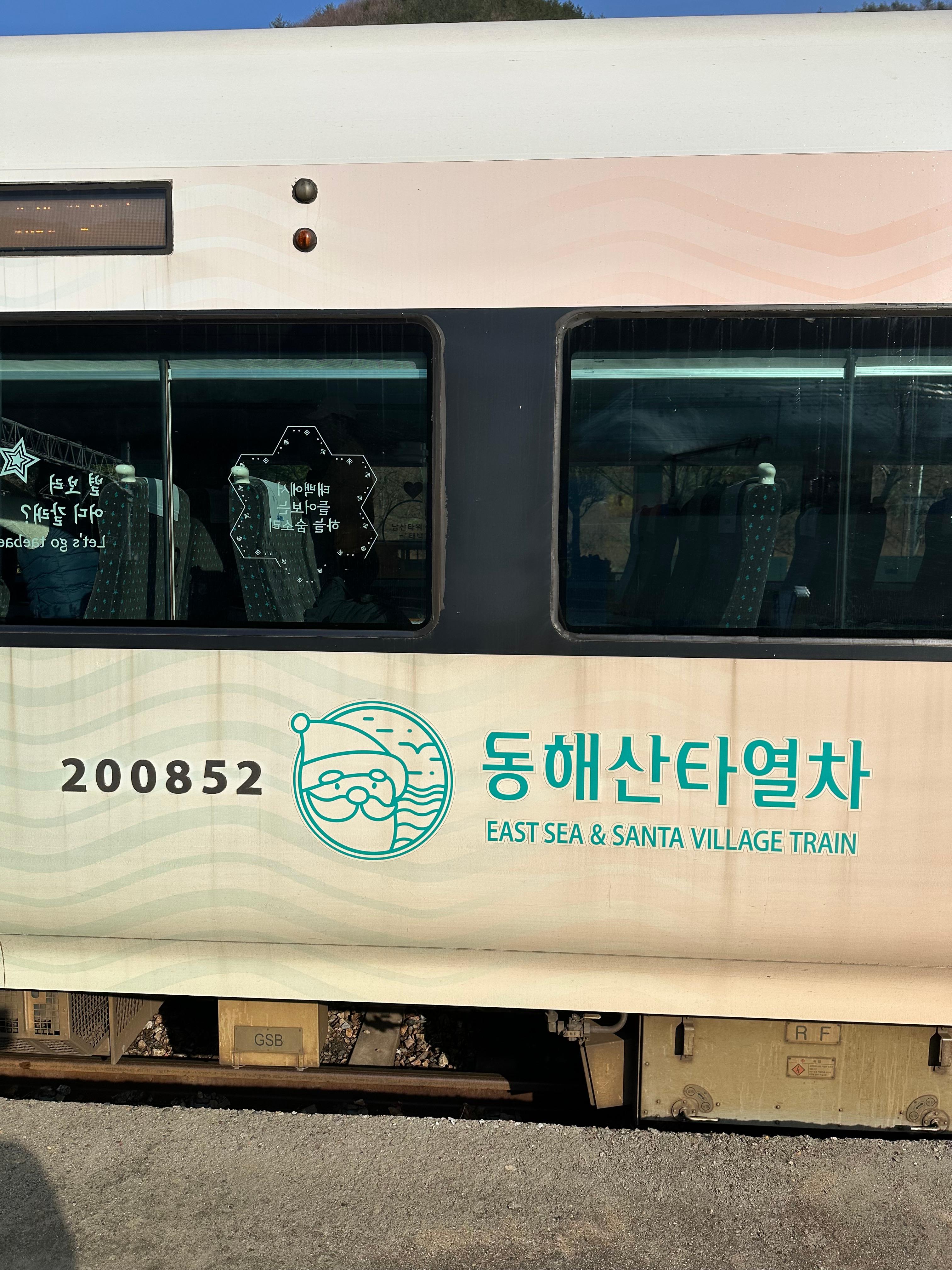 잠에서 깨다보니 동해역을 지나 정동진 바다구간을 지나고 있었습니다. 동해역 부근이 바다와 가까워서 더 아름다웠는데 너무 피곤하고 몸이 좋지 않아 잠이들어버렸습니다. 앞서 포스팅에서 바다열차 포스팅을 전해드렸지만 동해산타열차라는 관광열차를 타고 동해선 바다 구간을 달리는 더 스페셜한 느낌을 그대로 받았습니다.