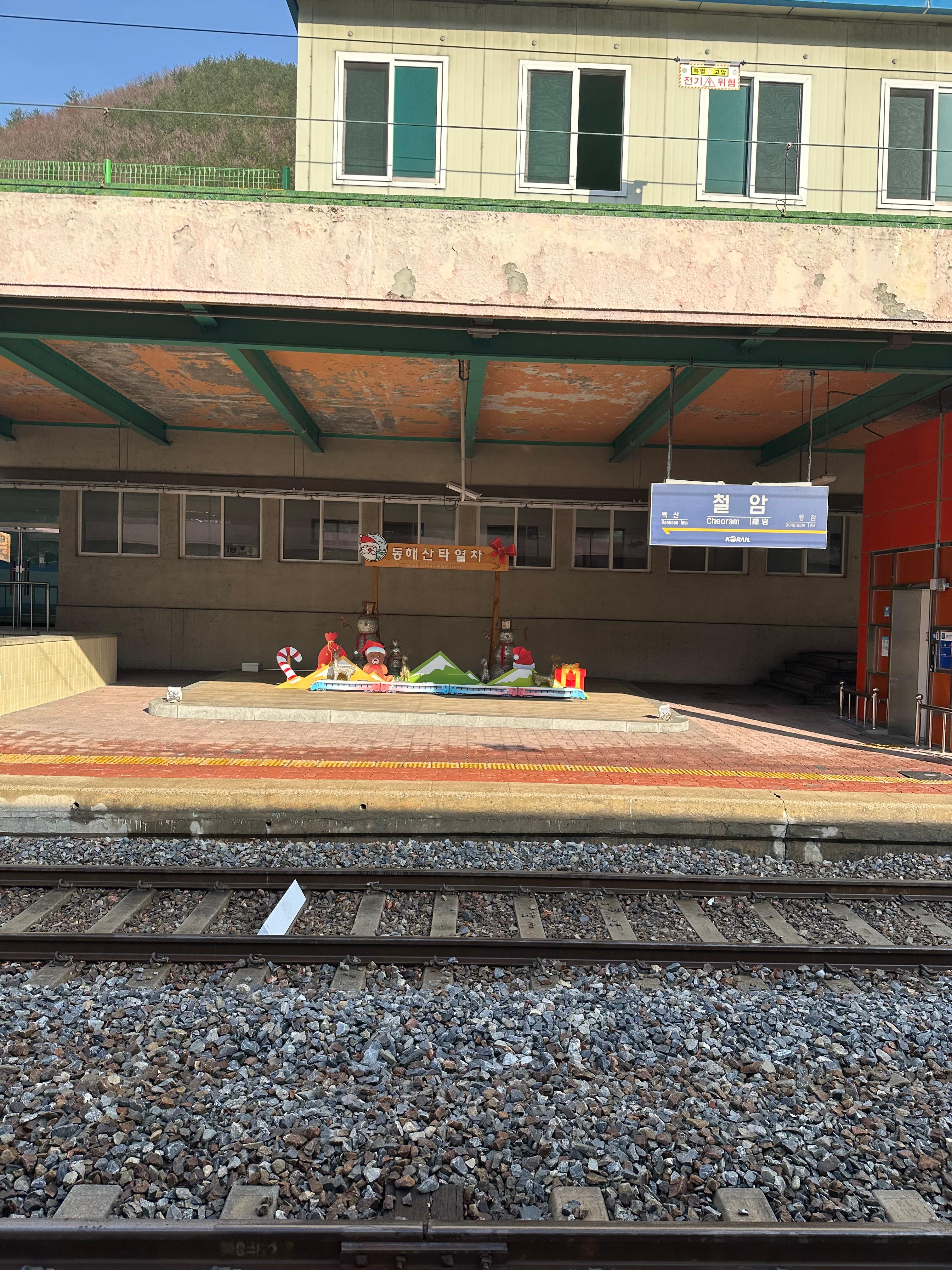그나마 백두대간협곡열차 V-Train과 동해산타열차를 등장하면서 저와 같이 여행을 하는 사람들이 이렇게 철암역을 잠시 들르는 정도였습니다. 원래는 철암역까지 백두대간 협곡열차를 타려고 했는데요. 백두대간협곡열차를 타고 철암역 도착 후 동해산타열차 탑승까지 대기시간이 많이 길었습니다. 하지만 지도를 보니까 주변에 놀거리도 많이 없어서 고민한 끝에 분천역을 기준으로 분천역에서 쉬다가 오게 되었는데요. 어떻게 보면 잘 선택한 것 같습니다. 눈만 오지않았다면 1시간 정도 남는 시간동안 철암탄광역사촌도 봤을텐데 그 부분은 아쉬운 것 같습니다.