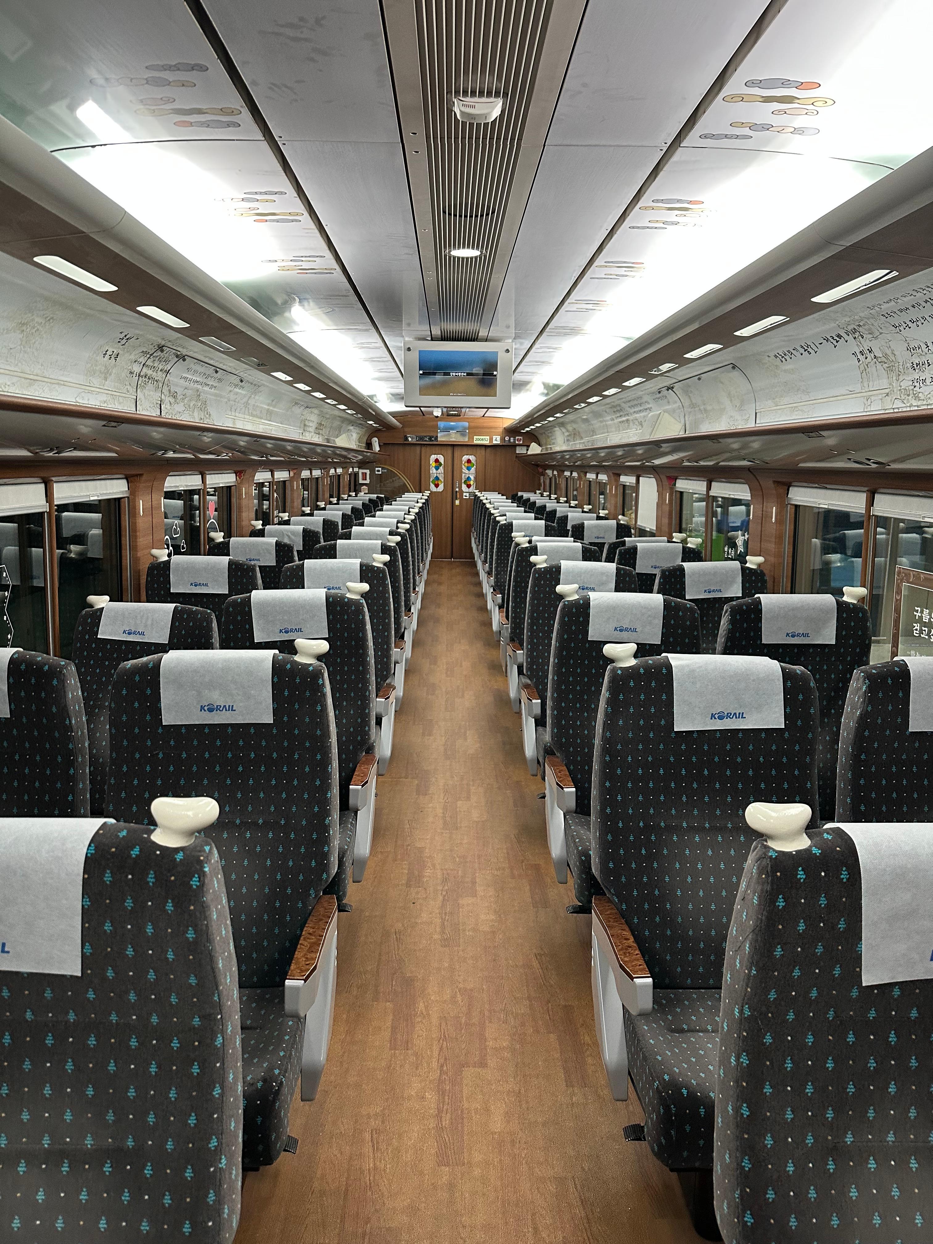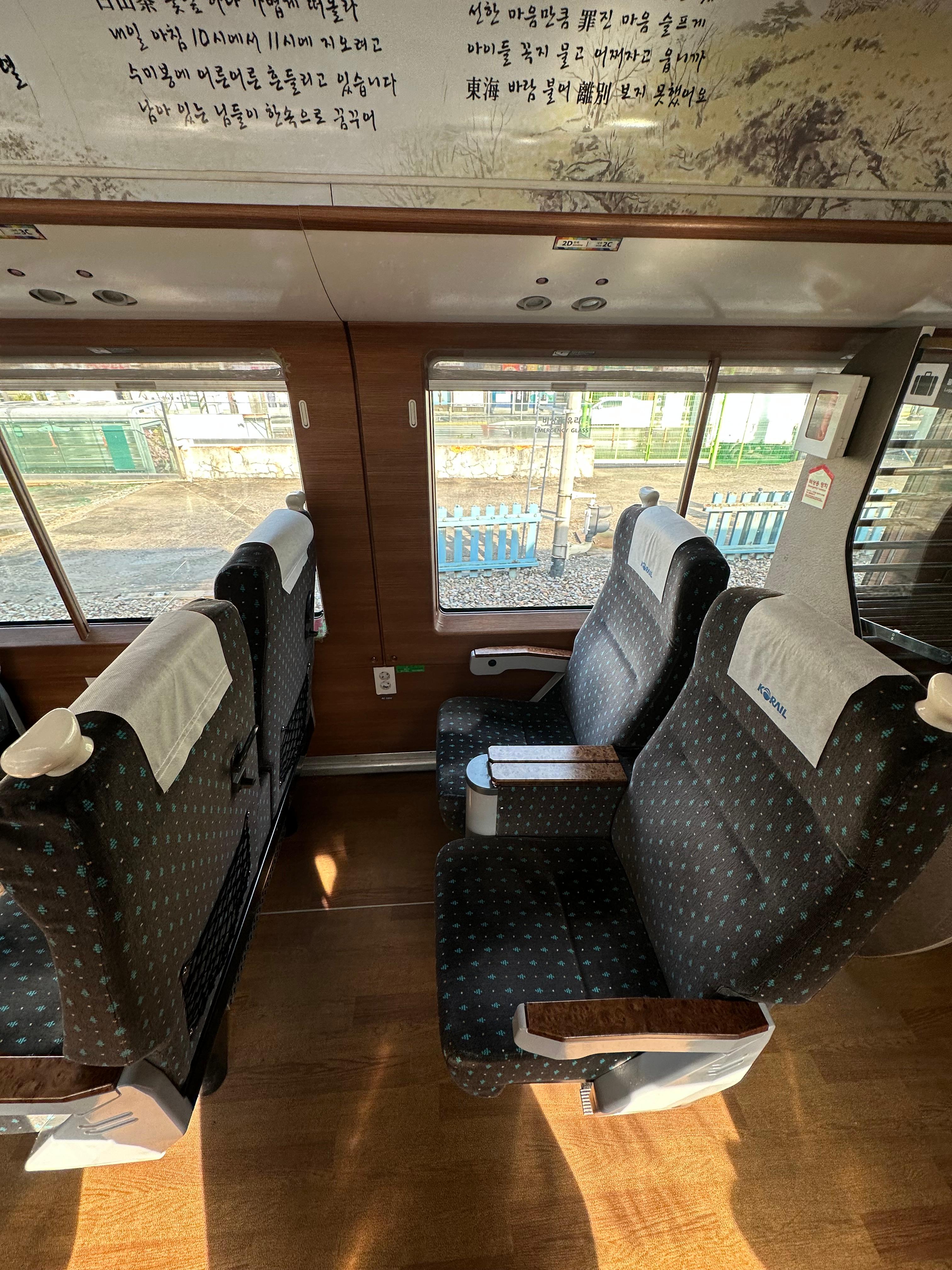 저는 동해산타열차가 된 누리로 열차에 탑승했습니다. 누리로 좌석 시트 열차이지만 누리로가 아닌듯한 느낌을 받았습니다. 누리로가 아닌 좀더 세련된 고급 열차를 타는 느낌이었습니다.