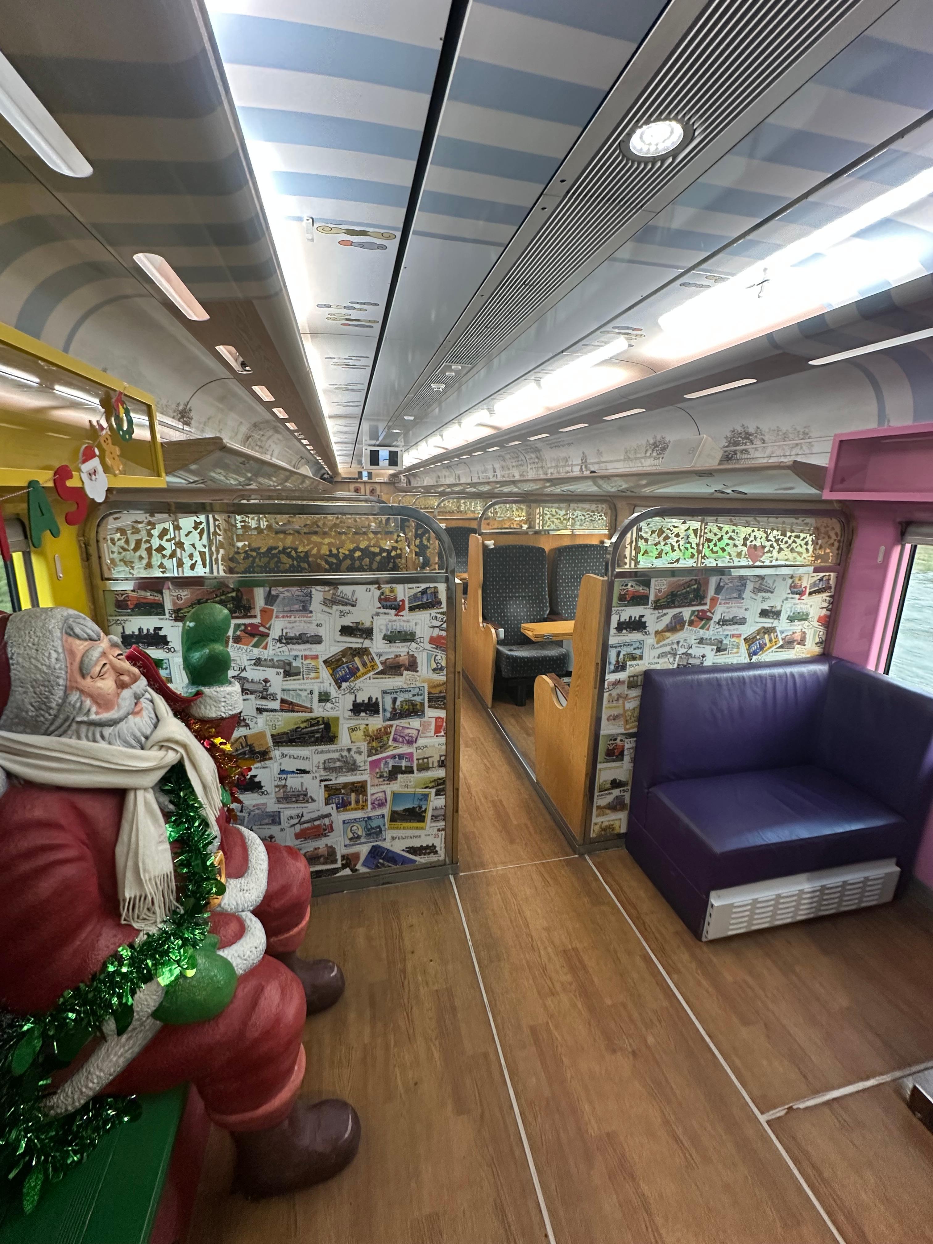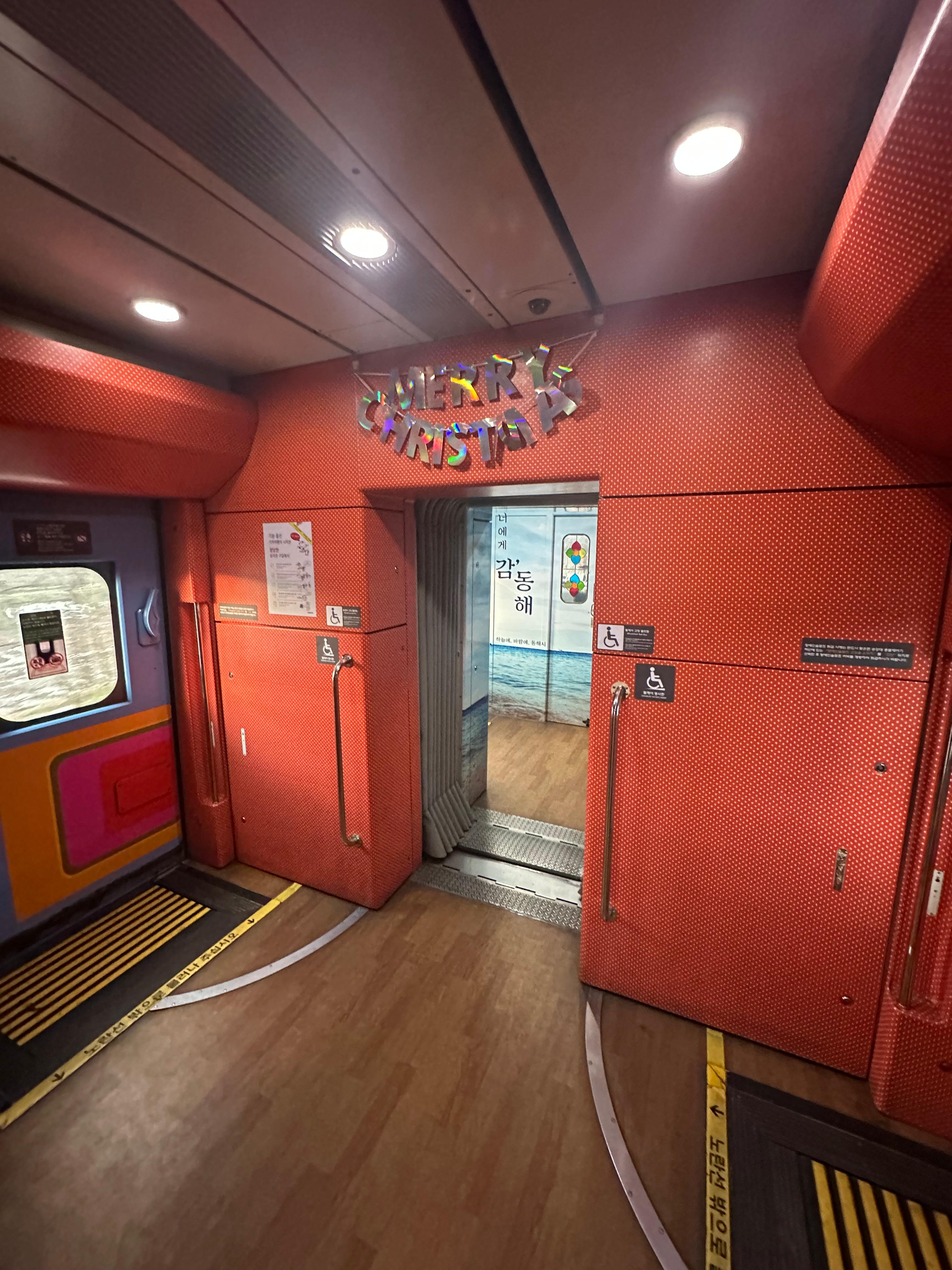 동해산타열차라는 이름처럼 일부 객실과 객실 통로에는 크리스마스와 산타 분위기를 느낄 수 있도록 전시가 되어있는 모습도 볼 수있습니다. 크리스마스와 산타를 이용하여 만든 관광열차답게 객실 통로나 복도에 크리스마스와 산타를 상징하는 붉은색으로되어있는 것을 볼 수 있습니다. 저는 분천산타마을을 영주역에서 출발해서 갔지만 강원도 강릉과 동해 여행을 하는 분들이라면 동해역이나 강릉역에서 동해산타열차를 이용해서 분천역을 가는 것도 방법이라고 생각하며 추천드립니다.
