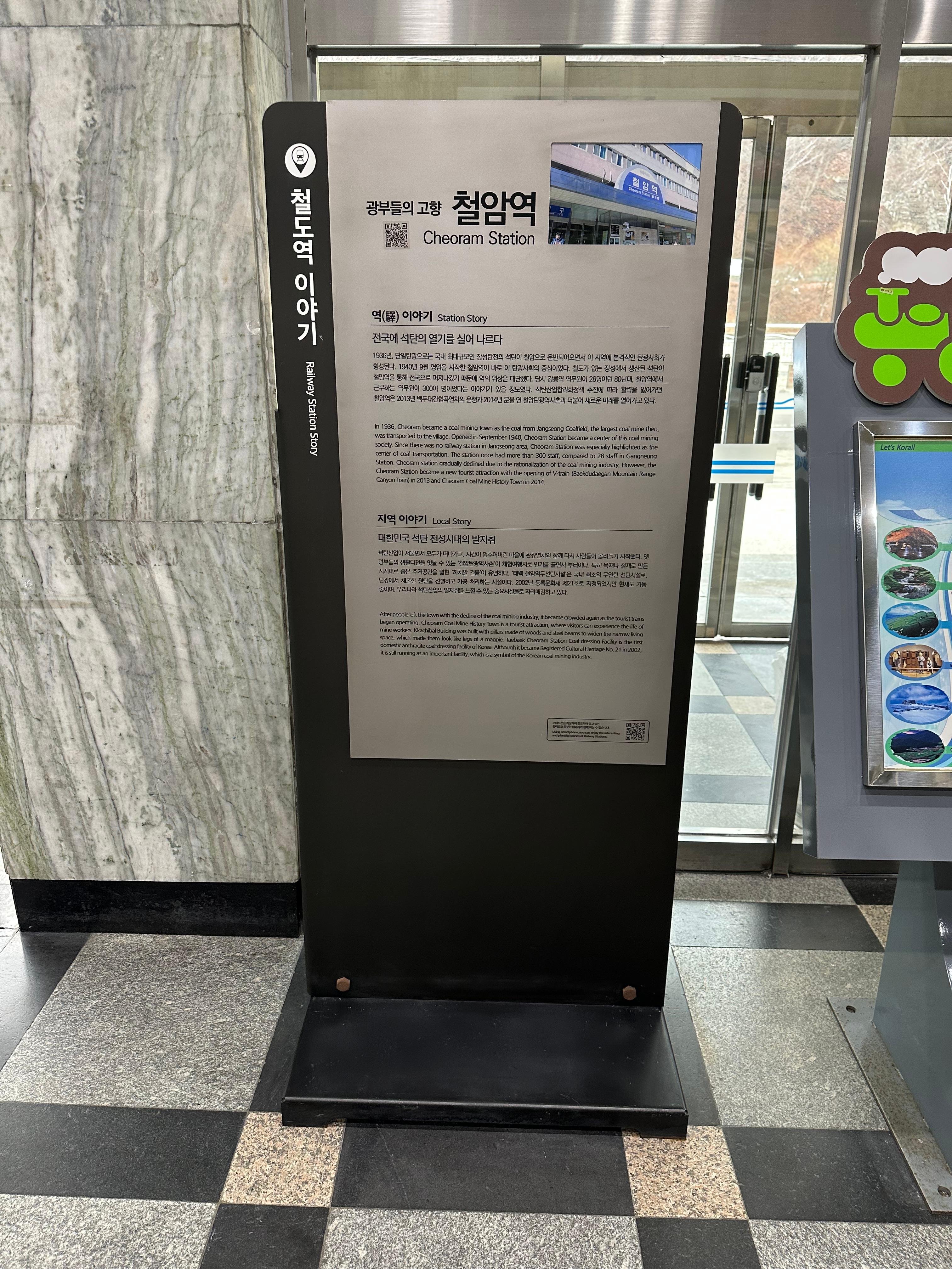 몸이 좋지 못해서 철암탄광역사촌은 가지 못하고 대합실 실내에서 몸을 녹이면서 보내고 있었습니다. 철암역 가신다면 한번 가시면 좋을 것 같습니다. 지도에서 보면 철암탄광역사촌은 철암역에서 5분 이내로 갈 수 있다고 합니다. 당시 철암탄광촌에서 사람들의 생활모습과 7080시대 모습을 볼 수 있습니다.