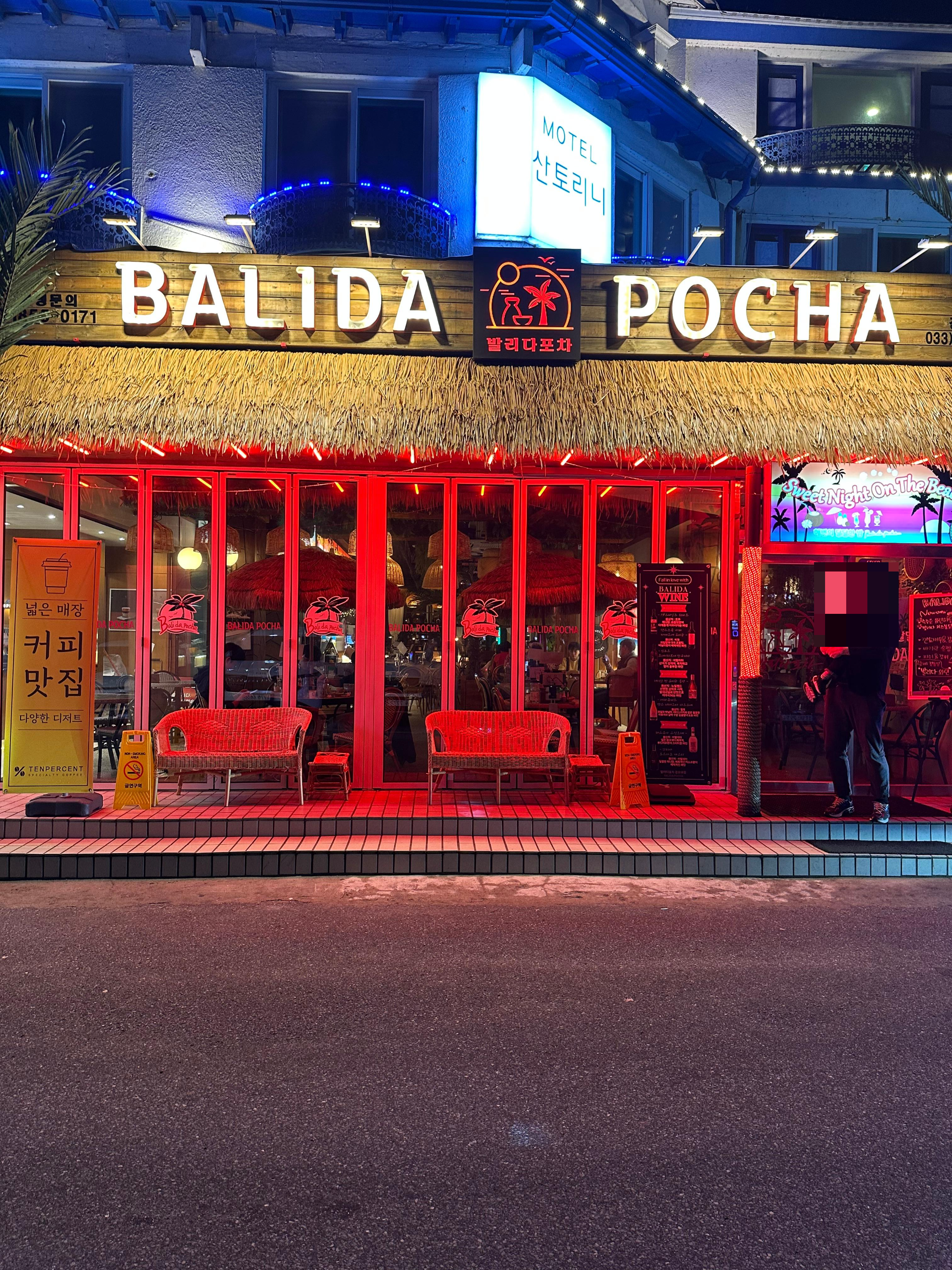 강릉 경포해변 해변 거리를 걷다보니까 발리다포차라는 가게를 발견했습니다. 직접 들어가지는 않았지만 마치 발리에 있는듯한 포차의 모습이었습니다. 안산 대부도 구봉도에도 발리다라는 카페가 있는데요. 마치 발리처럼 인테리어 되어있었습니다. 경포해변에 있는 발리다 카페 역시 그렇습니다. 저는 아직 해외여행을 한번도 가지 않았지만 이렇게 발리의 기분을 간접적으로 느끼는 경험이었습니다.