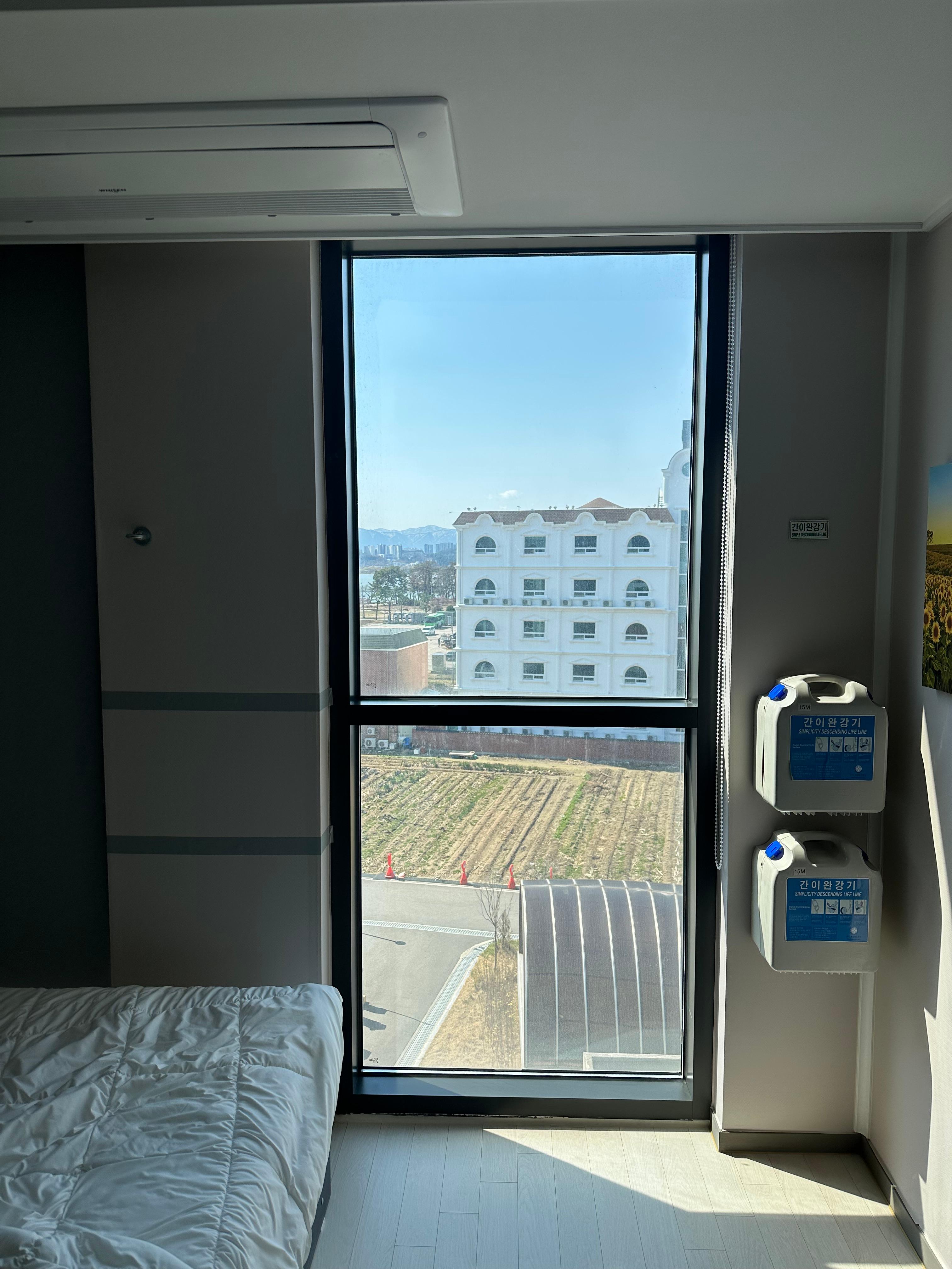 침대는 두명이서 이용하기에 딱 좋구요. 연인끼리 오거나 친구 2명이랑 오면 이용하기에 좋은 것 같습니다. 가족 단위로 와도 좋을 것같지만 평수가 그렇게 넓지가 않아서 2명 이상은 다른 좀 더 큰 숙소를 이용하는 것 같습니다. 하이오션 경포 호텔이 경포호수공원과 경포해변과 5분거리로 가깝지만 제가 이용한 객실은 시티뷰이지만 바다가 완전 안보이는 것도 아니고 반오션뷰라고 할까요? 바다 조금 보이고 시티뷰가 조금 섞인 구조였습니다. 아무튼 당시 7만원에 결제했는데 바다도 보이면서 이정도 크기면 정말 가성비 가격인것 같습니다.
