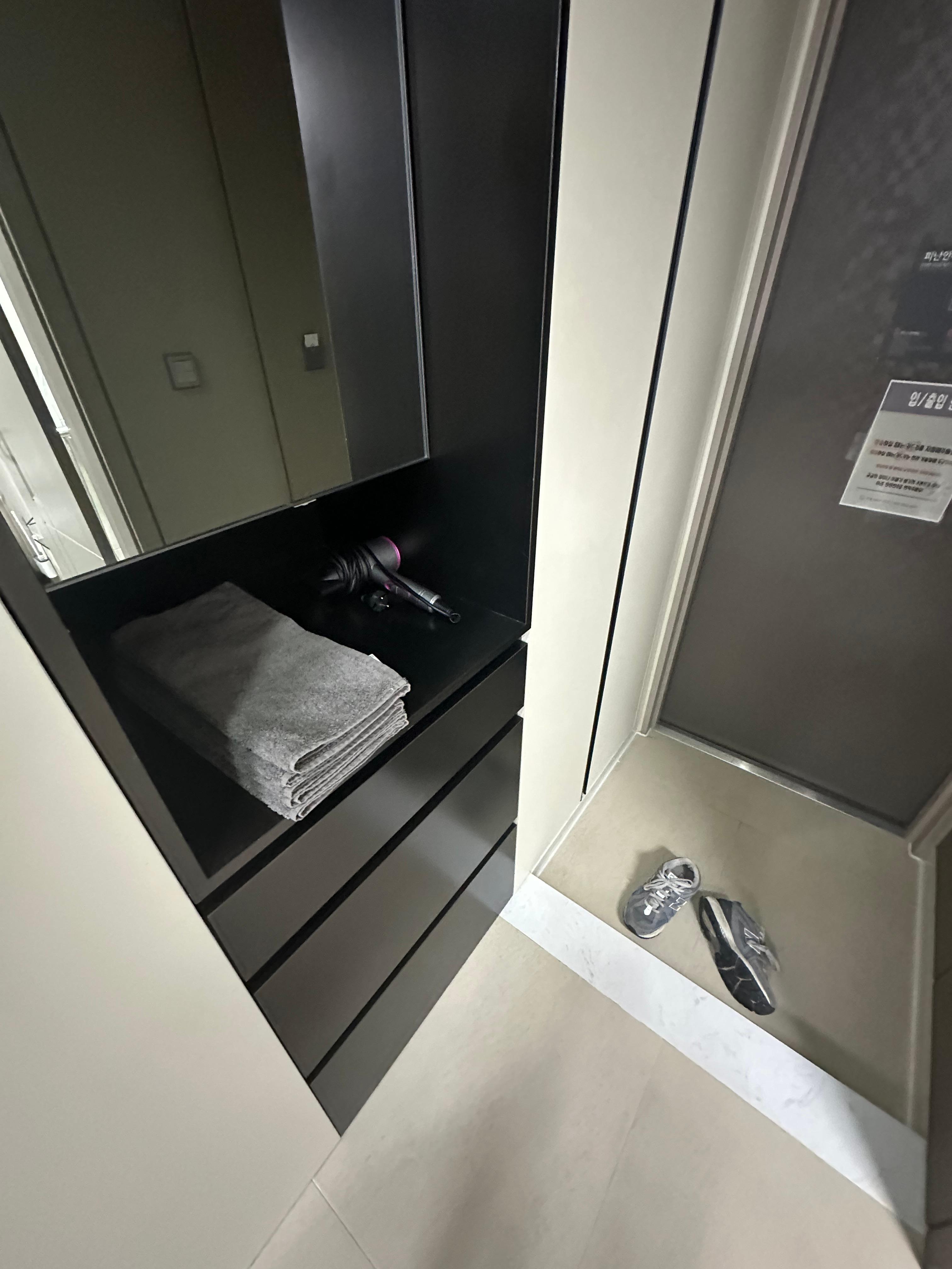 저는 혼자서 이용 하지만 수건도 여유롭게 4장정도 제공되는 것 같습니다. 물론 2인 기준으로 하면 한명당 두장씩 쓰면 좋은 것 같습니다. 하지만 에어비앤비나 일반 숙소 이용하다보면 샤워하고나서 발을 닦는 수건이 필요한데요. 물론 한번 사용한 수건으로 발까지 닦으면 좋지만 개인적으로 샤워하고 나서 발을 닦는 수건도 미리 제공되면 더 좋은 것 같습니다. 또한 의외로 발 수건도 미리 준비가 되어있는 센스있는 숙소도 요즘에는 늘어나는 것 같습니다.