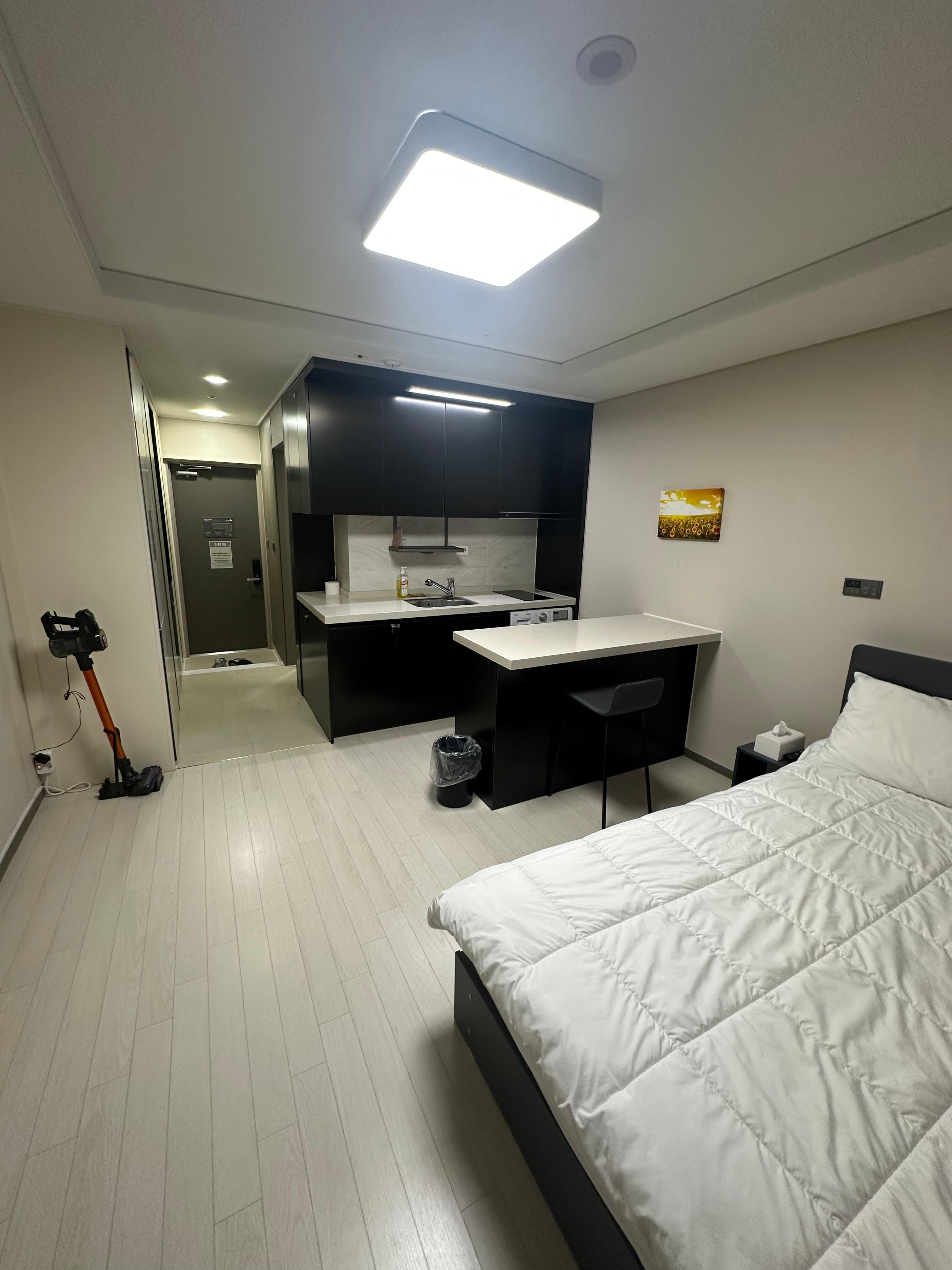 하지만 제가 이용하던 숙소의 경우 호스트가 호텔에 상주하는 것 같지는 않아서 가족단위로 올 경우에는 따로 이불을 1층 프론트나 호스트가 직접 와야 할 것 같은데 이 부분은 에어비앤비 앱에 있는 채팅을 통해 호스트에게 확인 해보아야 할 것 같습니다. 아무튼 호텔이라고 하지만 제가 사는 마리나큐브 오피스텔처럼 생겨가지고 집 분위기가 그대로 느껴집니다. 거기에 청소기까지 있으니까 더 그런 느낌을 받습니다.