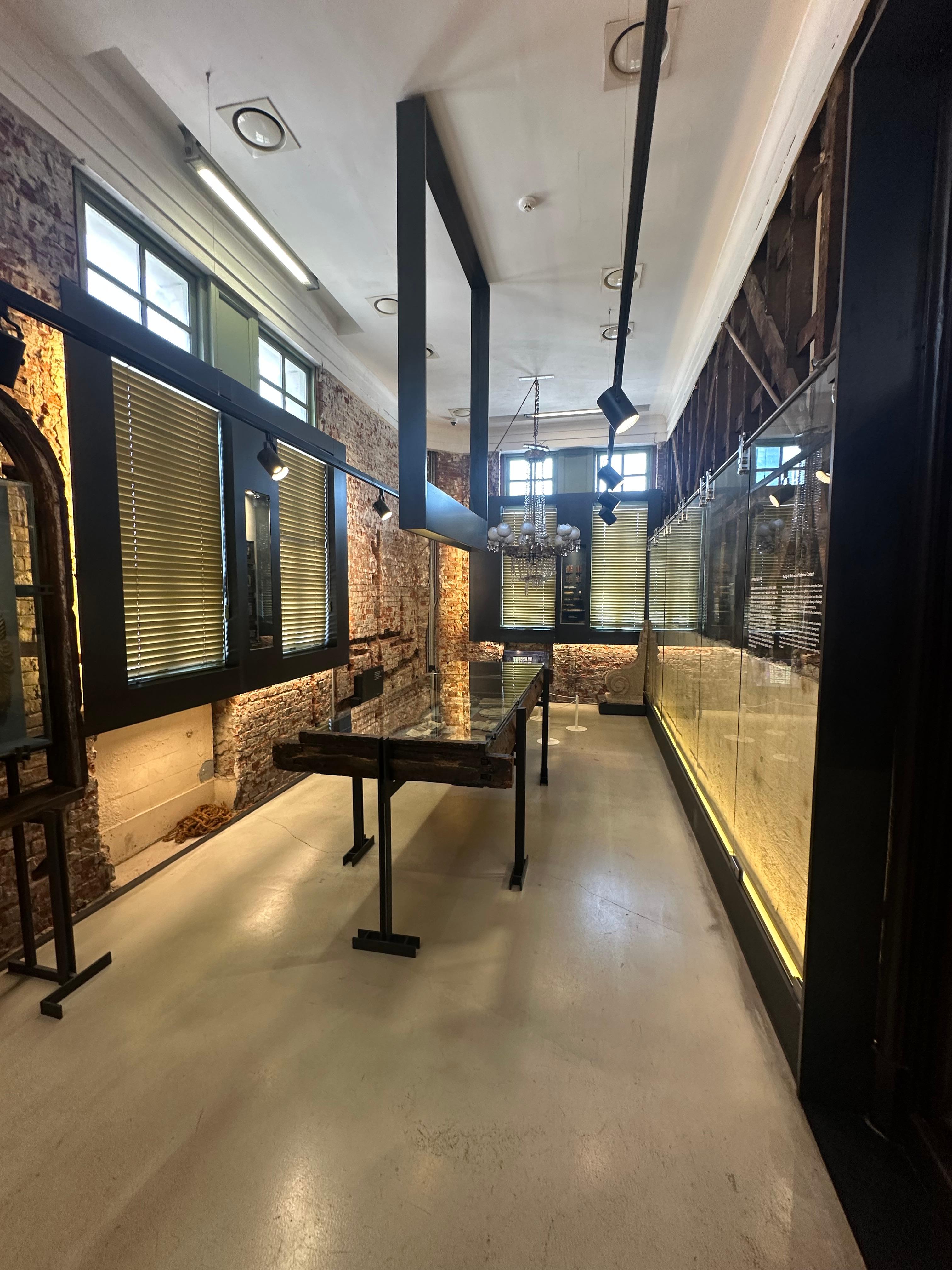 - 두 전시공간 사이에 위치한 목구조체는 건립 당시 칸막이벽의 일부