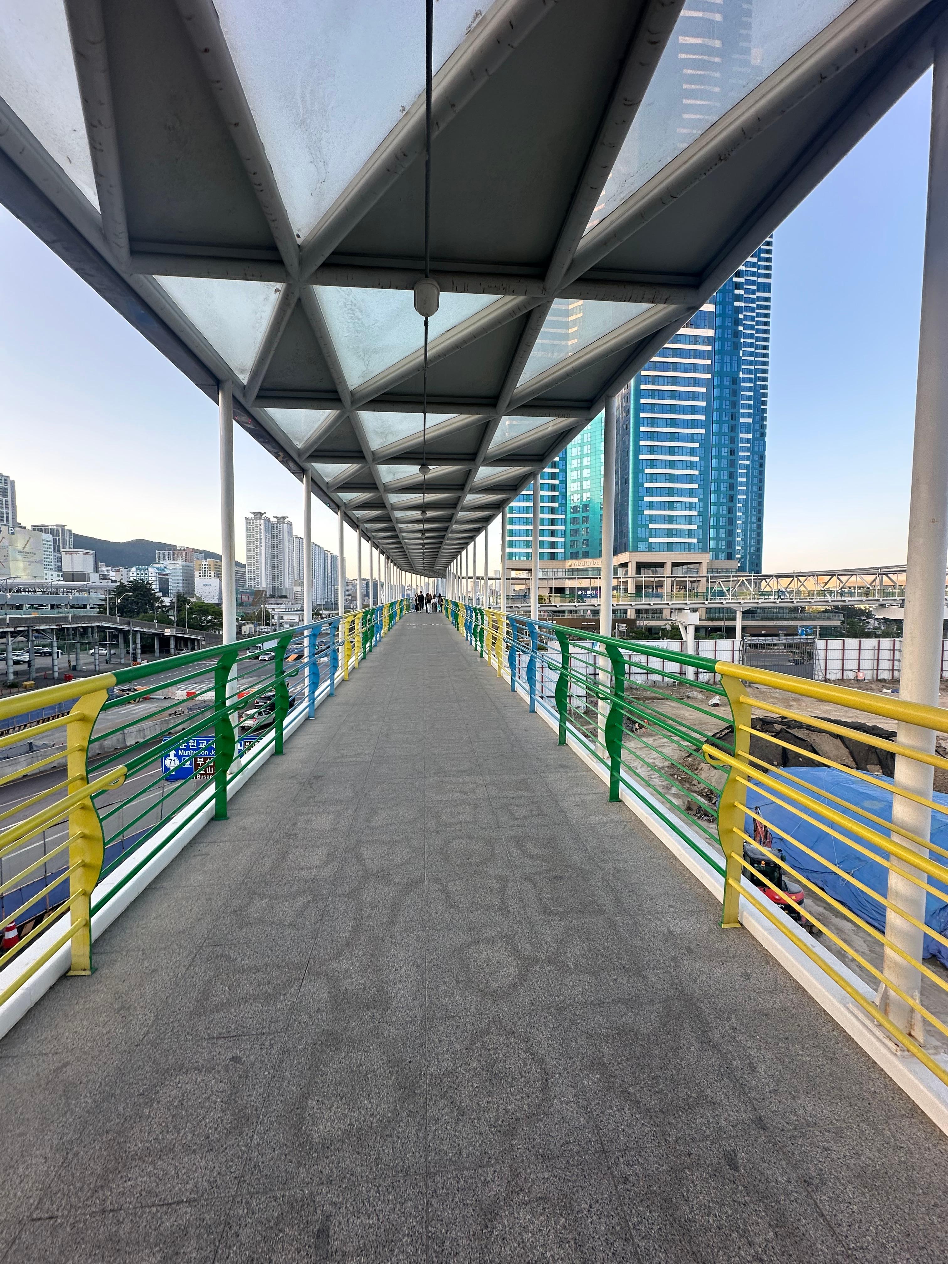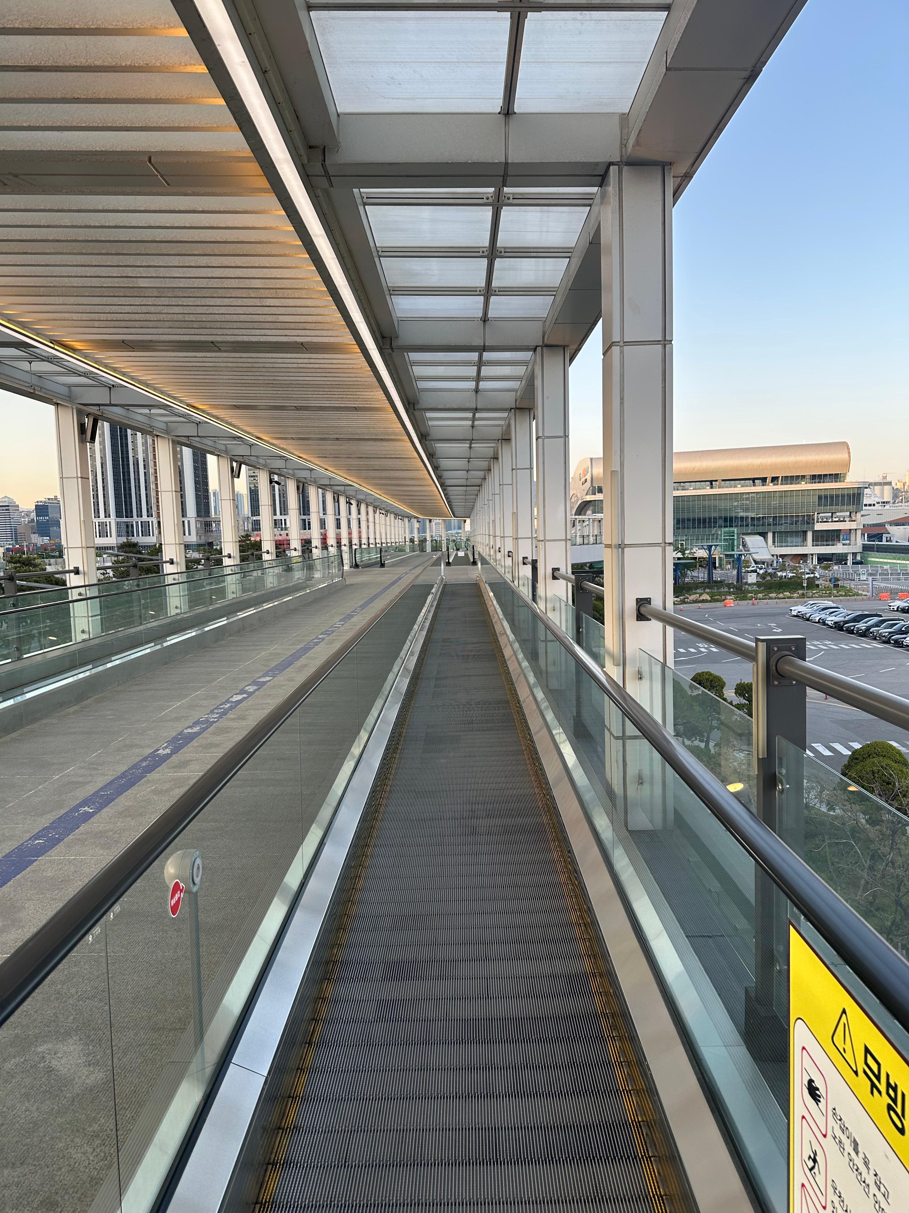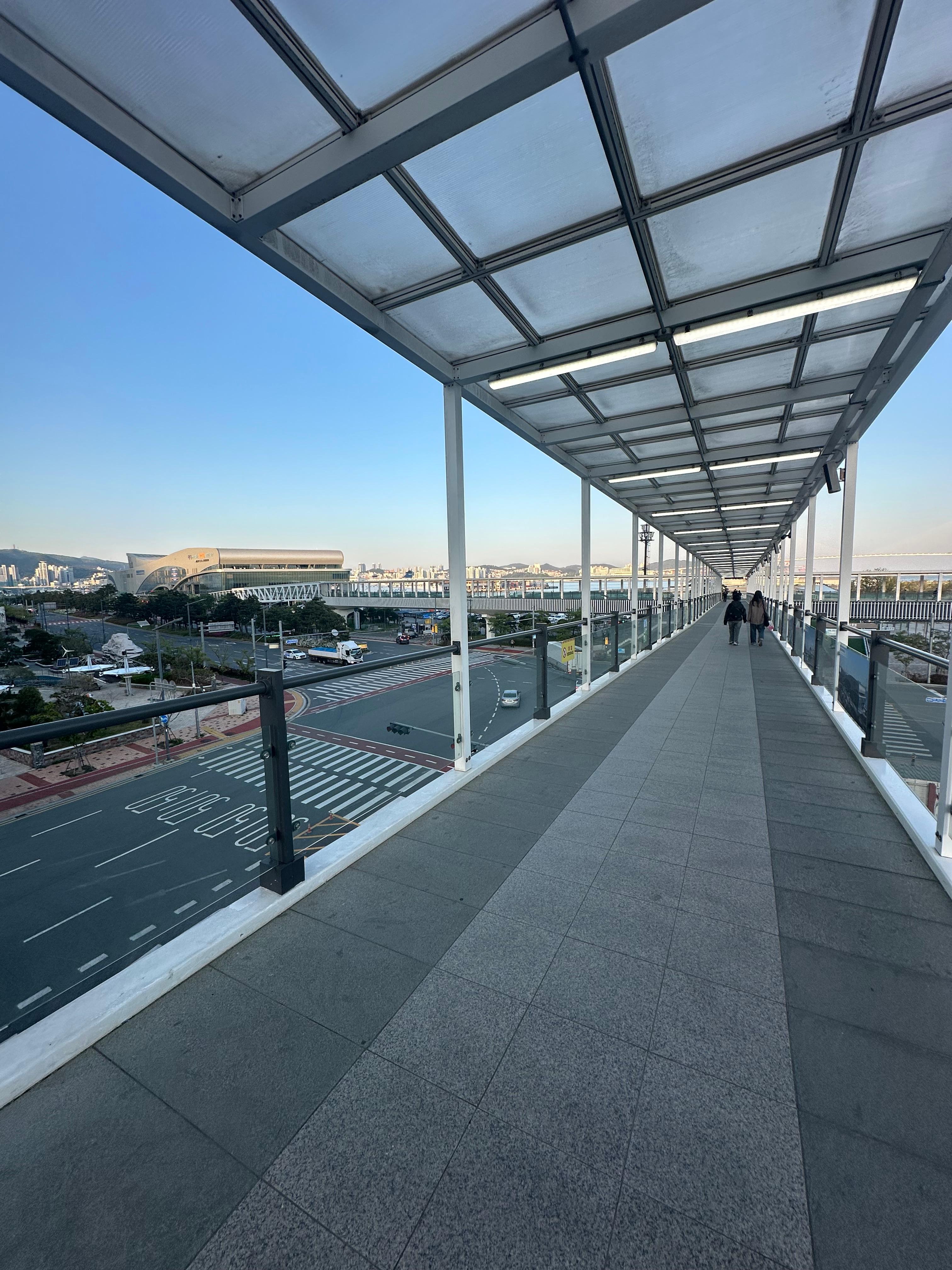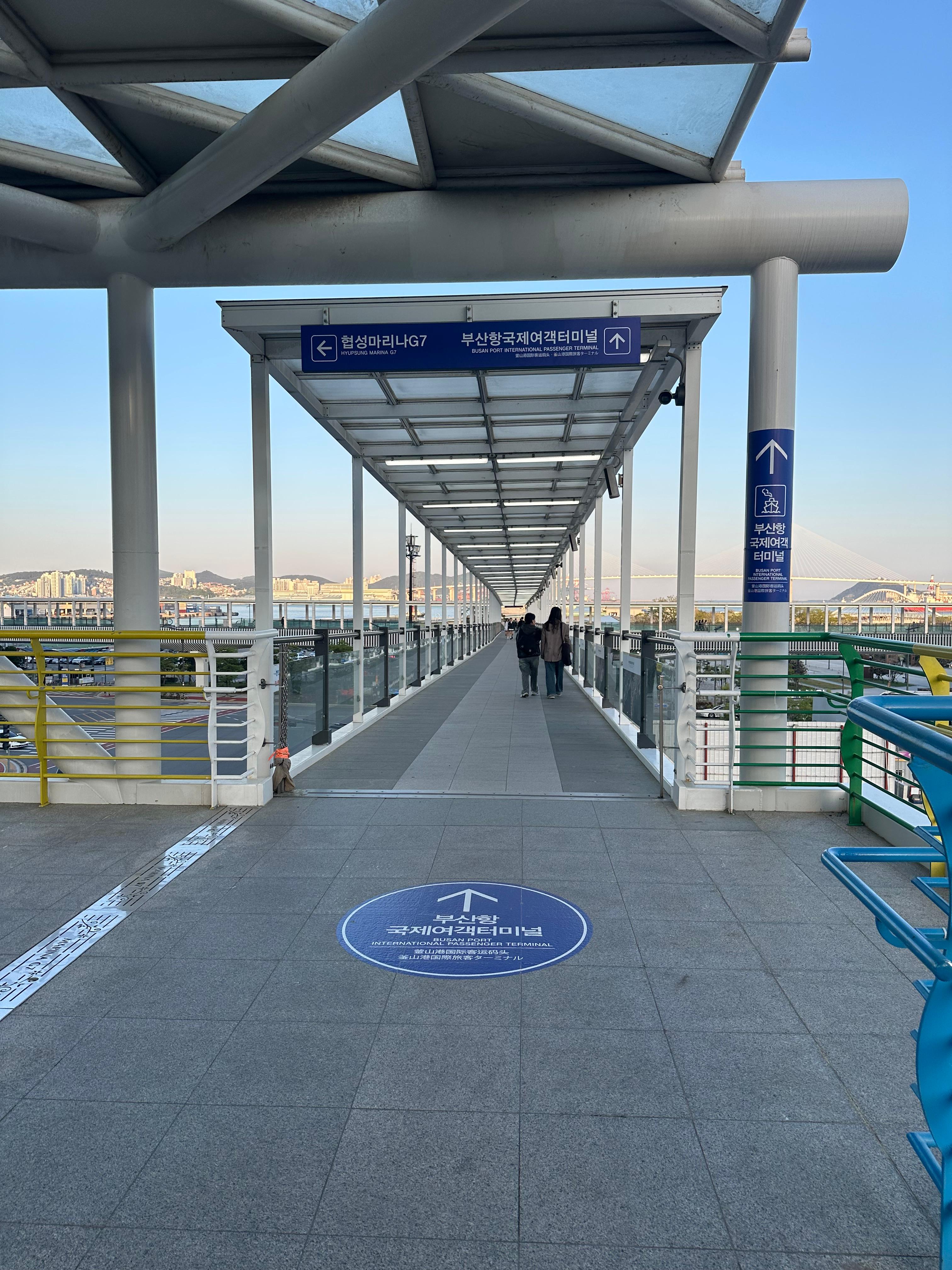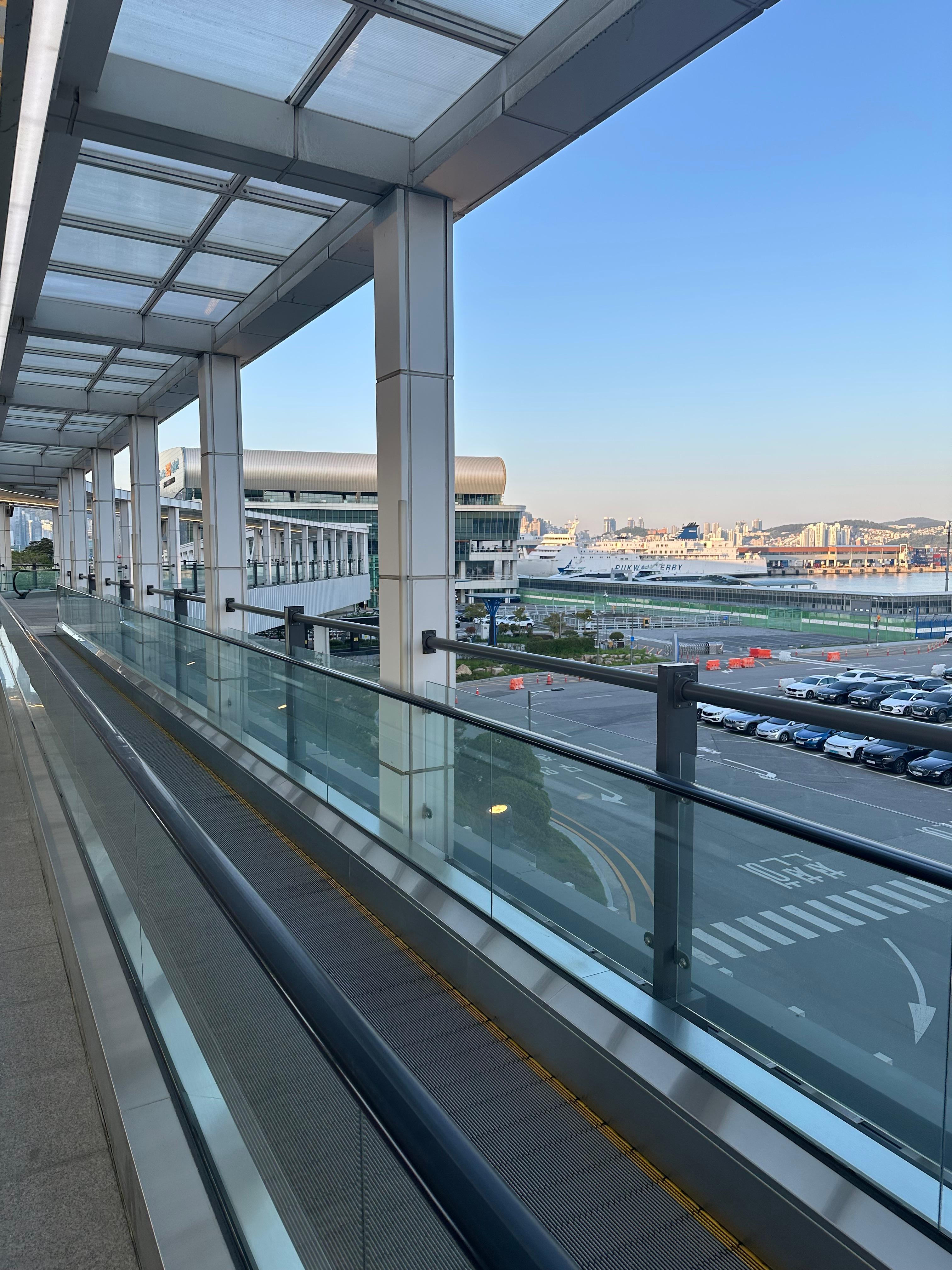 사실 이 다리 때문에 저는 부산항국제여객터미널이 있다는 것도 알았습니다. 부산항국제여객터미널에서는 일본 후쿠오카와 오사카, 대마도를 배로 이동할 수 있다고 하는데요. 저도 최근에 유튜브를 보며 알게 되었는데 최근에는 비행기가 아니라 조금 시간 걸리더라도 낭만여행을 위해 일본까지 배를 타고 간다고 합니다. 대략 무빙워크 따라 약 5분에서 10분 정면 부산항국제여객터미널에 도착한다고 합니다.