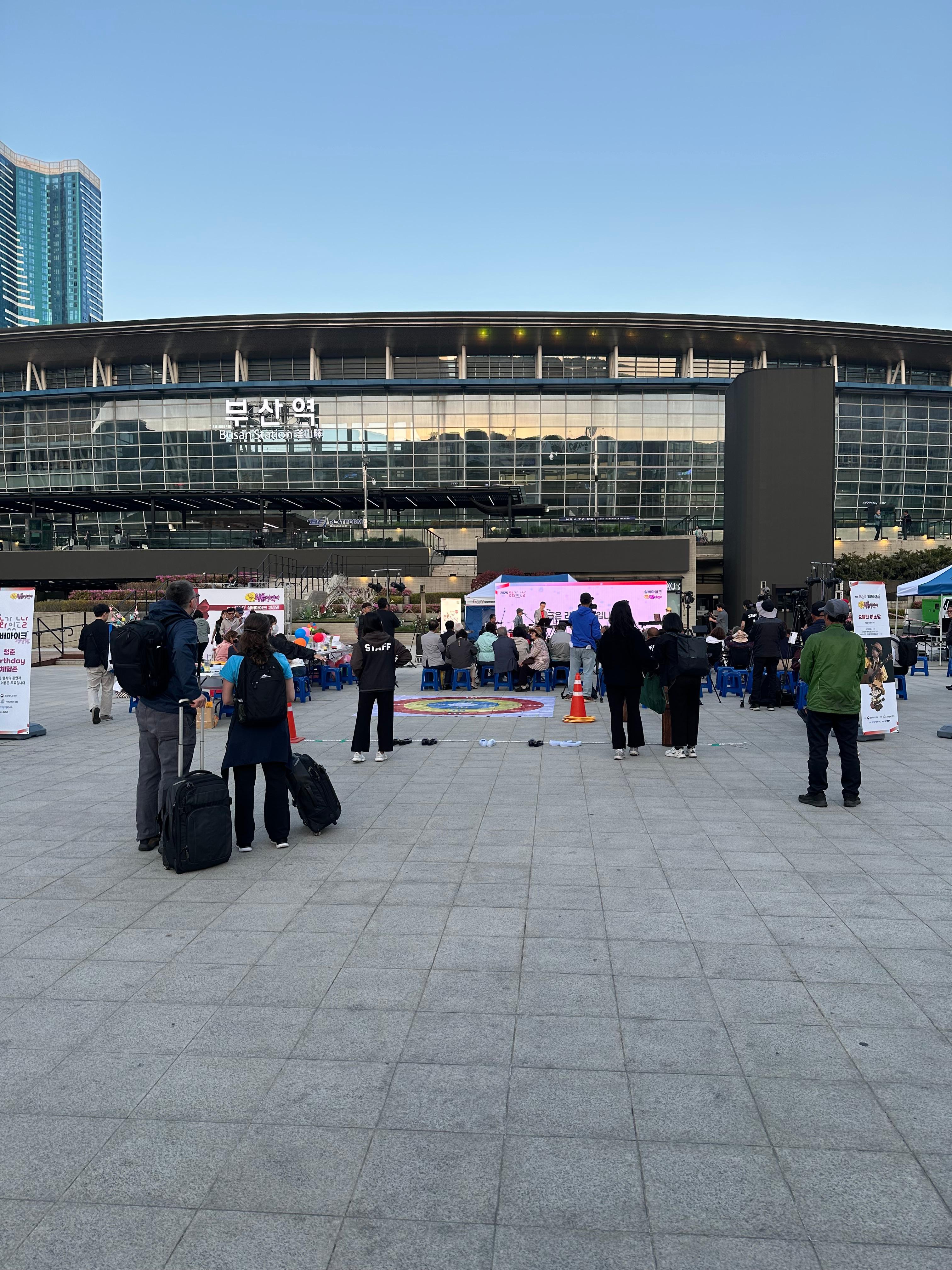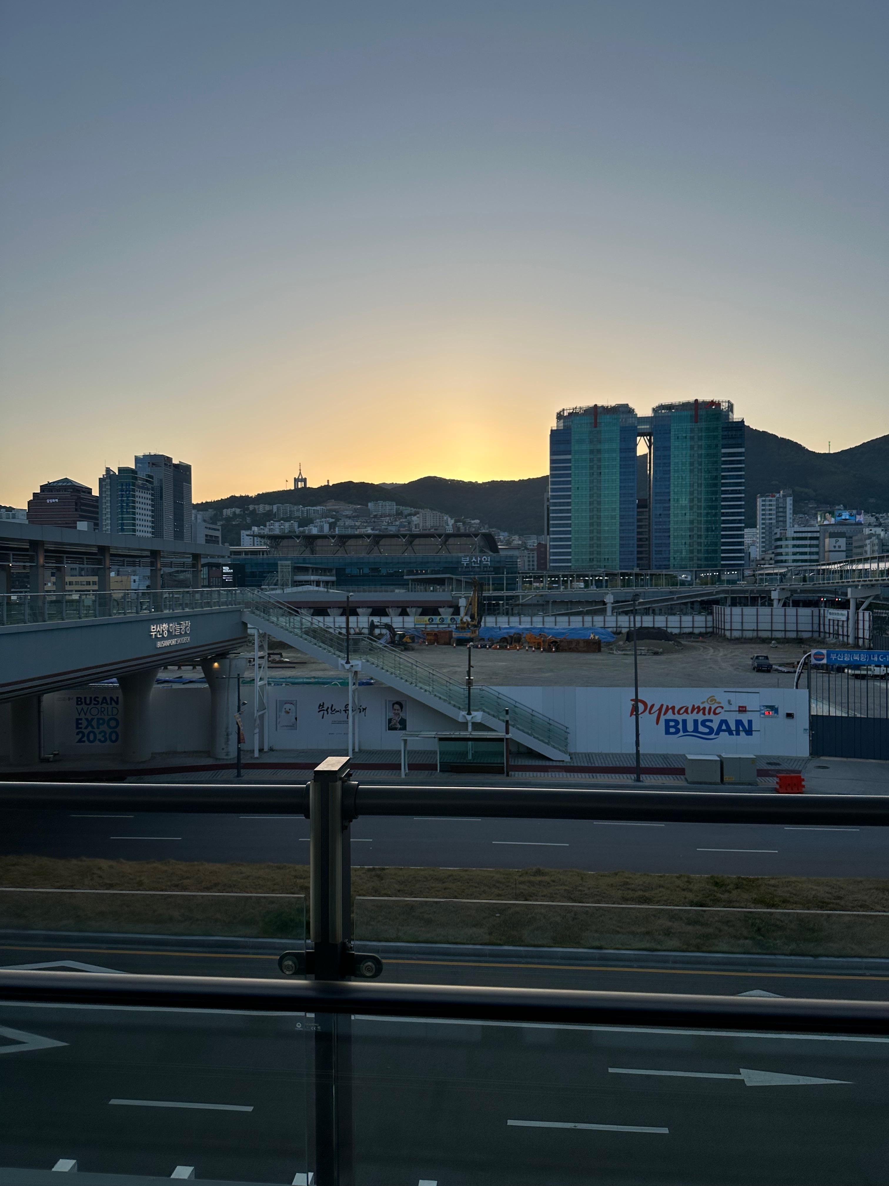 그만큼 황금연휴가 시작되기 하루전날부터 저처럼 퇴근 또는 연차(휴가)를 내서 떠나는 여행객들이 많았습니다. 비록 입석과 좌석이긴 하지만 제가 이용했던 KTX는 주요역만 정차하는 빠른 열차였고 입석이라는 점에서 6만원에 올 수 있었던 서울 부산 고속열차를 44000원에 이용할 수 있게 되었습니다. 그렇게 조금 빠릴 부산역에 도착했고 마침 일몰이 지는 시간이었는데요. 조금 빨리 도착했고 부산역에서 오뎅먹고 조금 걷고 싶어 부산항국제여객터미널까지 걷기로 했습니다.