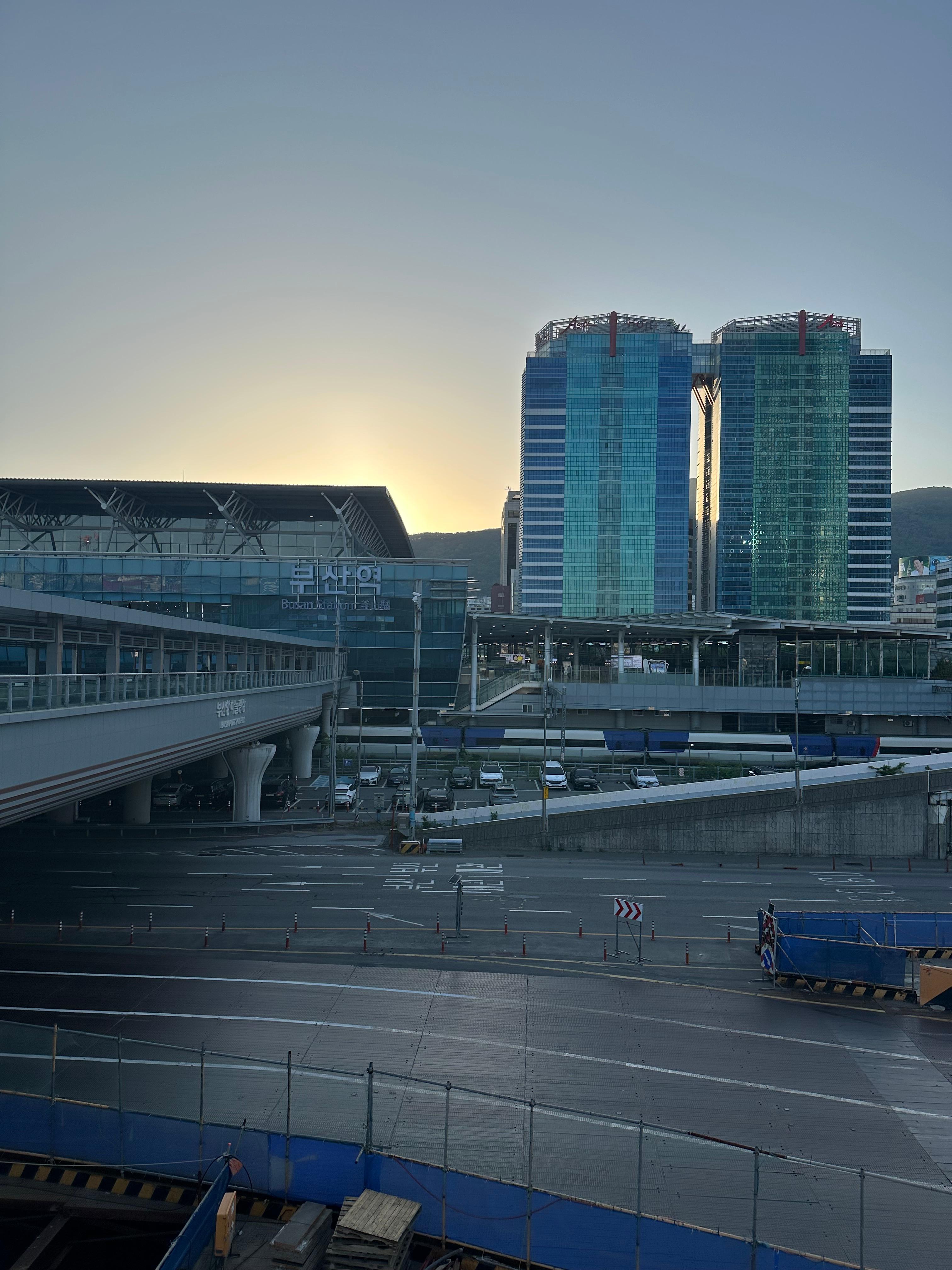 그렇게 여유롭게 부산항을 보면서 천천히 다시 부산역까지 걷다보니 어느새 오후 7시가 되면서 부산역과 부산항국제여객터미널 주위로 일몰이 지기 시작했습니다. 작년에도 문재인 전 대통령 사저 방문과 해동용궁사를 가기 위해 부산역 왔을 때 부산역 광장에서 이렇게 부산항 보며 힐링을 했었는데요. 이번 2025년 5월에도 부산에 와서도 부산항까지 걷고 보며 일몰까지 보게 되었습니다. 5월은 초여름인 동시에 해가 길어지는 것을 볼 수 있는데요 8시까지는 이렇게 밝은 하늘을 볼 수 있는 것이 장점이기도 합니다. 하지만 올해는 5월까지 덥지 않고 시원하면서도 쌀쌀했는데요. 한편으로는 더 좋았던 것 같습니다. 그렇게 부산항과 부산역에서의 아름다운 일몰을 보며 저는 숙소가 있는 남포동으로 전철 타고 이동하게 되었습니다.