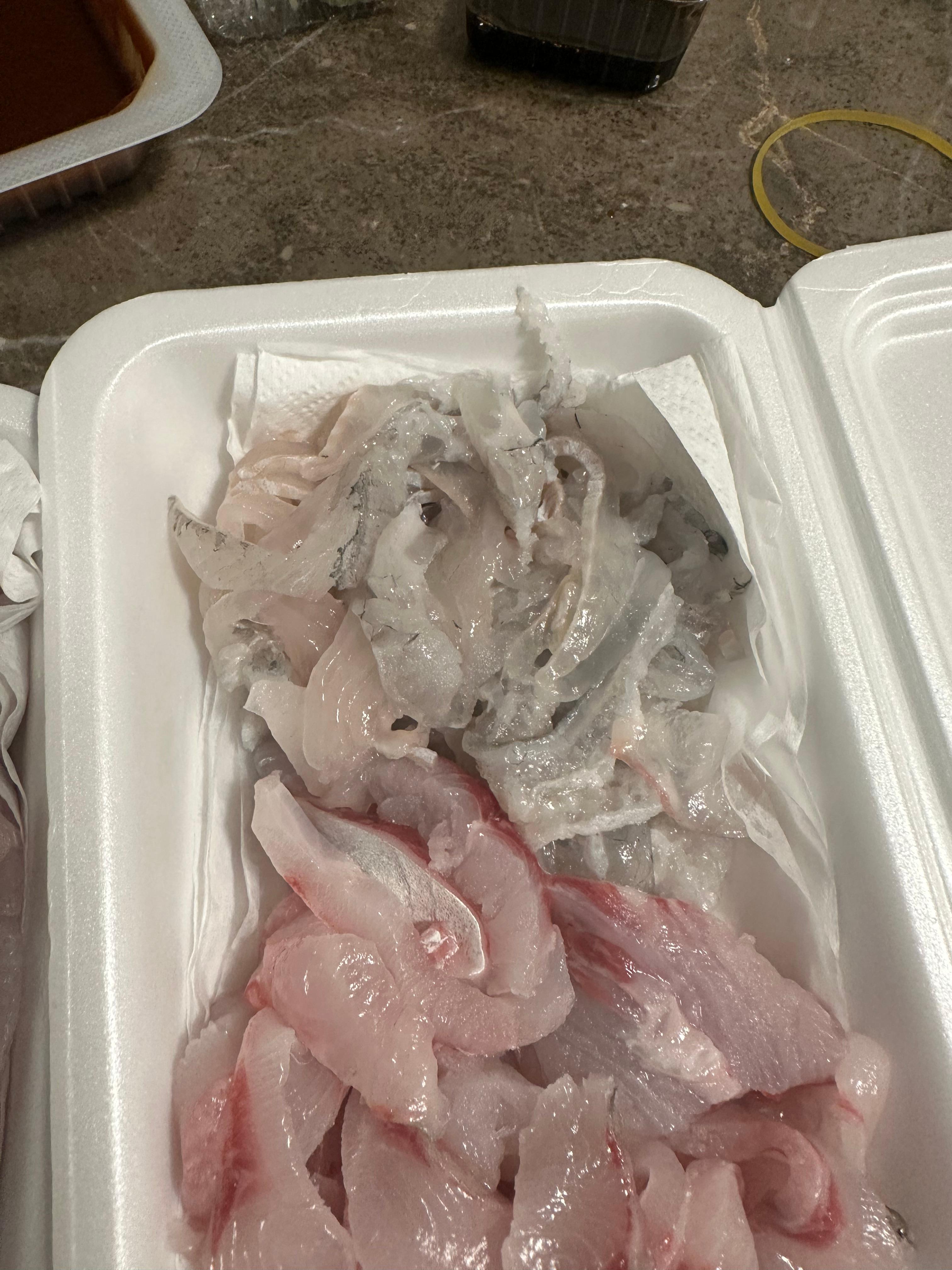 원래는 자갈치 시장에서 밀치와 도다리가 비싸게 판매 되는데요. 40,000원 가격에 판매되는 것을 거의 마감 되기전 8시 넘어서 오고 혼자라서 자갈치시장 명품상회 사장님이 30,000원에 도다리와 밀치회를 정말 푸짐하게 주셨습니다. 일회용팩 두개로 나눠서 이렇게 가득 주셨는데요.