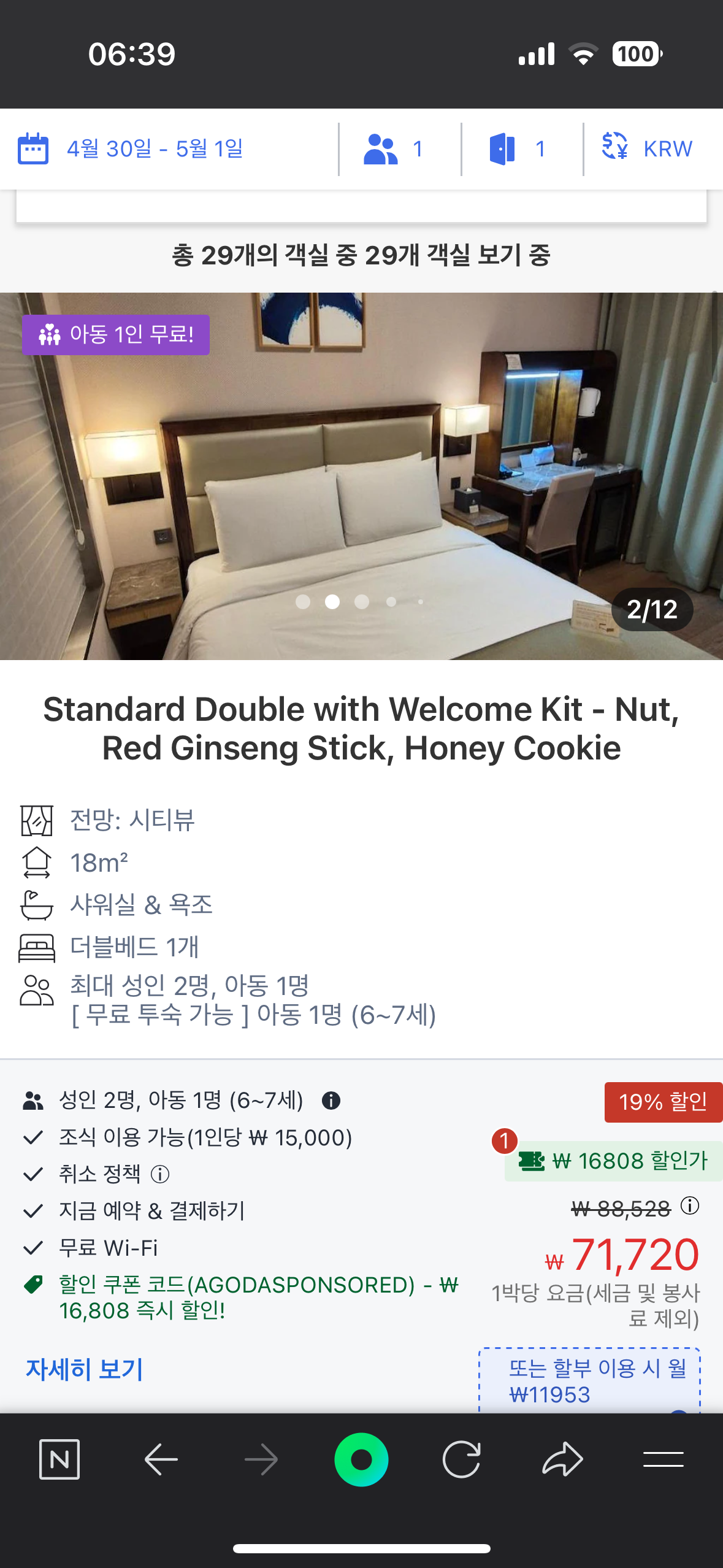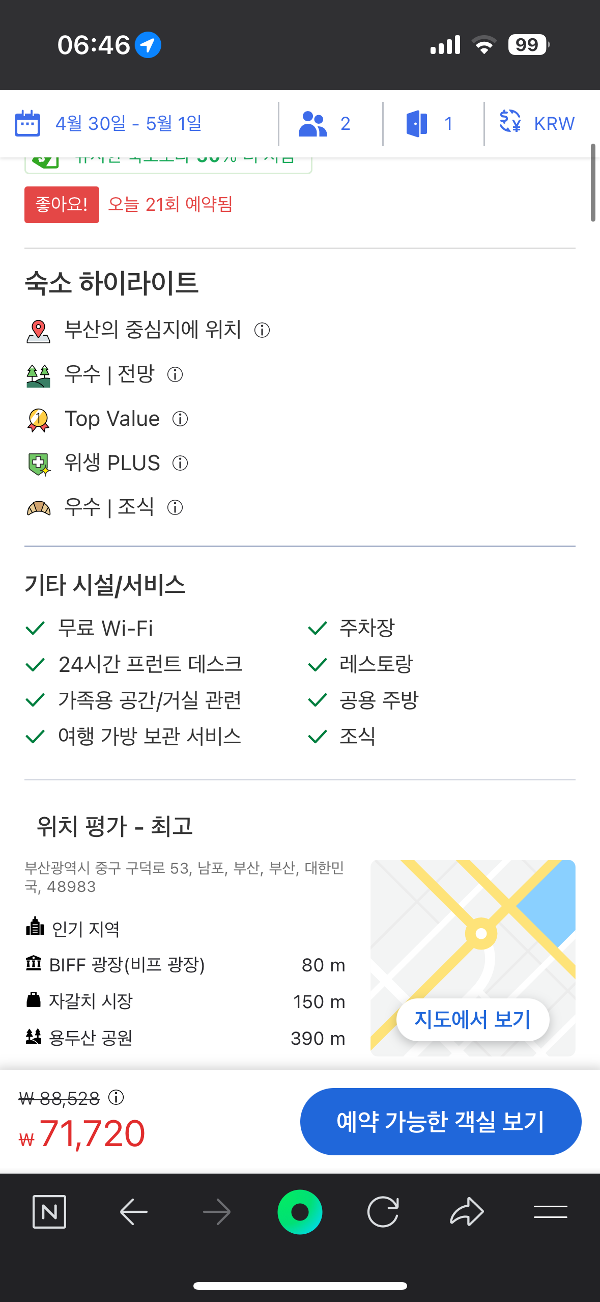 몇년전에 스탠포드 호텔 부산을 이용할 때는 야놀자를 이용해서 했었는데요. 야놀자에서 이용할 때는 가격이 비싼 것을 볼 수 있었습니다. 특히 요즘에 고물가 이다보니 좀 더 저렴한 사이트를 통해 예약을 하는데요. 유튜브를 보니까 국내 예약 사이트가 아니라 아고다처럼 해외 앱을 통해 예약을 하면 정말 미친 가격에 싸게 예약을 할 수 있었습니다. 당시 황금 연휴 하루 전날인데요. 대략 7만원 금액 예약을 할 수 있었습니다. 하지만 실제 예약을 할 경우 해외 사이트이고 그러다보니 세금 및 봉사료가 포함되어 조금 비쌀 수 있는 점 참고 바랍니다. 스탠포드호텔 역시 바로 남포동 반대편으로는 영도대교와 자갈치시장이 보이는 바다가 있는데요. 따라서 오션뷰 숙소도 조금 더 금액을 지불 하고 이용할 수 있었습니다. 저는 남포동의 아름다운 도시뷰가 더 좋아서 시티뷰 전망으로 예약을 했습니다.