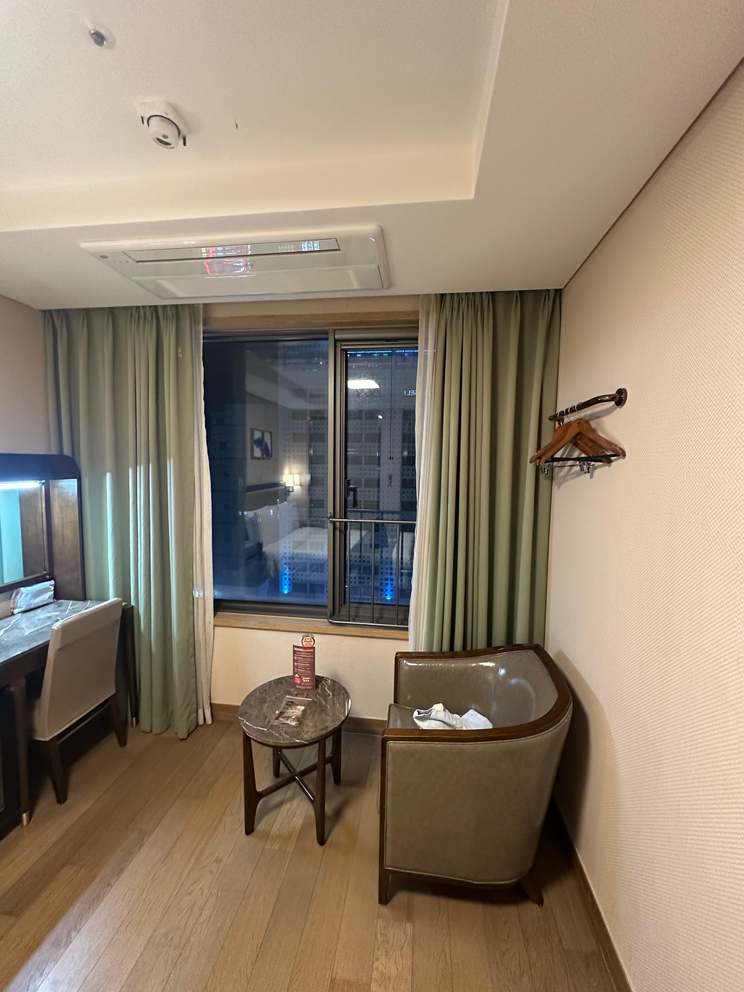드디어 제가 배정받은 1005호 객실로 입실했습니다. 처음 들어왔을 때 약간 현대 모던 분위기도 나면 약간 오래된 느낌이 조금 나는 그런 분위기도 함께였습니다. 의자가 다소 그런느낌이라고 할까요.