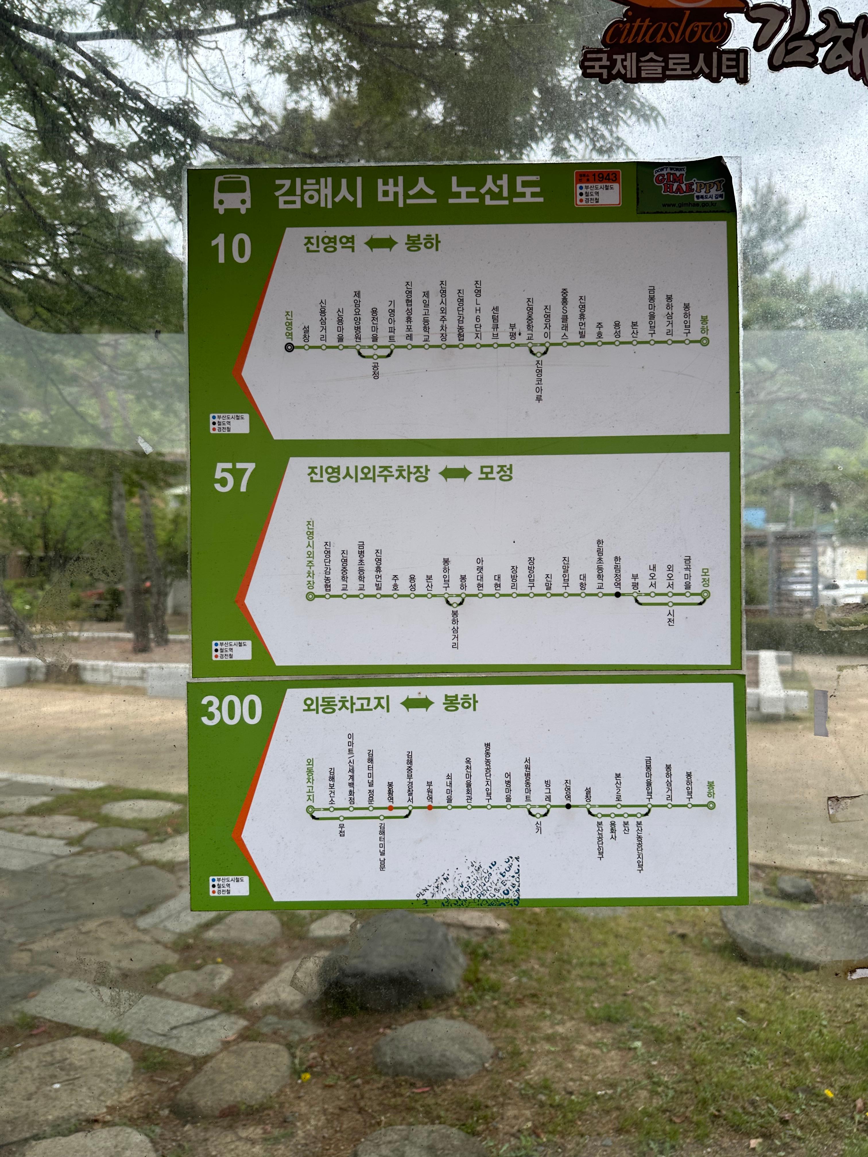 - 진영시외주차장(진영터미널)에서 57번과 300번 버스를 타고 올 수 있습니다.