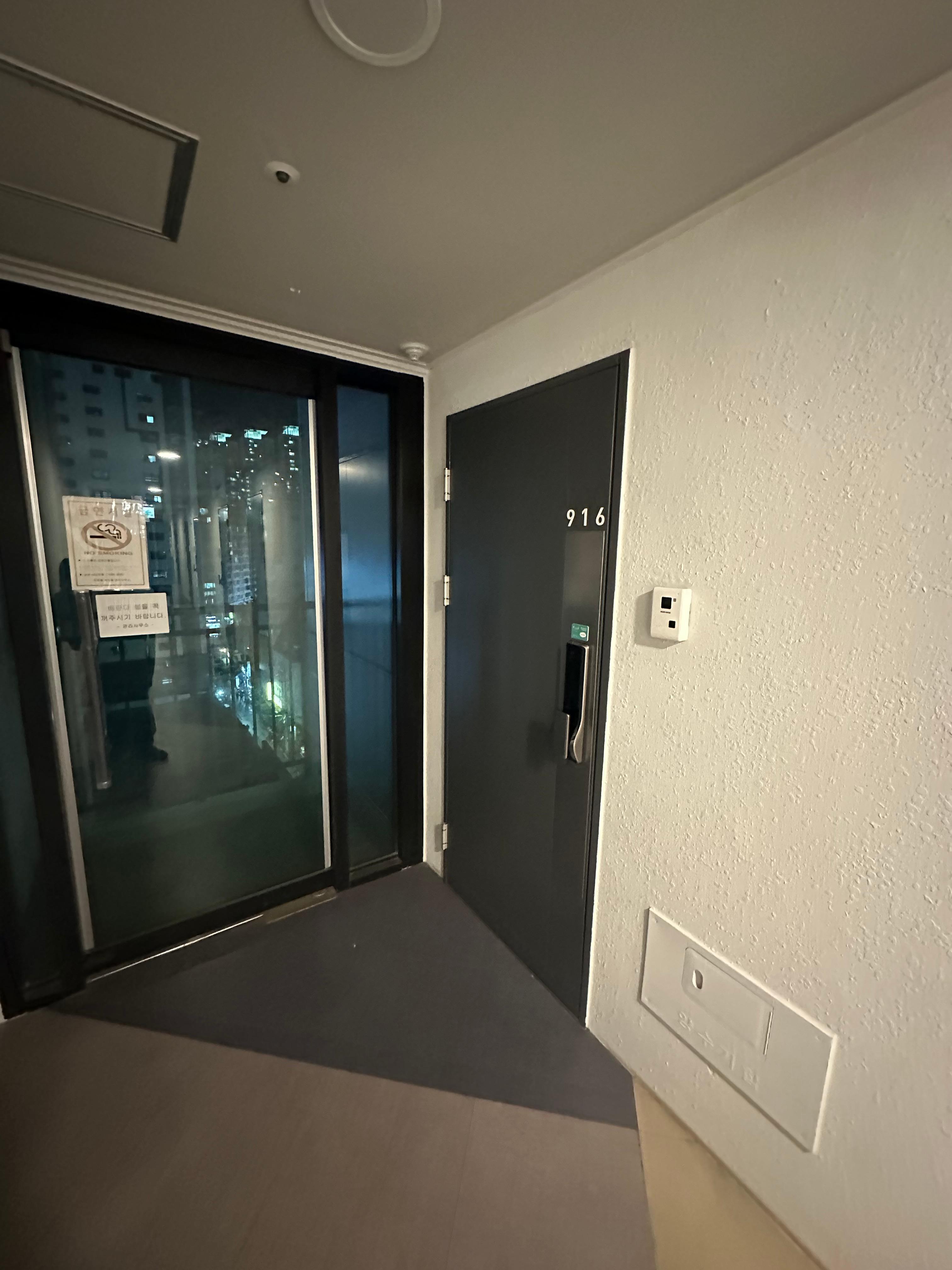 제가 배정받은 방은 916호 스튜디오 싱글방이었는데요. 딱 혼자서 이용하기에 좋은 사이즈였습니다. 처음 들어왔을 때 사진처럼 정말 혼자 이용하기에 좋은 구조였는데요. 저도 지금 오피스텔에 살고 있지만 만약 이 크기였다면 개인적으로 살기에는 너무 작았을것 같습니다.