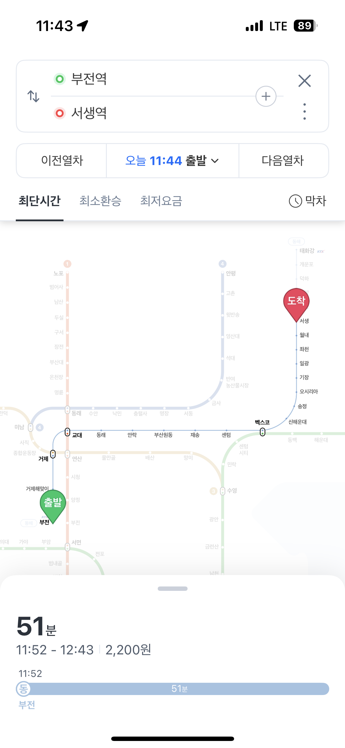 저는 동해선 광역전철을 타고 울산의 대표 관광지인 간절곶을 가기로 했는데요. 울산은 우리나라에서 광역시라고 불러지는 도시였지만 지하철이 없는 유일한 도시였습니다. 그러나 몇년전부터 동해선이 생기고 간절곶 주변에 서생역이 생겼는데요. 서생역에서 자주는 아니더라도 간절곶까지 가는 버스가 종종 있어서 이제는 부산에서 울산 여행도 쉽게 할 수 있게 되었습니다. 간절곶은 서생역이며 부산 부전역에서 51분 걸려서 갈 수 있습니다. 요금은 2,200원으로 확인됩니다.