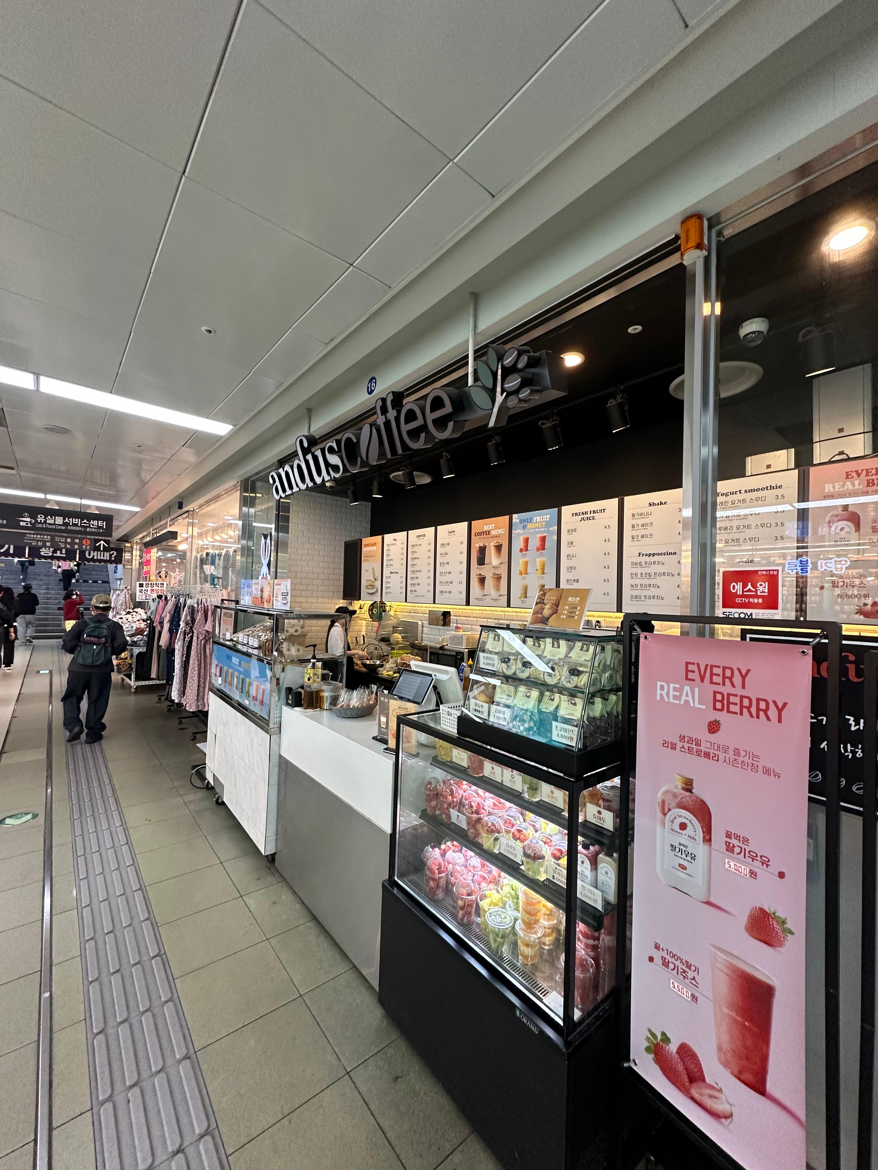 아쉬운 마음으로 카페일리터에서 먹지 못해서 지하상가로 내려가는데 작은 카페가 보였습니다. 앤더스커피라는 곳인데요. 테이크아웃만 할 수 있는 카페처럼 잠시 들려서 커피 구입하기 좋았습니다.