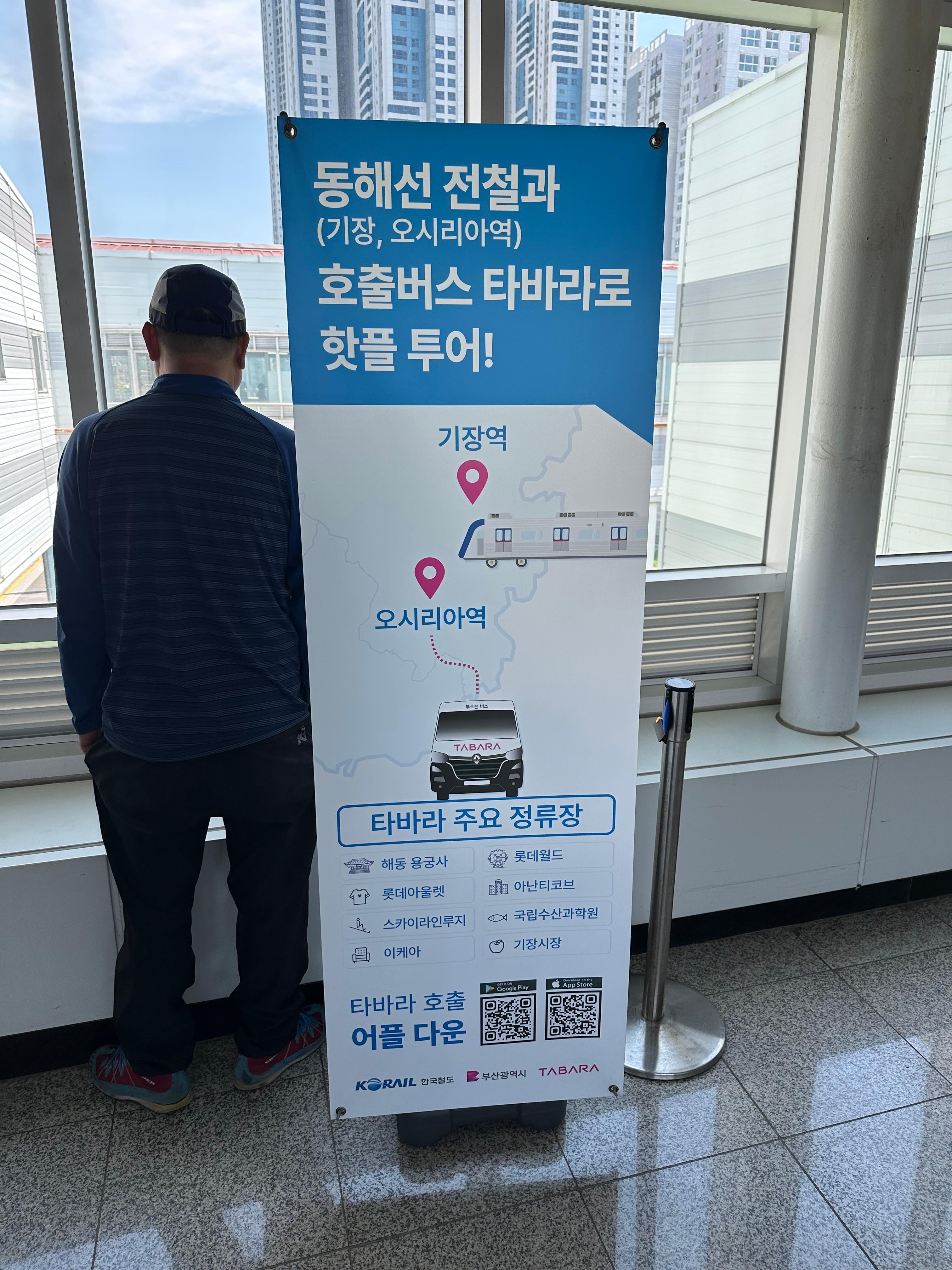 1년만에 찾긴 했지만 부전역 안에서는 동해선 기장역과 오시리아역에서 호출버스 타바라를 이용해서 주변 여행지를 다닐 수 있다는 것을 홍보할 수 있습니다. 10년전만 해도 한참 동해선 전철과 주변 공사가 한참이었는데요. 부산 동부권에도 관광지가 늘어나고있습니다. 대표적으로 기장역과 오시리아역에 해동용궁사, 롯데월드, 롯데아울렛, 아난티코브, 스카이라인루지, 국립수산과학원, 이케아, 기장시장을 호출버스 타바라를 이용해서 쉽게 다닐 수 있다고 합니다.