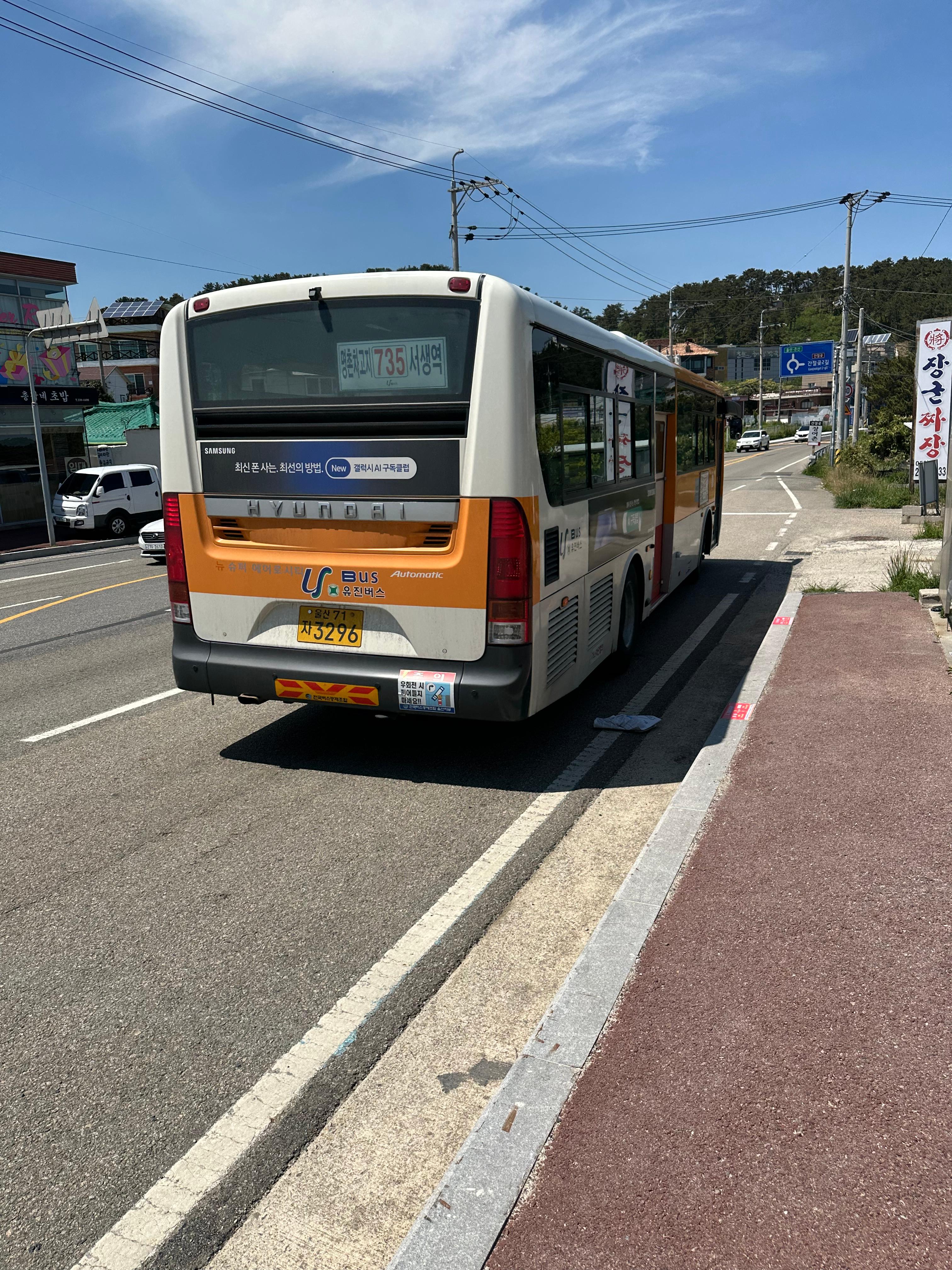 간절곶 잔디마당을 다 돌아보지는 못했지만 그래도 아쉬운 마음을 남겨둔 채 언젠가는 다시 오겠지하는 마음으로 저는 간절곶에서 버스타러 이동했습니다. 간절곶이 올해 5월 황금연휴를 맞이하여 찾아온 여행의 마지막이었는데요. 10년전 가족들과 함께 울산 첫 여행을 와보고 두번째 온 여행은 새로웠습니다. 사실 울산은 부산과 가깝지만 광역전철이 없다는 점에서 오기 힘들었는데요. 동해선열차와 함께 향후 울산에 트램을 통해 울산도 관광지로 발전하면 좋을 것 같습니다. 그렇게 마지막 여행을 마치고 저는 간절곶에 처음도착해서 내린 정류장 반대편에서 버스를 기다렸습니다. 마찬가지로 735번 버스를 타고 서생역으로 이동하였습니다.