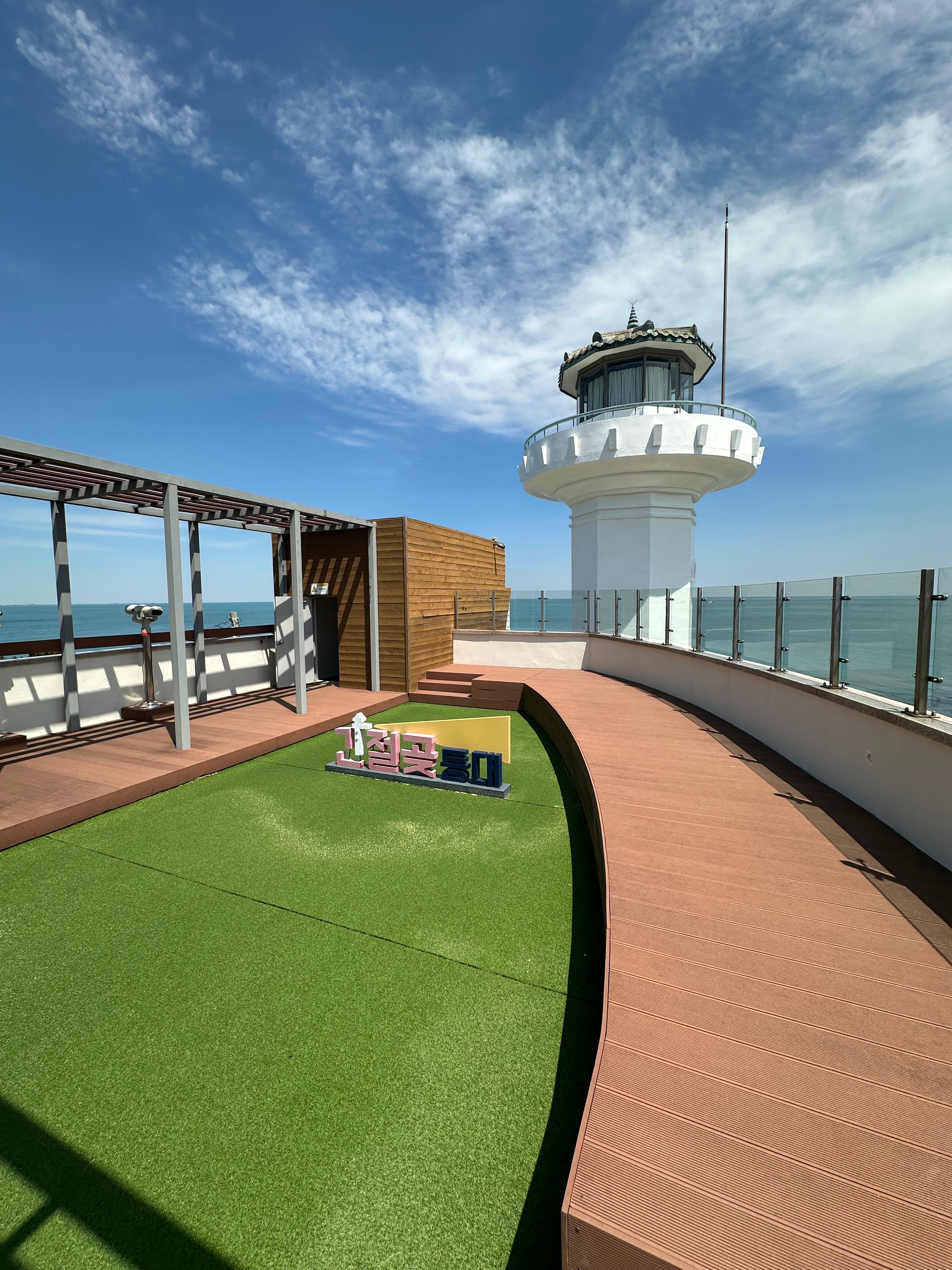 등대전시관은 높은 층으로 올라가면서 구경할 수 있었습니다. 그리고 옥상에는 간절곶 등대라는 간판과 함께 전망대가 있었습니다. 옥상전망대에서는 넓은 동해바다와 함께 간절곶 잔디마당 사이에 소망우체통의 아름다운 모습을 볼 수 있습니다.